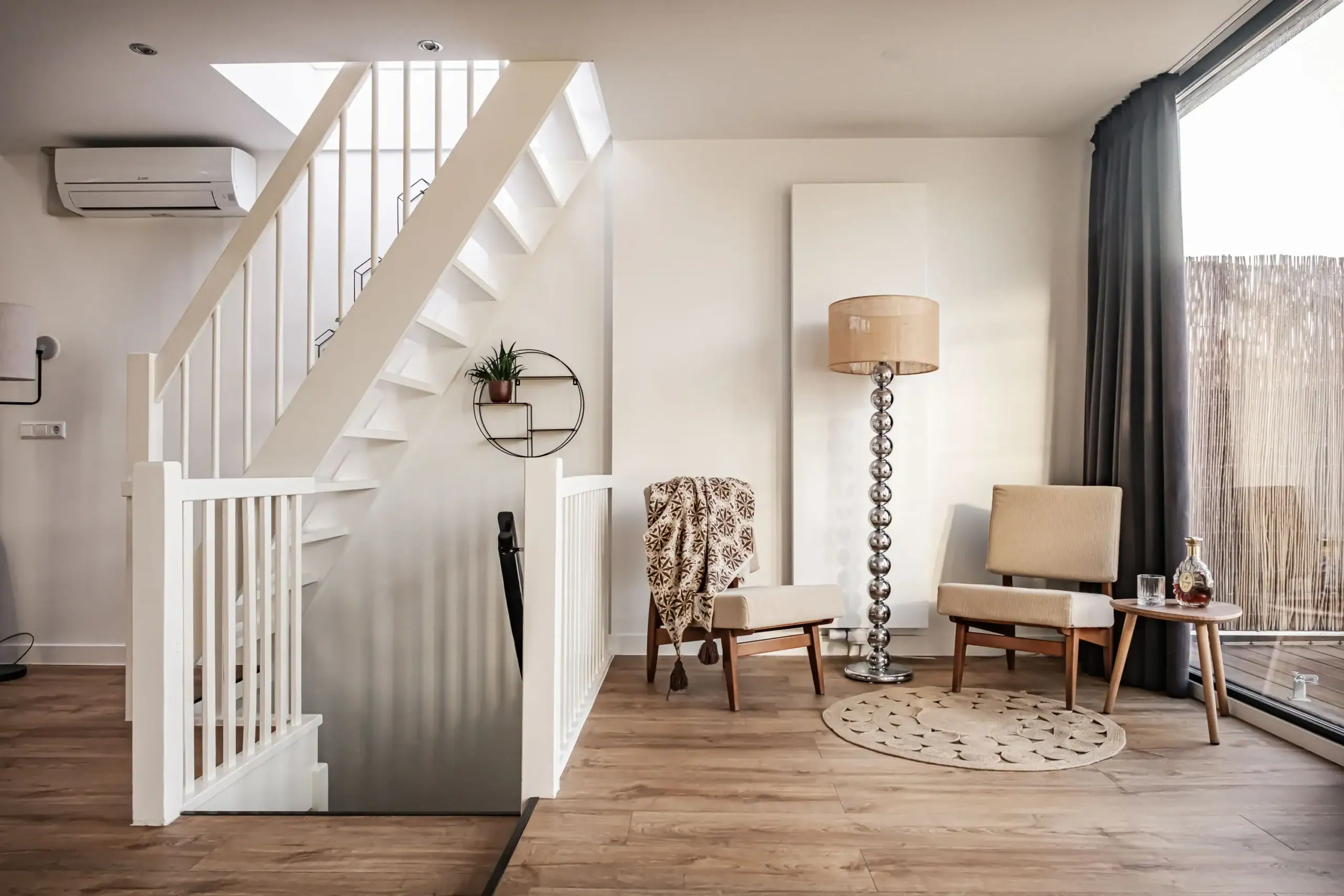 This beautifully renovated, unique duplex apartment has it all: a spacious living room with open kitchen, three bedrooms, a balcony, and two roof terraces. Experience a home where comfort, style, and accessibility come together seamlessly.
