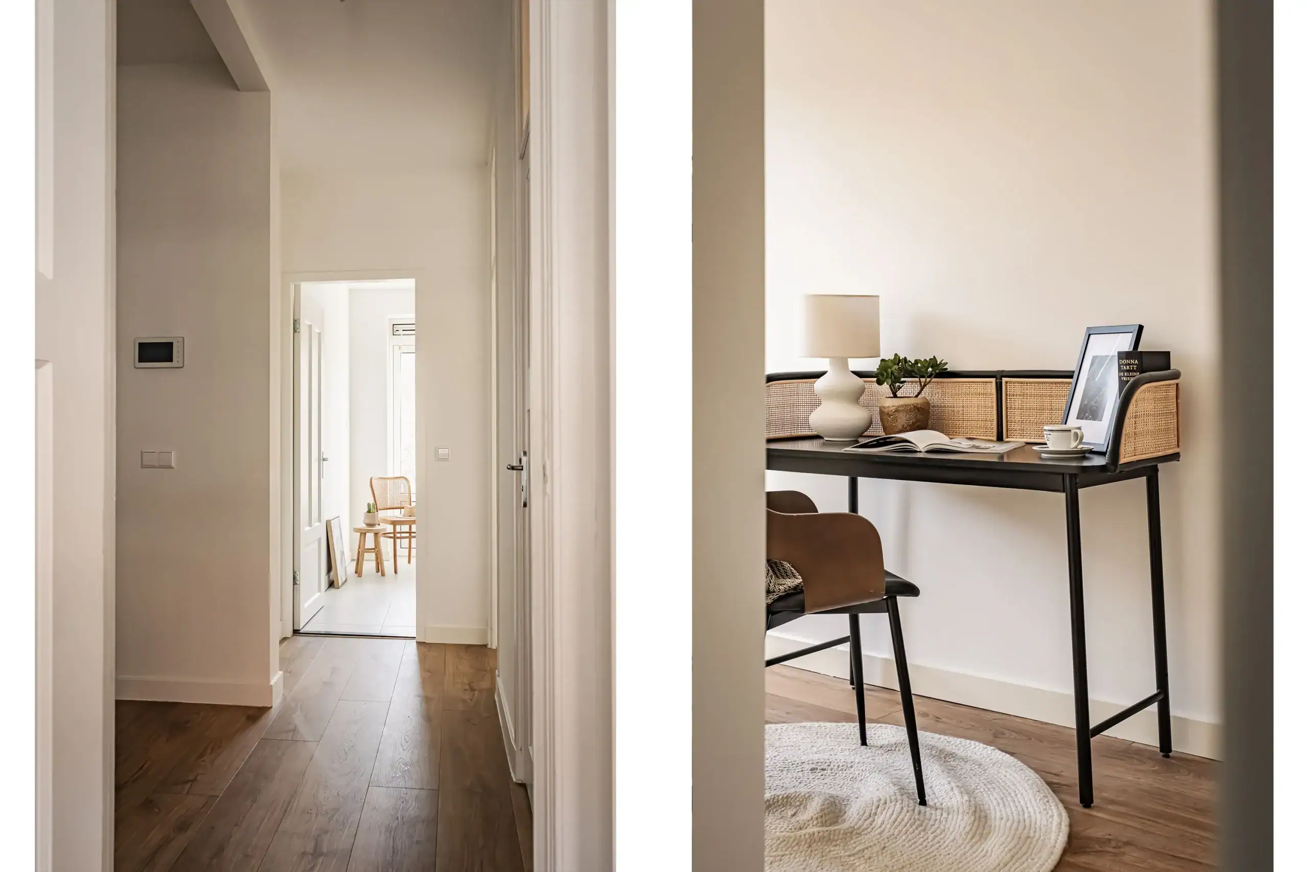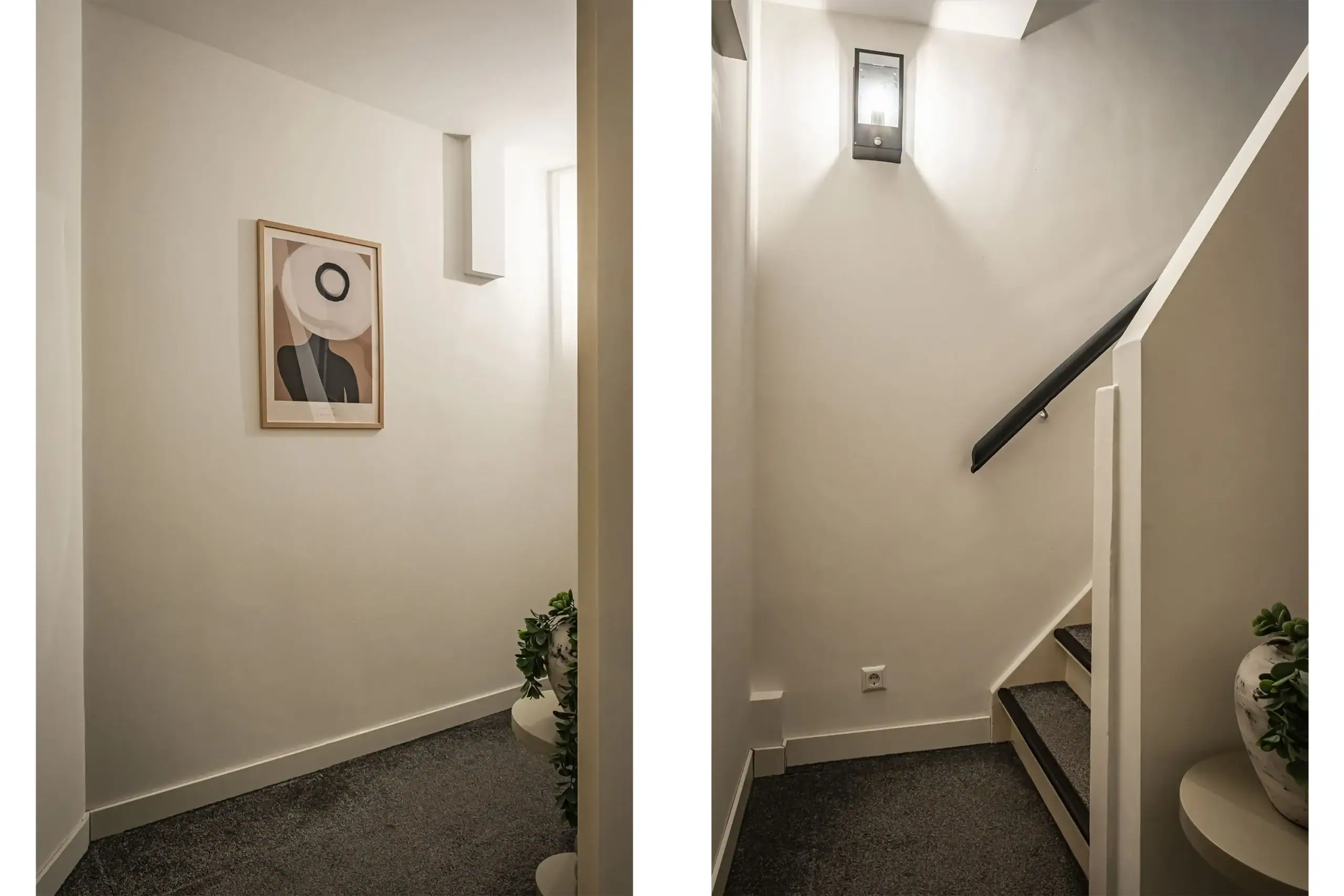 The communal entrance leads to the first-floor access of the home: entrance hall/garderobe and staircase to the second floor.