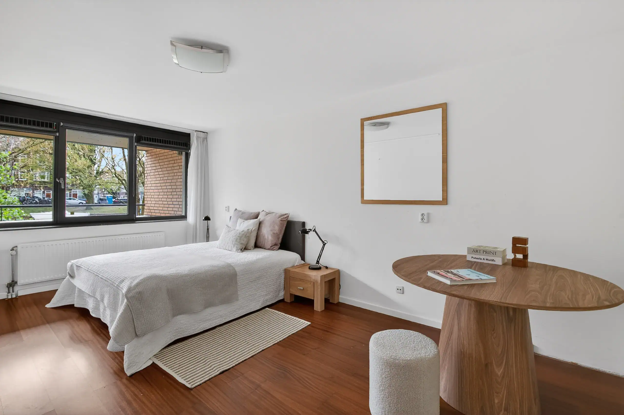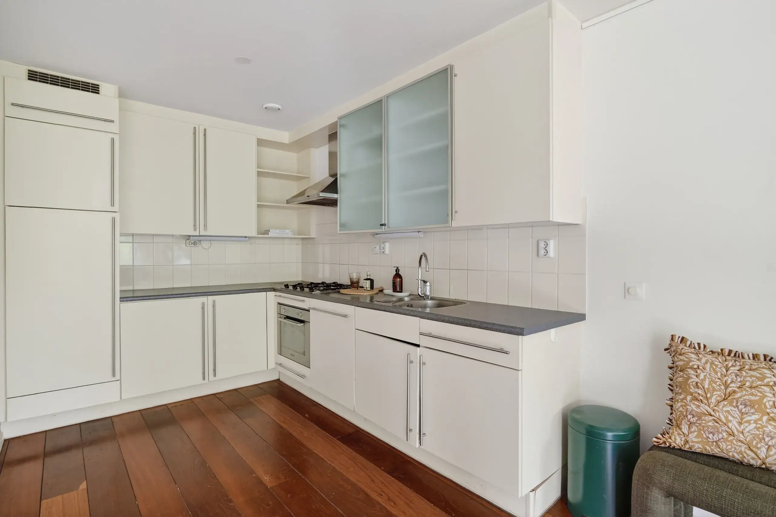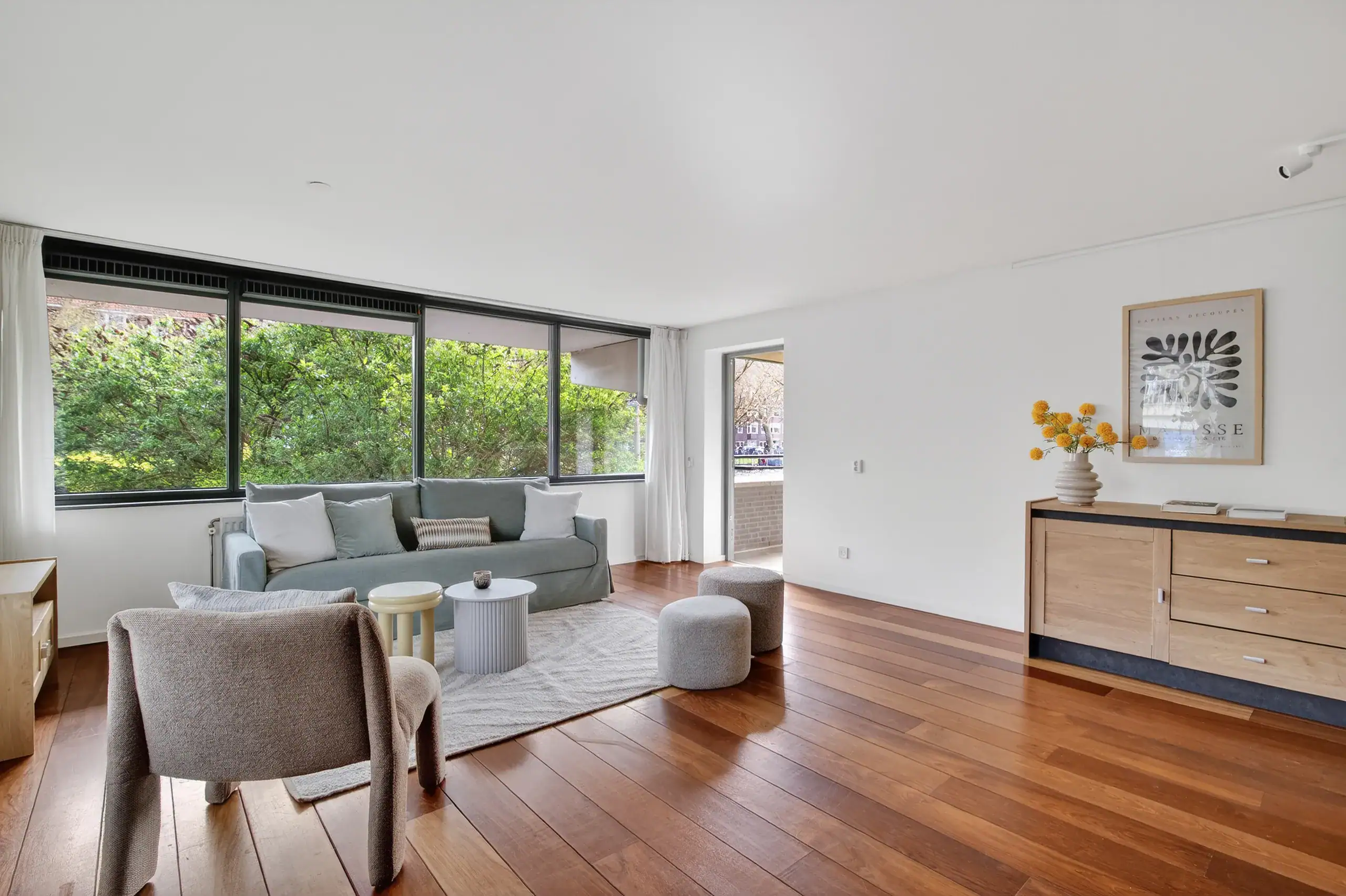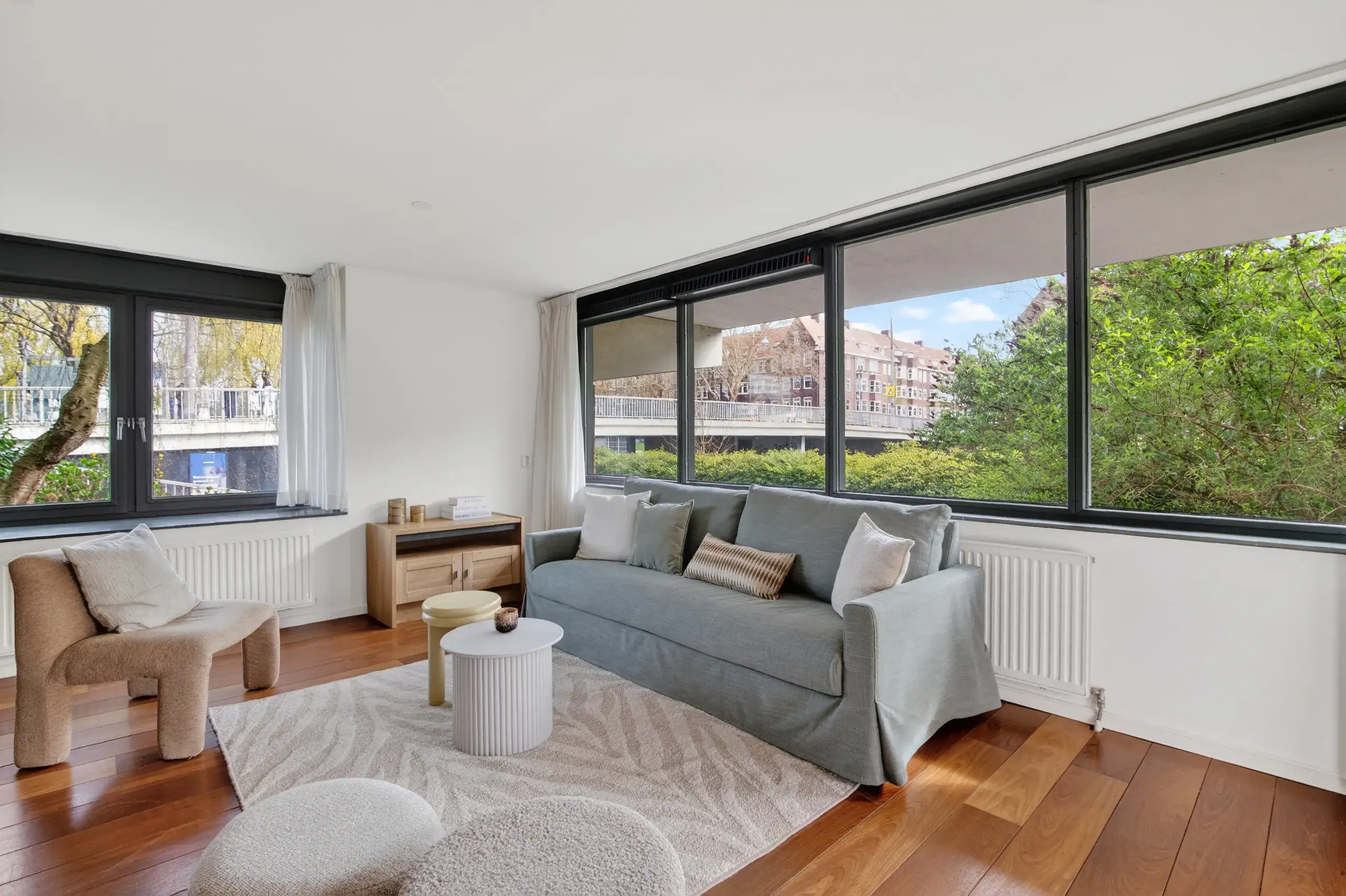 The apartment is located in De Lierhof, a well-maintained and private residential complex consisting of four apartment buildings, situated on the border of Amsterdam-Zuid. The location is ideal: peaceful living by the water, while the vibrant city life is within easy reach.