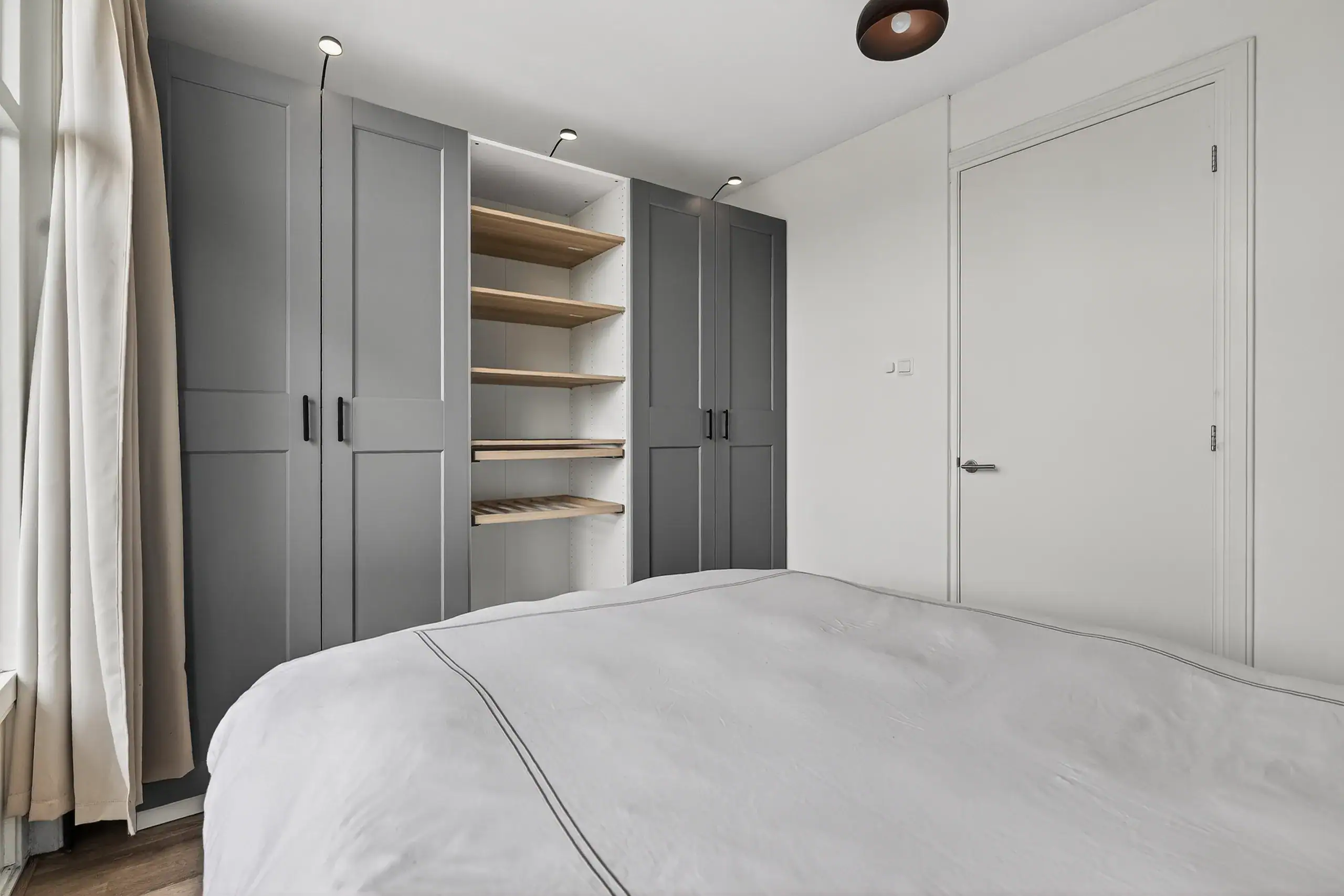 At the rear, you’ll find the bright and generously sized kitchen, designed to invite shared cooking moments. It is equipped with high-quality built-in appliances, including a Quooker, a 5-burner stove, oven, extractor hood, and a Zanussi dishwasher. The large sink, neat countertop, and ample cabinet space enhance ease of use, while a Bosch washer/dryer combination is subtly integrated. From the kitchen, you have direct access to the west-facing balcony, which has recently been coated and contributes to a well-maintained and inviting appearance.