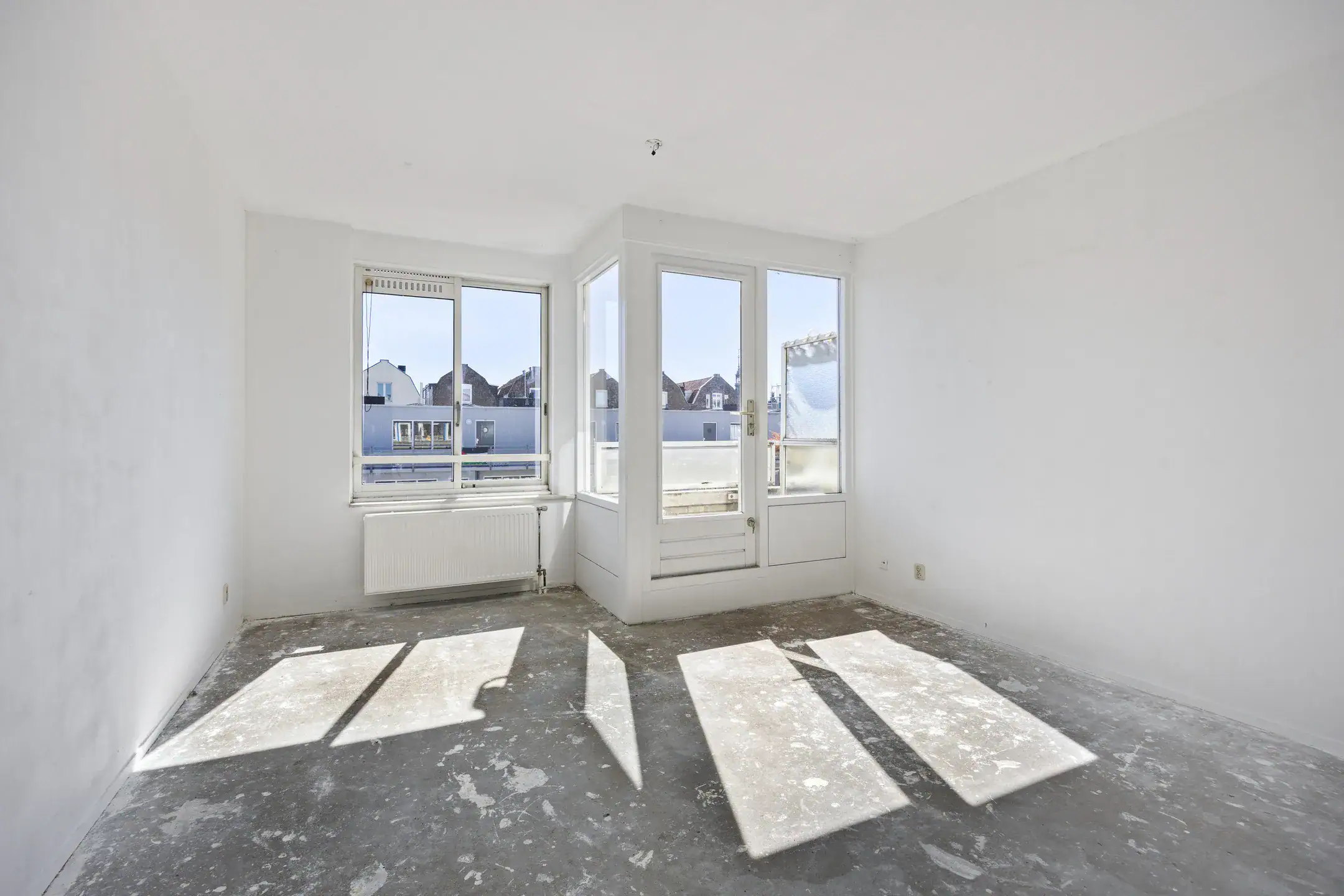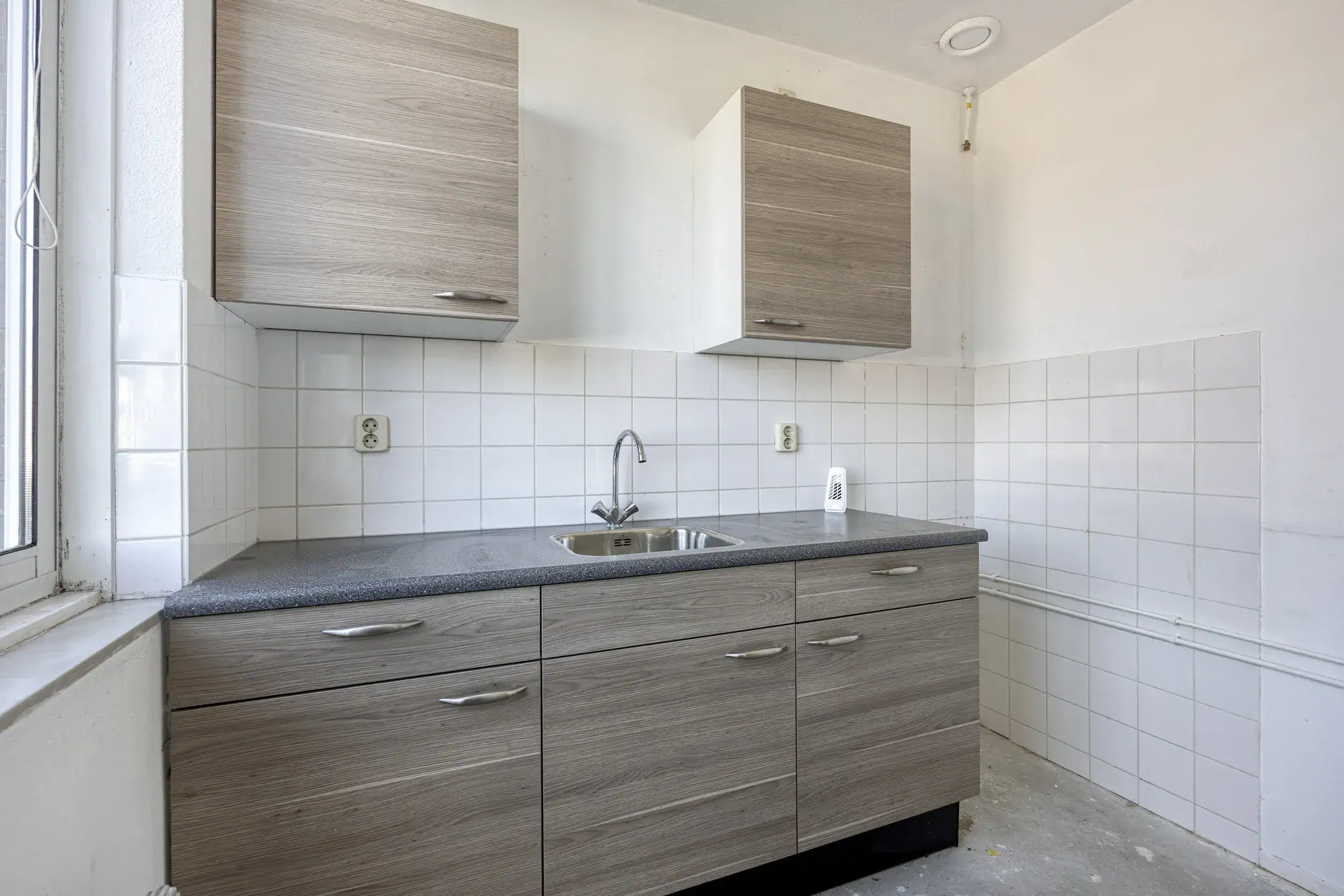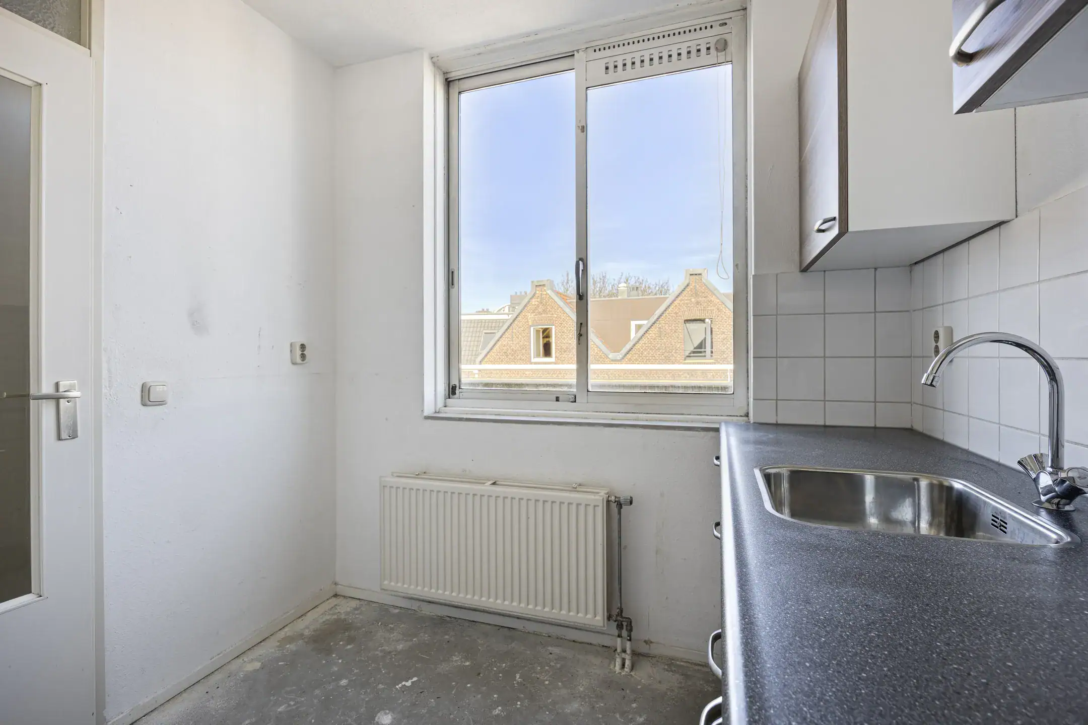 Discover the opportunities of this unique chance! This former social housing apartment provides you with the perfect opportunity to create a dream home that fully meets your personal wishes. Located on the fourth and topmost floor, here you can enjoy both privacy and a beautiful view over the Dappermarkt. Upon entering via the shared staircase, you are greeted by a bright and spacious living room at the front of the property, which opens directly onto the balcony. The kitchen and bedroom, situated at the rear of the property, are waiting for you to design them according to your own taste and style. Whether you opt for a modern, minimalist look or a warm, rustic atmosphere, the possibilities are endless. The bathroom is functionally designed with a shower, washbasin, washing machine connection, and toilet. An added bonus of this property is the gallery, where there is ample space to create a cozy seating area. Just imagine: a cup of coffee in the morning sunlight or a relaxing evening with a good book while you enjoy the fresh air outside. Finally, the property features a practical storage room of approximately 3 m² in the basement, ideal for storing seasonal items, tools, or other personal belongings.