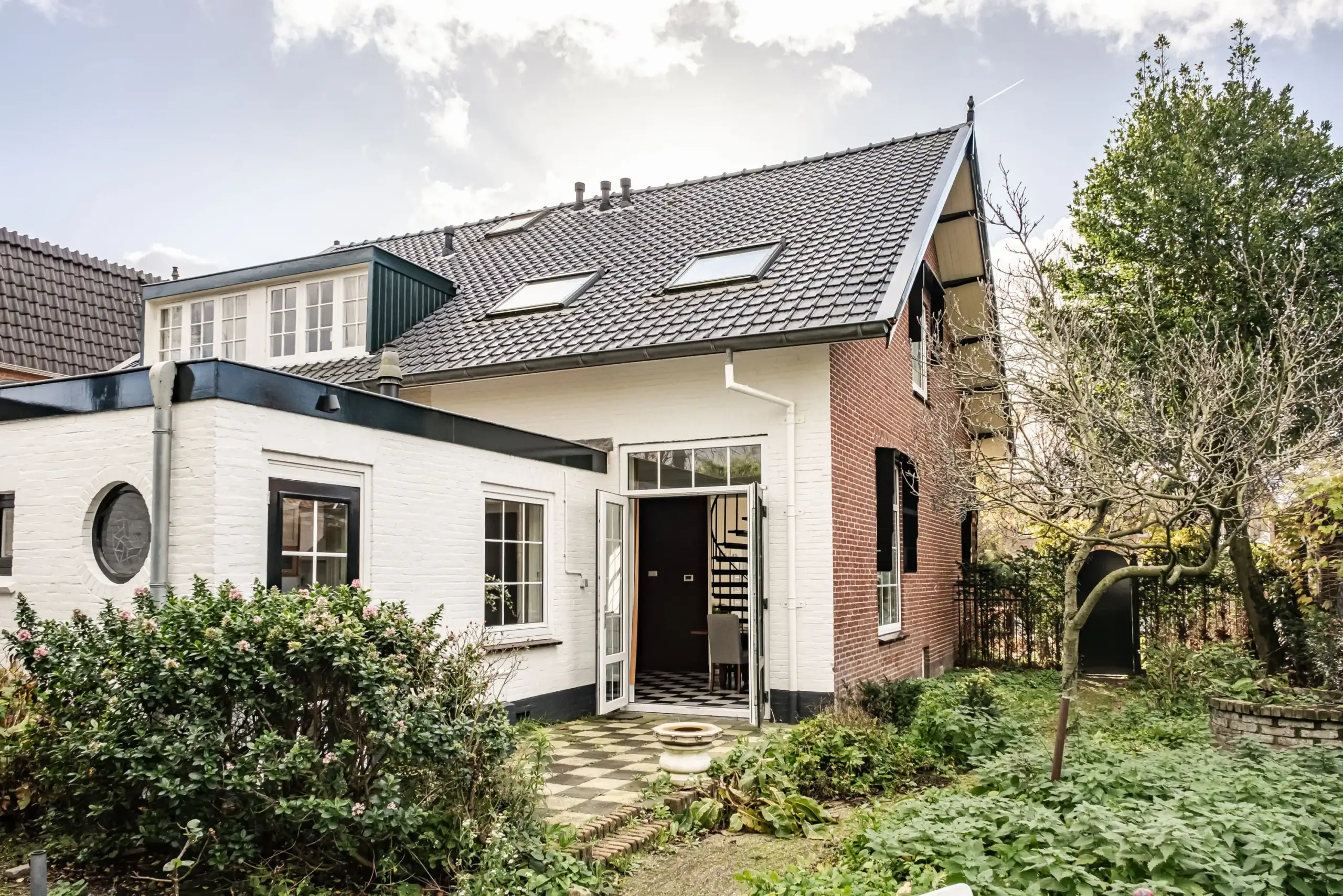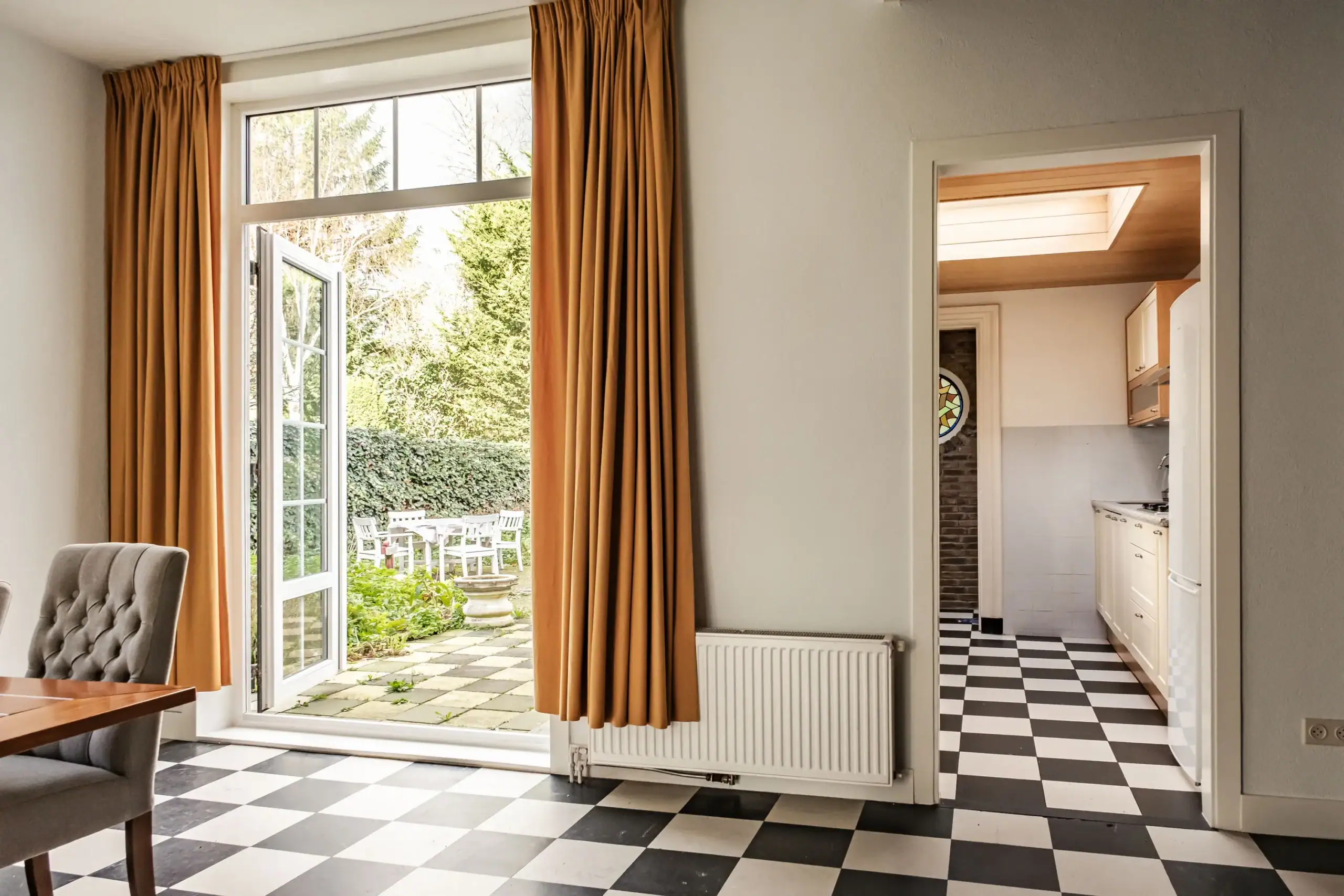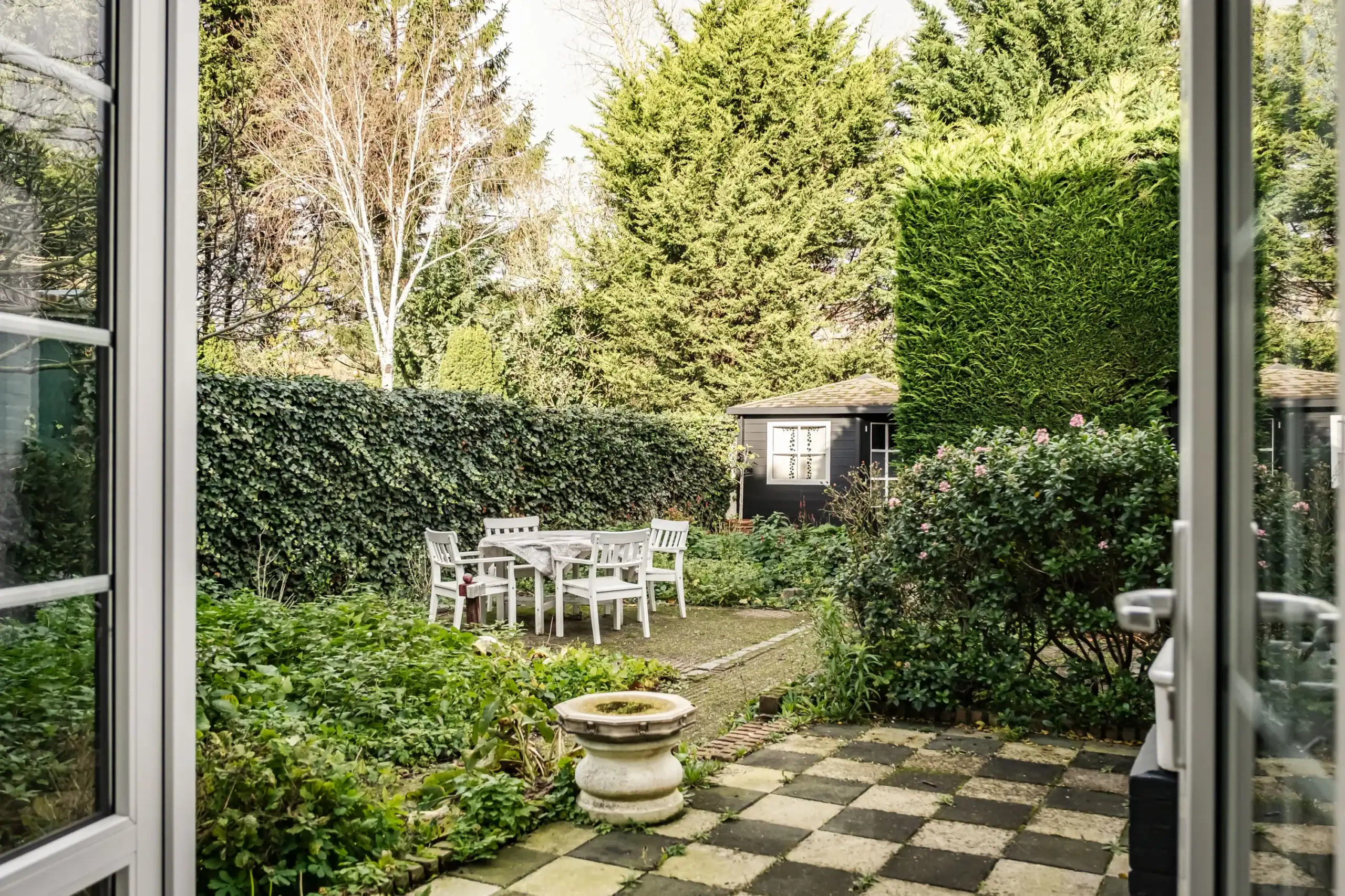 This charming property, dating from 1908, has a warm and welcoming character. The living room exudes a homely atmosphere, with French doors providing a wonderful connection to the outdoors. Step outside into a beautifully landscaped garden with a water well and a romantic, detached wooden garden house: a green oasis where peace, privacy and nature come together. Thanks to the various terraces, there is always a perfect spot to enjoy the sun – whether you prefer a sunny breakfast in the morning or a long summer evening with friends at the end of the day.