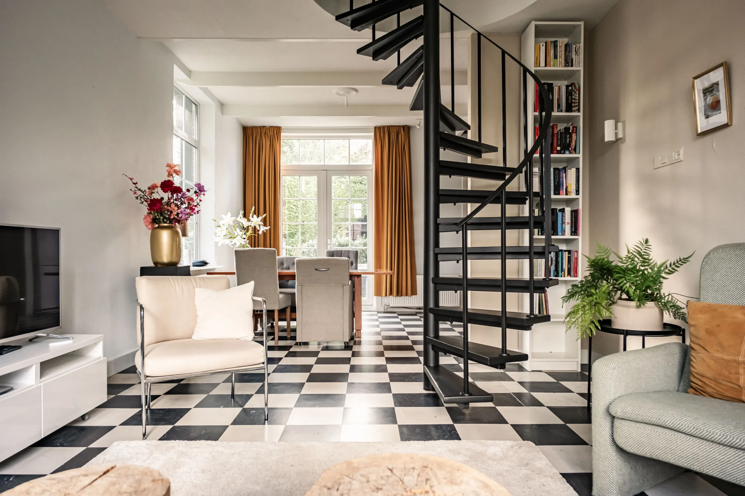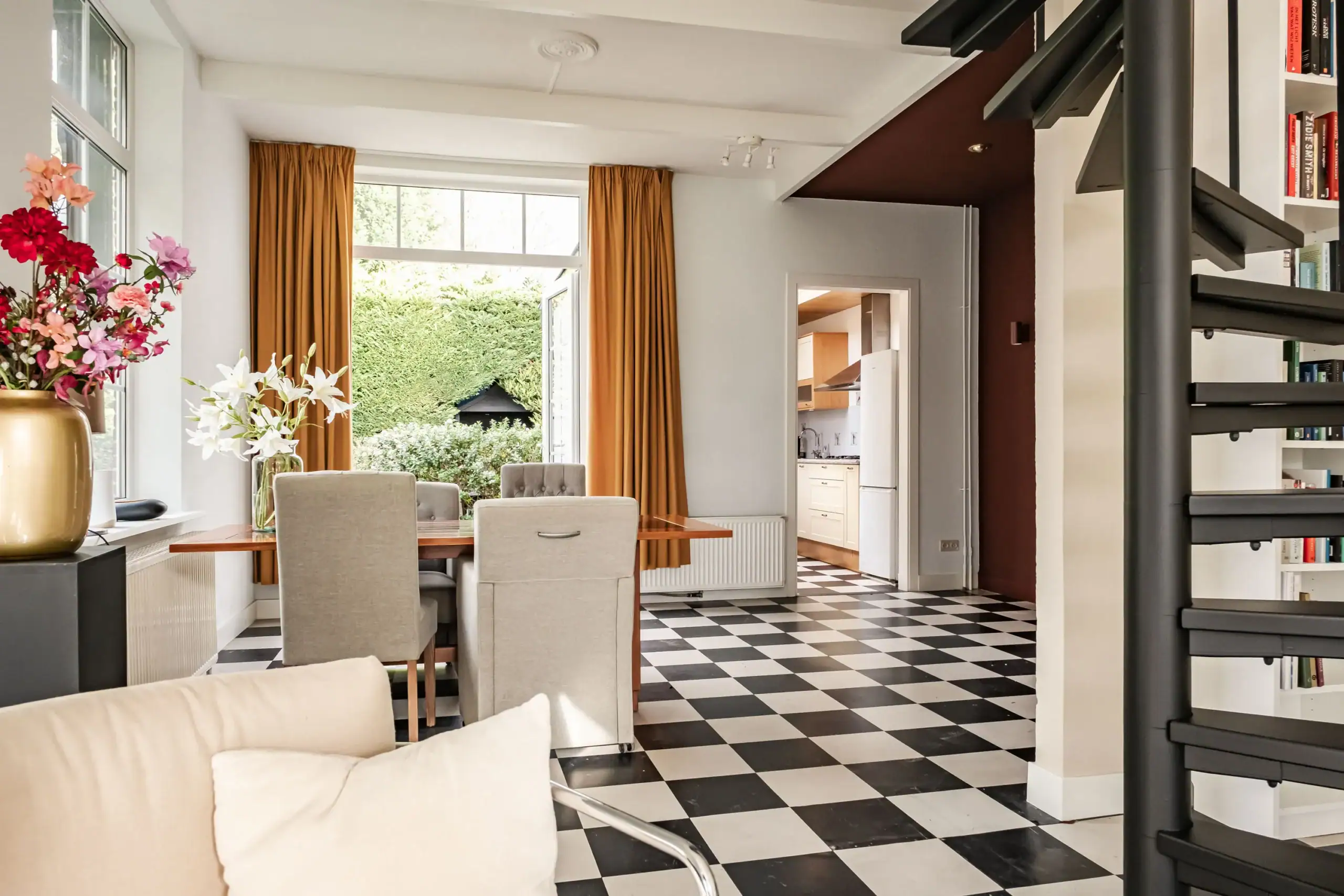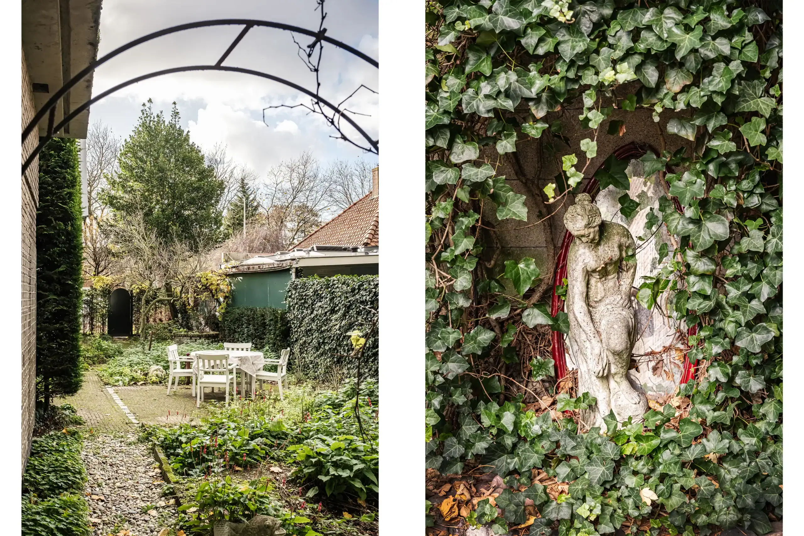 This charming property, dating from 1908, has a warm and welcoming character. The living room exudes a homely atmosphere, with French doors providing a wonderful connection to the outdoors. Step outside into a beautifully landscaped garden with a water well and a romantic, detached wooden garden house: a green oasis where peace, privacy and nature come together. Thanks to the various terraces, there is always a perfect spot to enjoy the sun – whether you prefer a sunny breakfast in the morning or a long summer evening with friends at the end of the day.