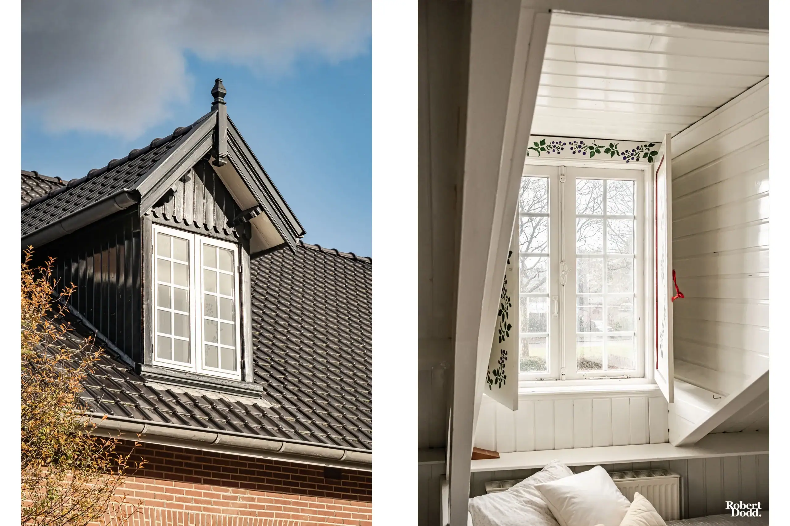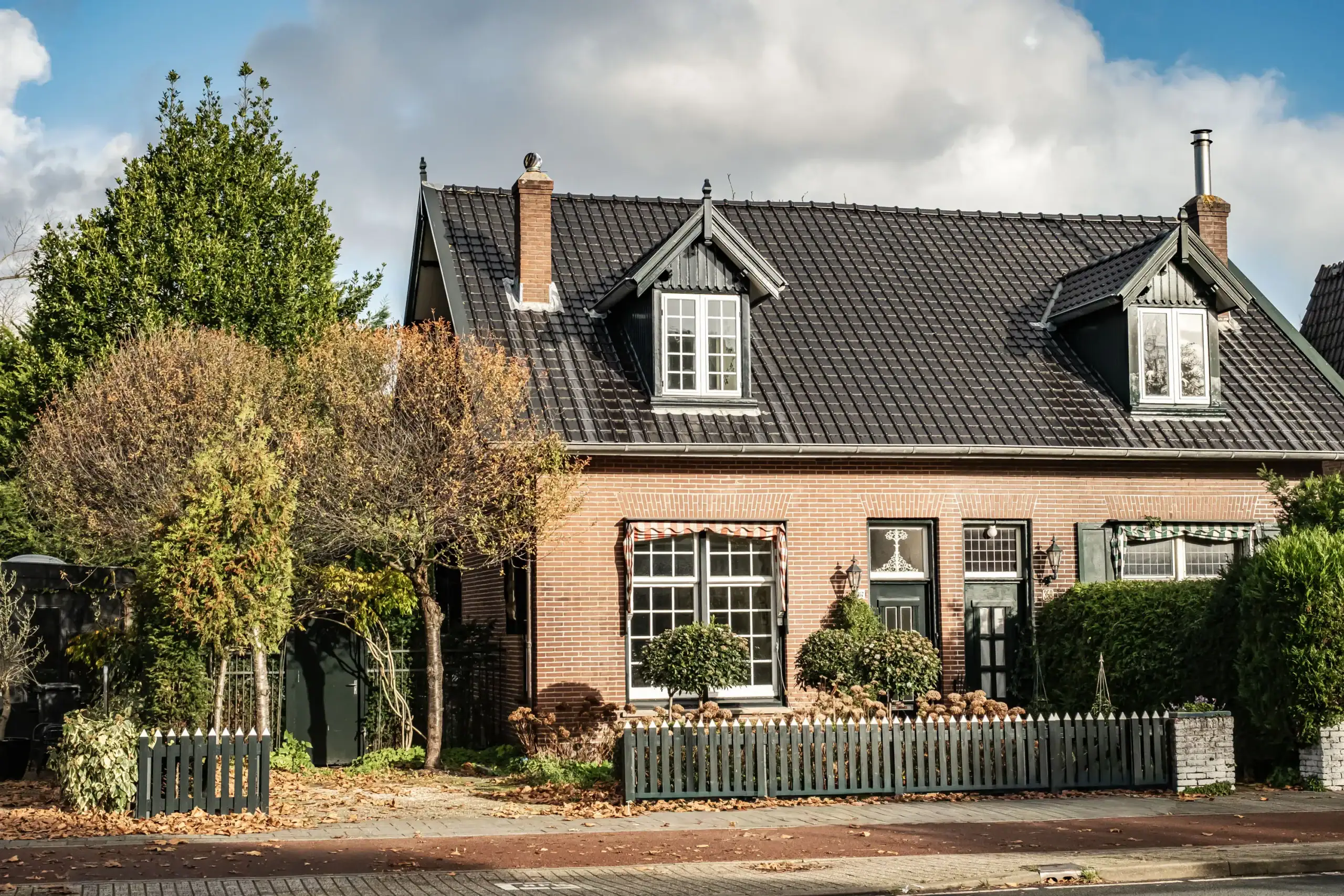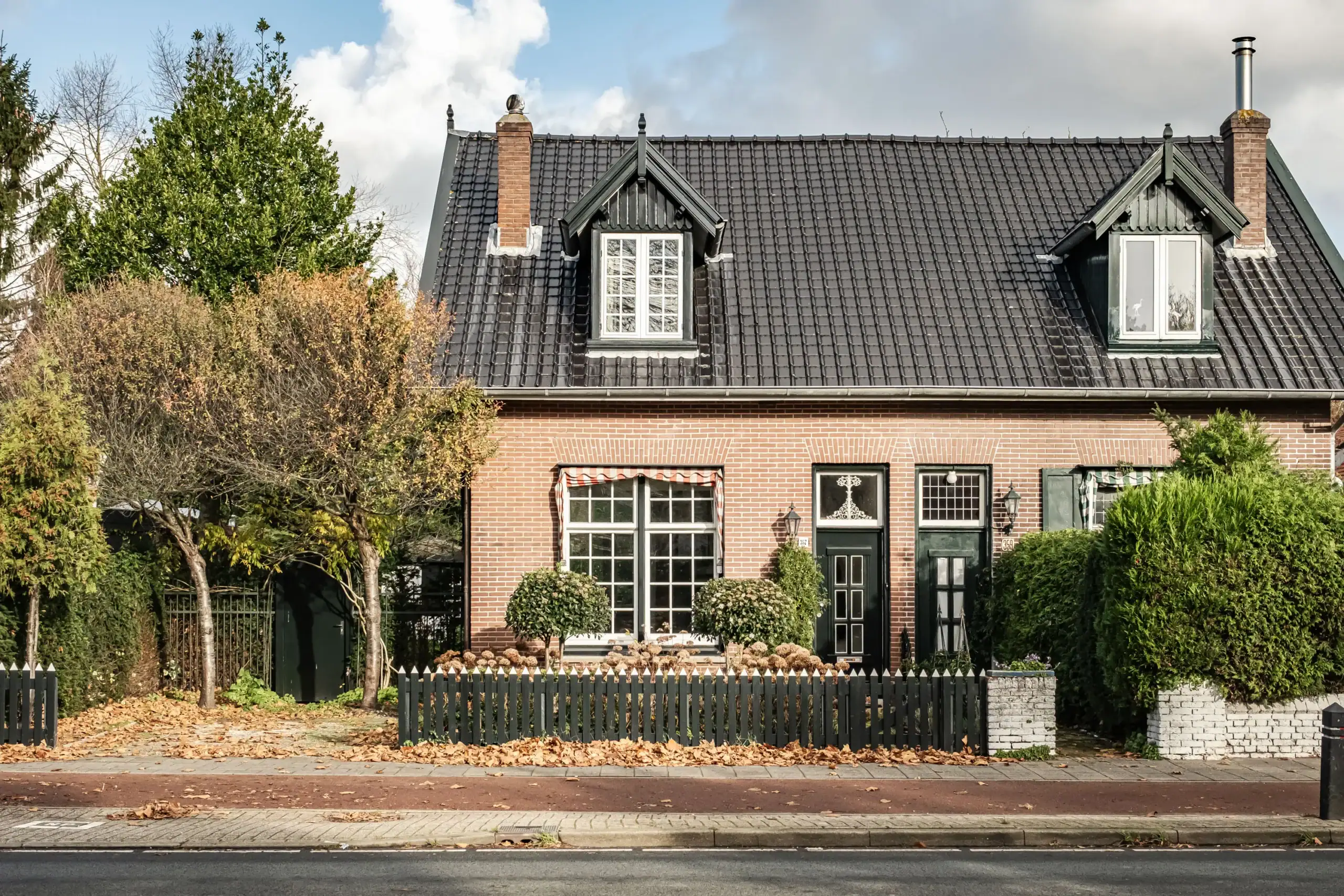 * Charming windows with leaded panes and awnings