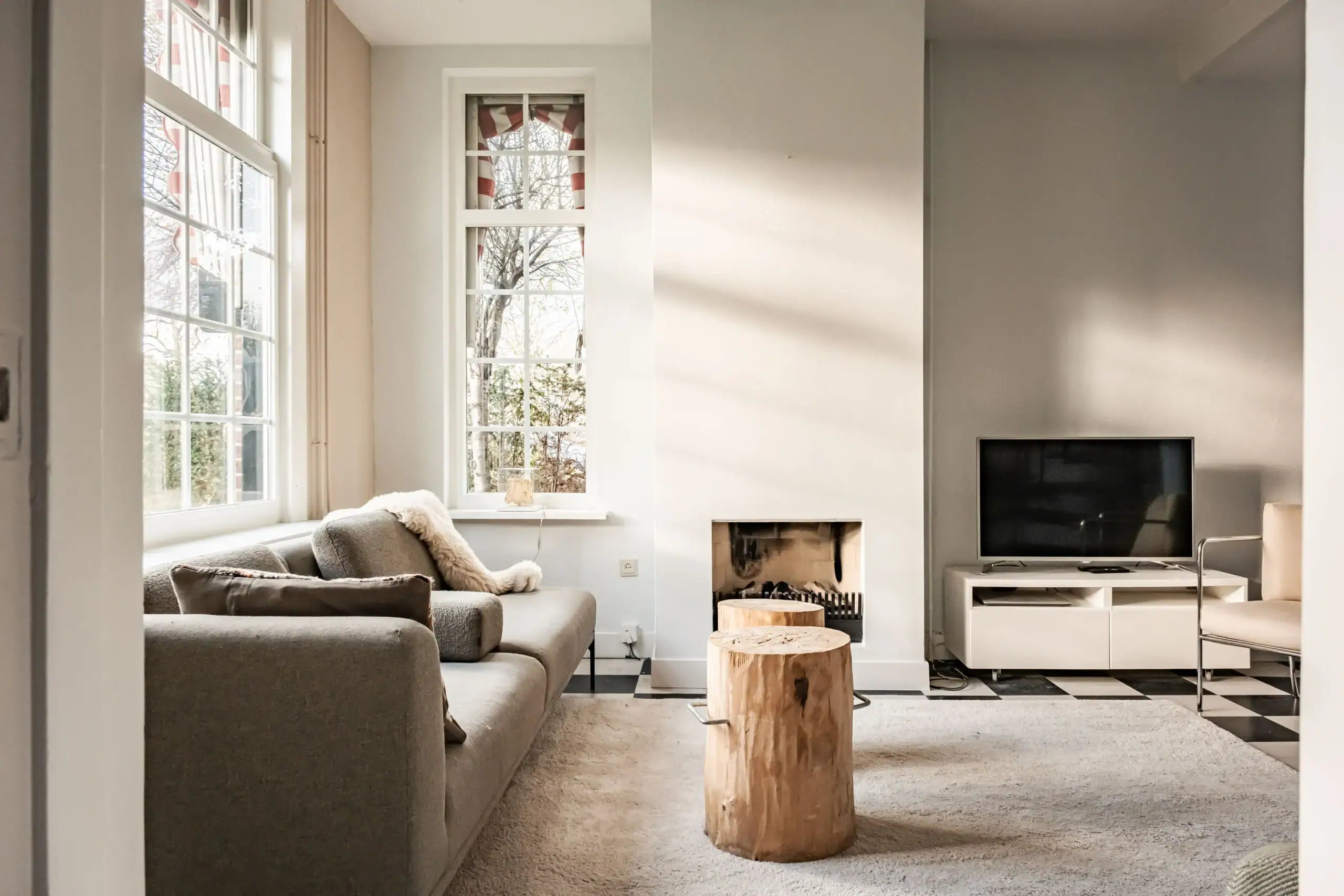 * Bright living room with open aspect and (gas) fireplace