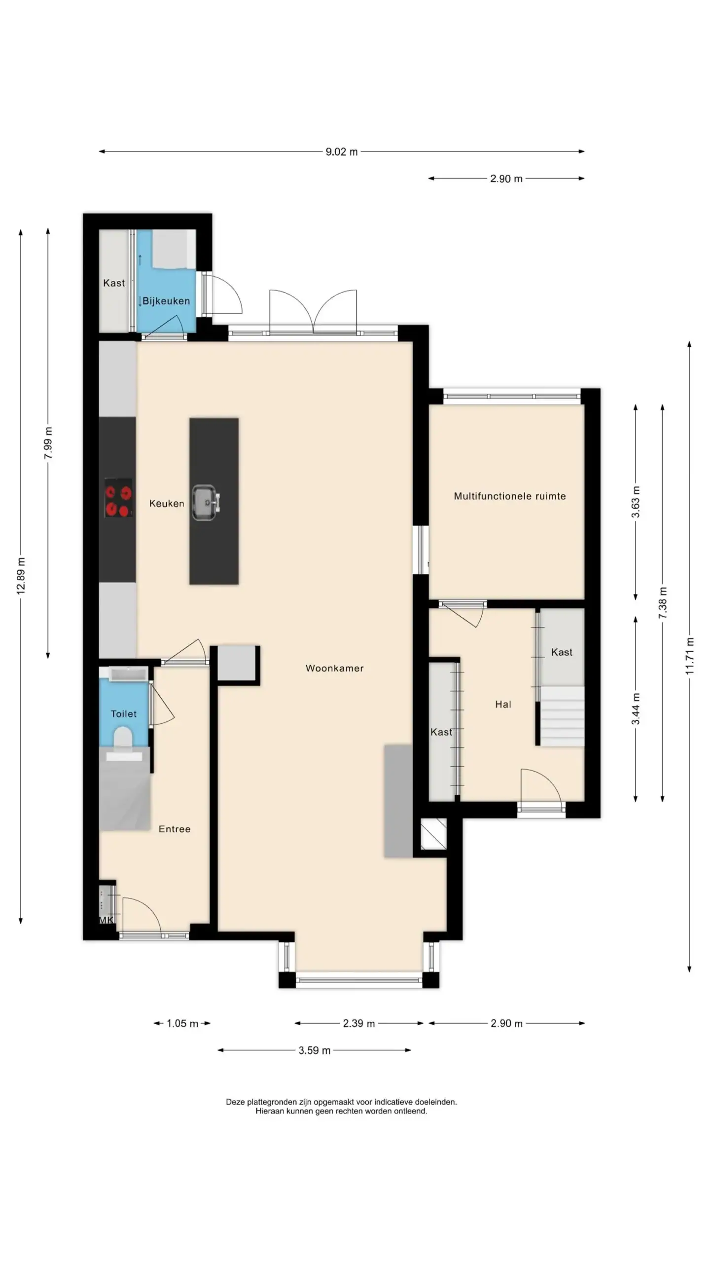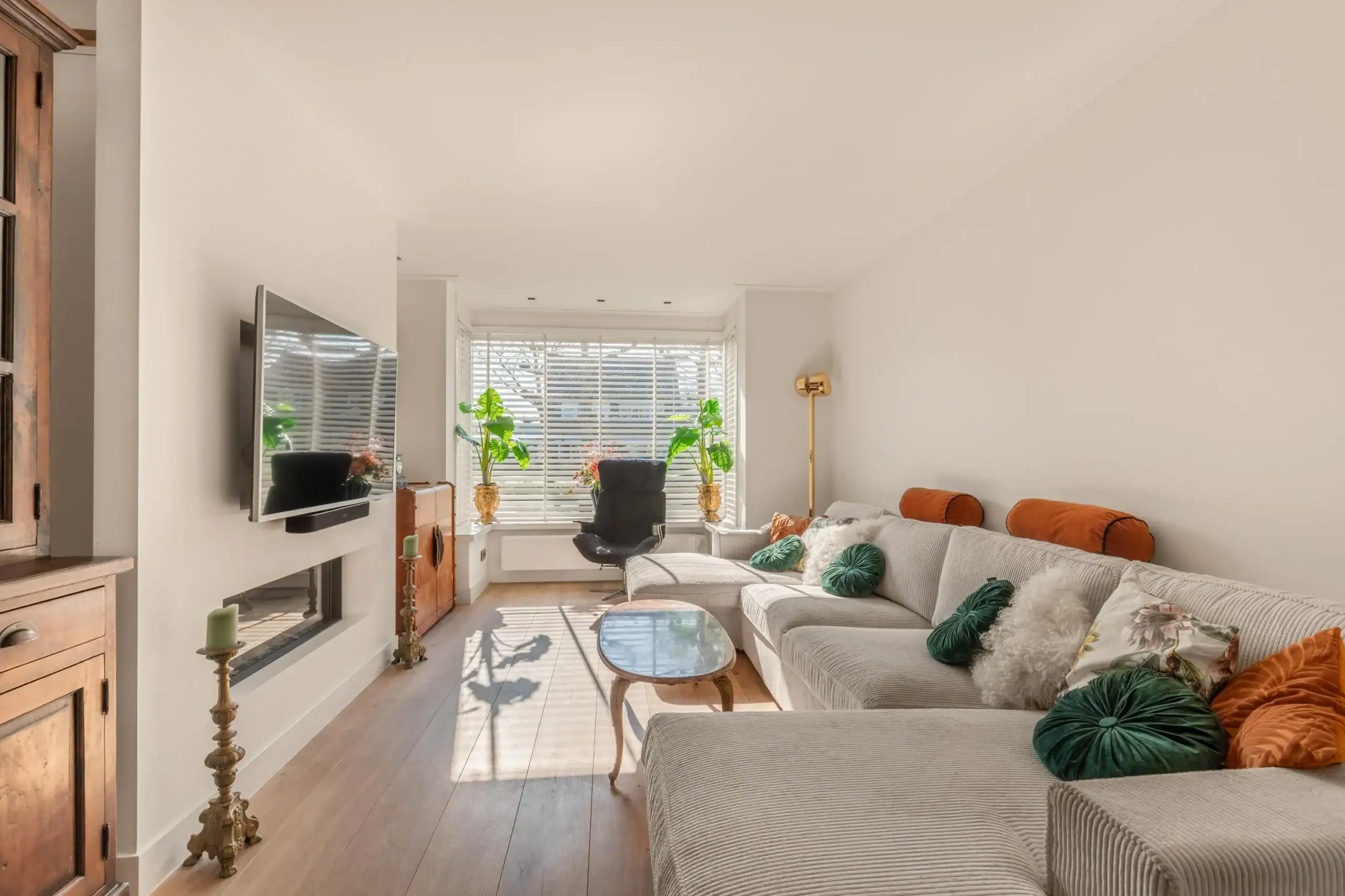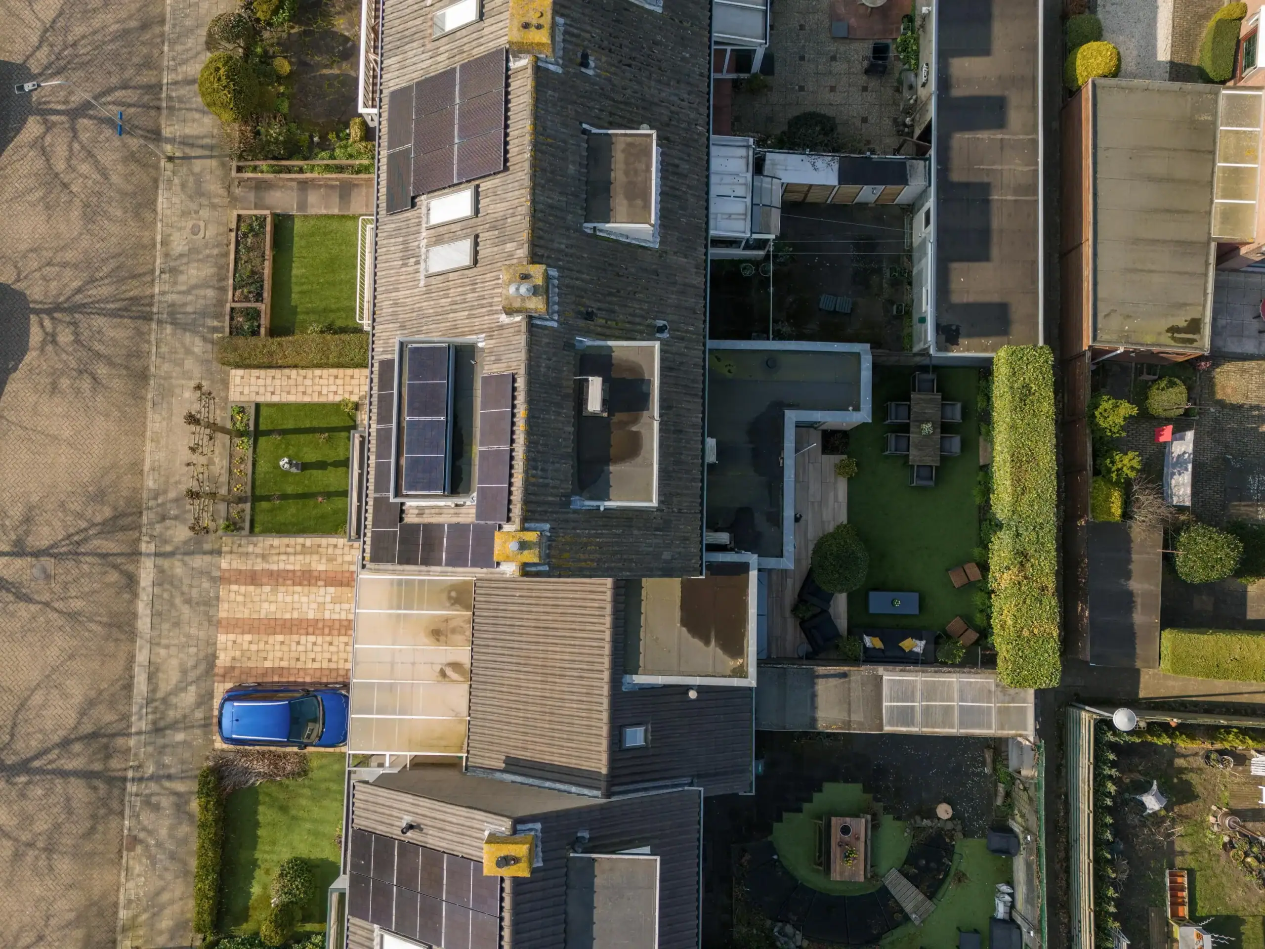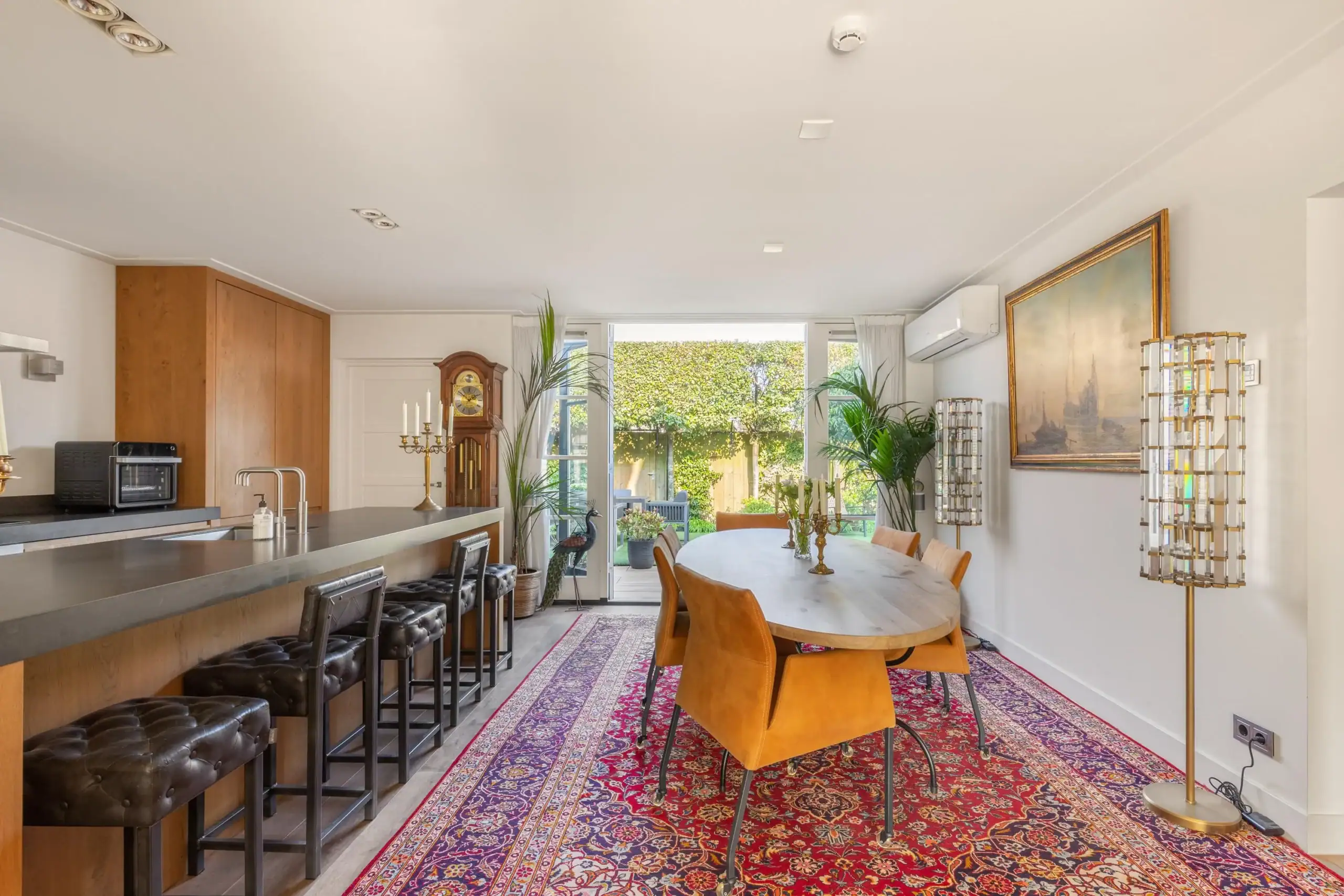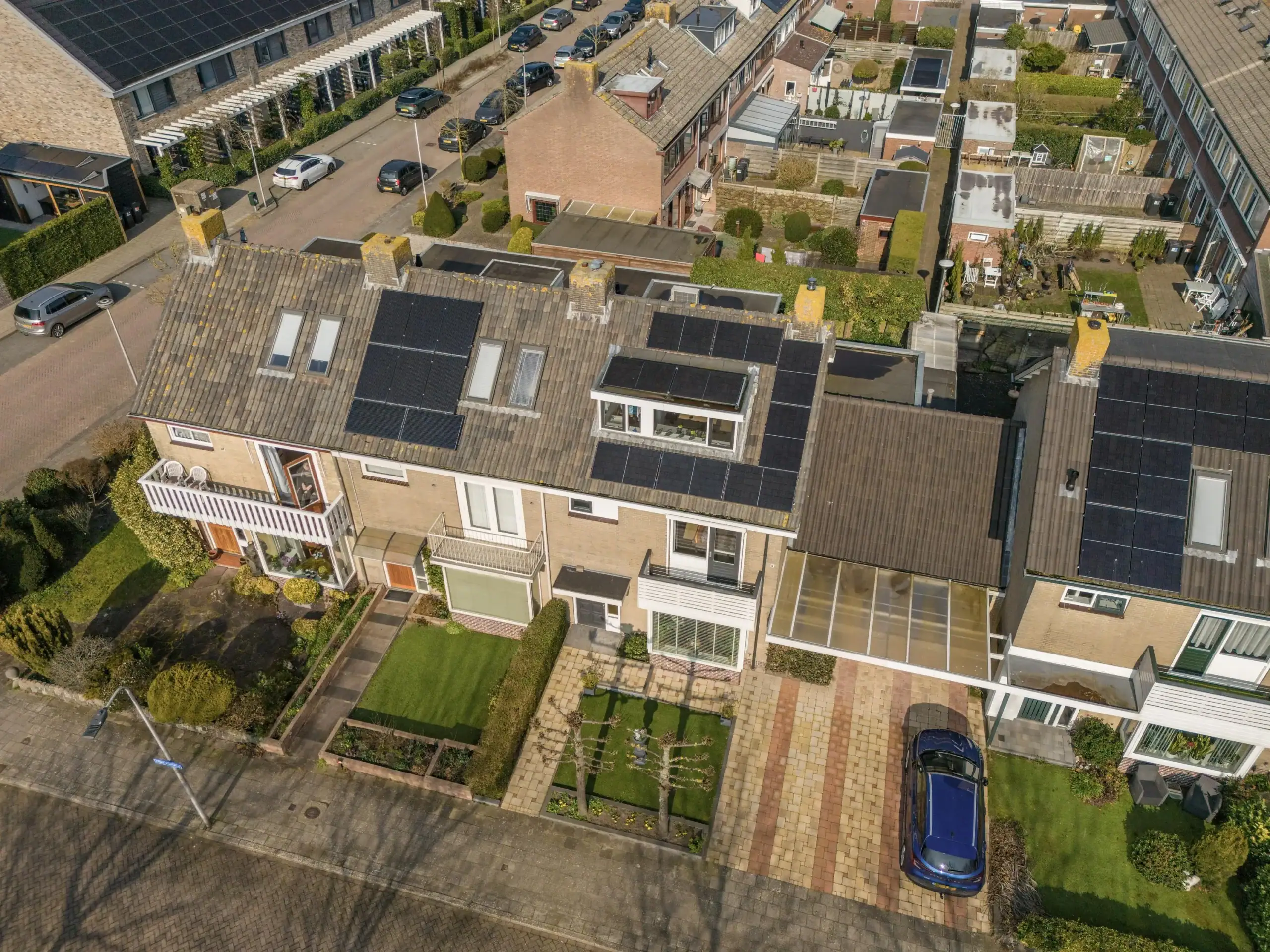 This surprisingly spacious home has been almost completely renovated and extended in recent years, resulting in a modern and comfortable living space. In addition, the house is equipped with smart home automation, 9 solar panels, and 3 air conditioners, contributing to extra comfort and energy-efficient living. The house has been significantly enlarged with an extension to the living room, where a beautiful and spacious kitchen-diner has been created. In addition, the former garage has been converted into an extra (TV) room with its own bedroom, and an additional floor has been added, creating even more living space. The luxurious kitchen-diner is undoubtedly the true eye-catcher of the home. The large kitchen island and high-quality built-in appliances, including a wine climate cabinet, make this a wonderful place to cook. Through the French doors, the kitchen-diner is directly connected to the beautifully landscaped backyard. The first floor has also been completely renovated and redesigned for optimal use of space. The second floor still offers the possibility to create an additional bedroom.
