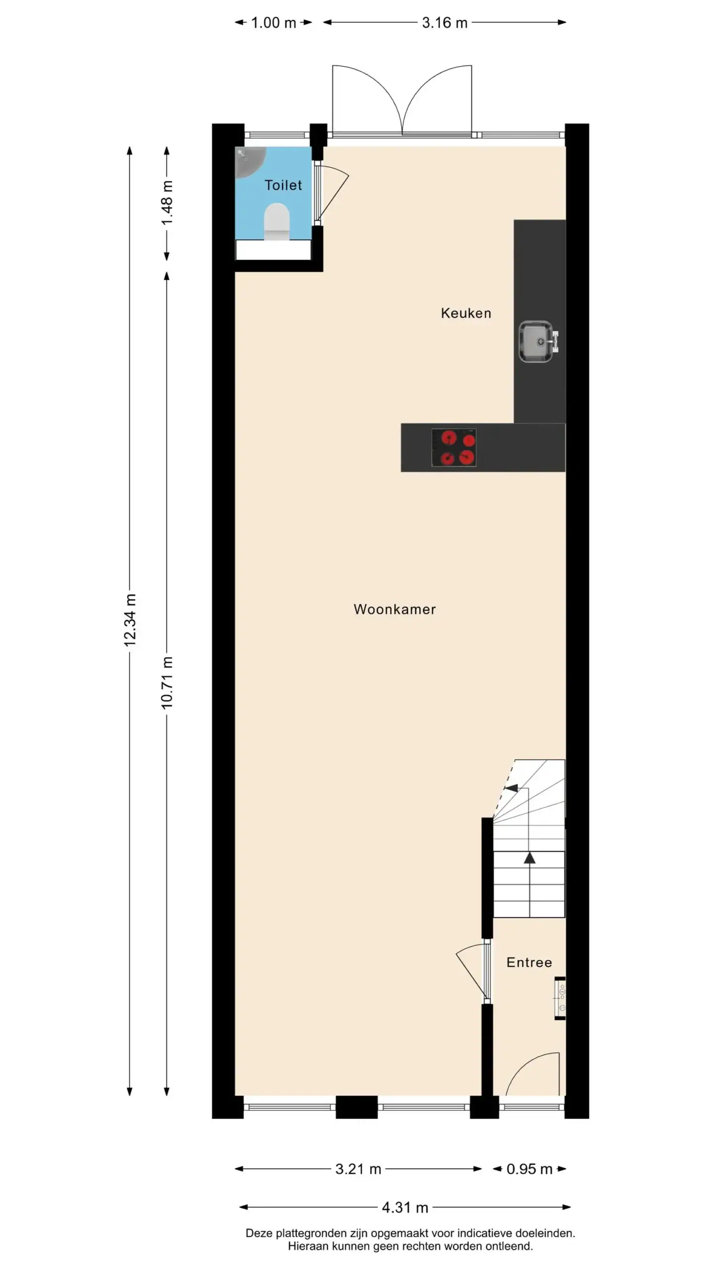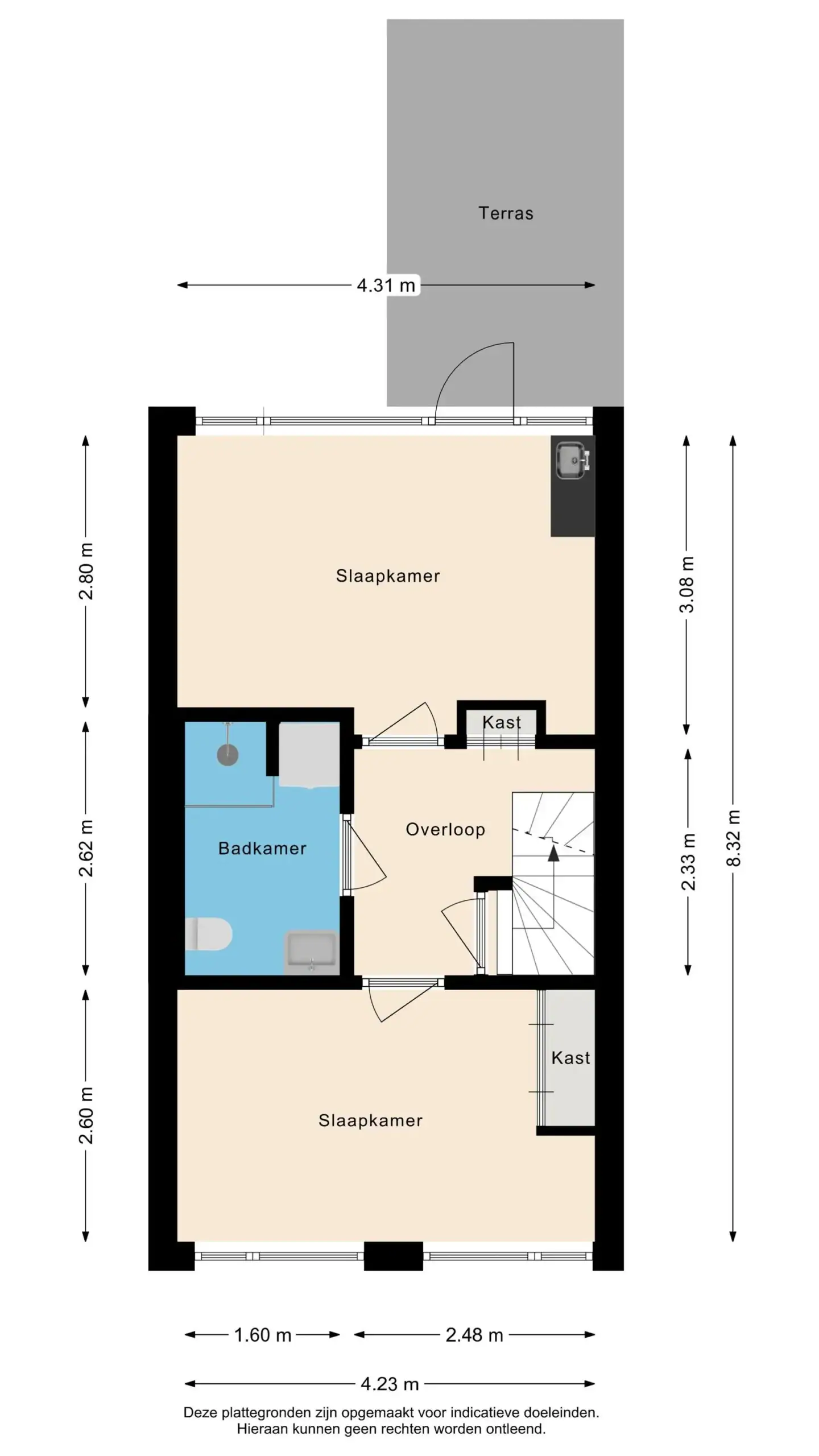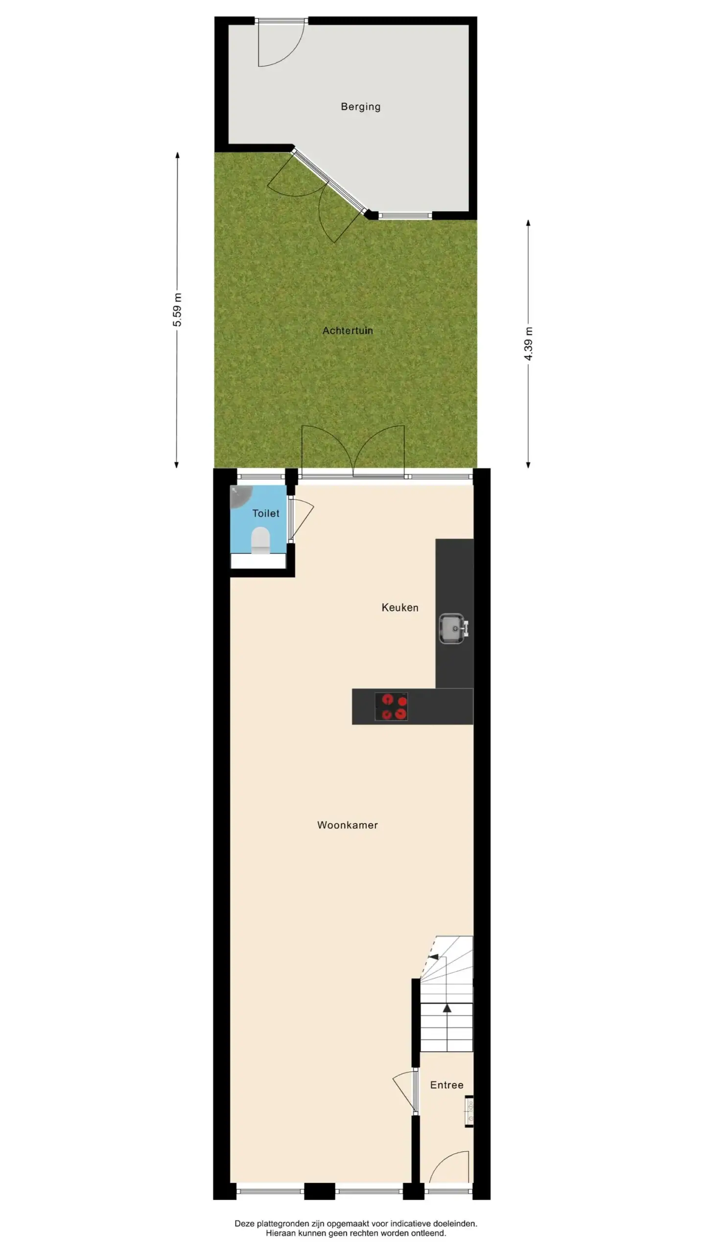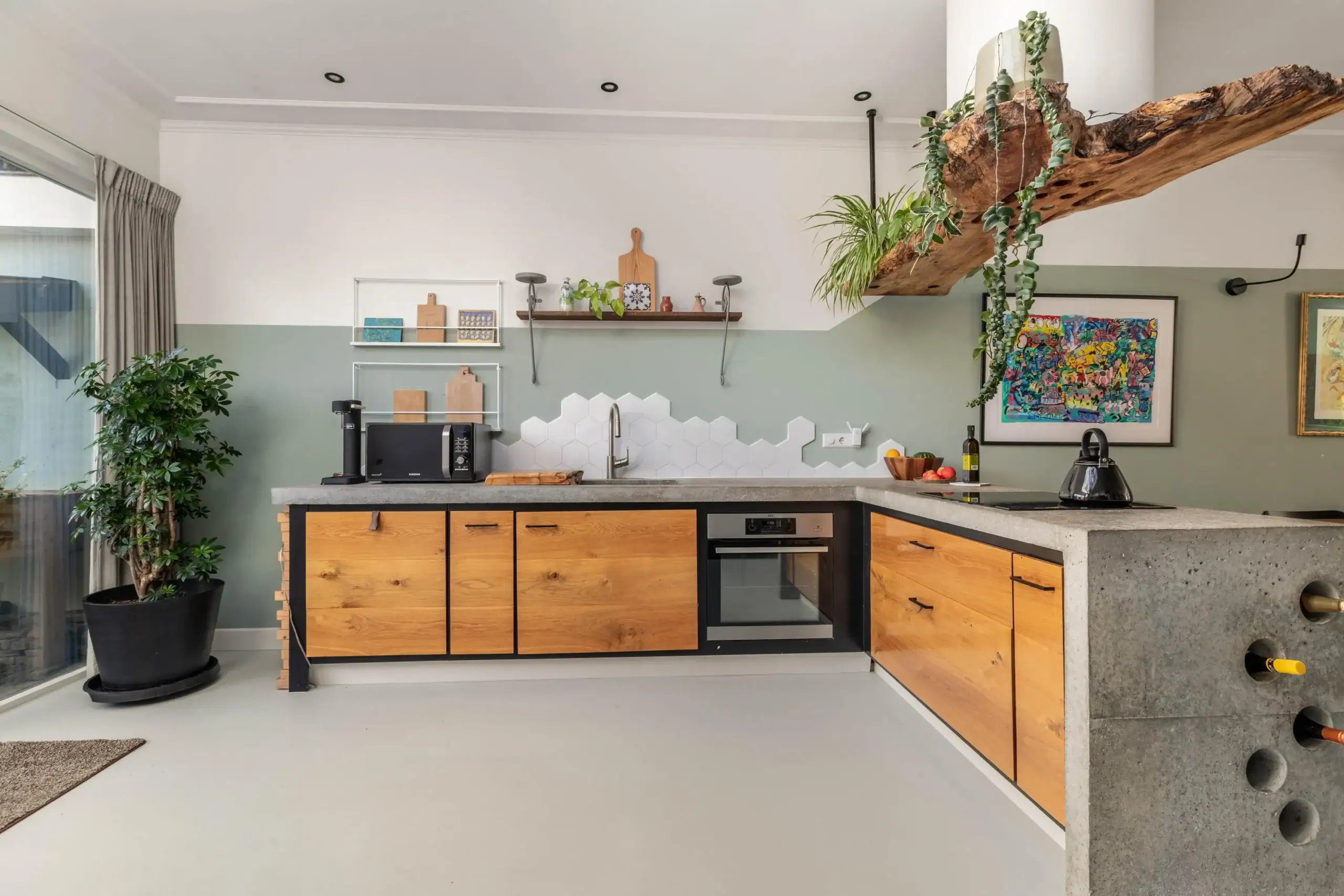 You enter through the hall into the spacious and attractive living room. There is an open kitchen which, thanks to its layout and choice of materials, is a real eye-catcher. The extension has a skylight, which provides extra space and light throughout the living room. There is a beautiful concrete floor with underfloor heating, ideal! French doors lead to the garden. The north-facing garden has a cosy atmosphere and features a detached shed with back access.