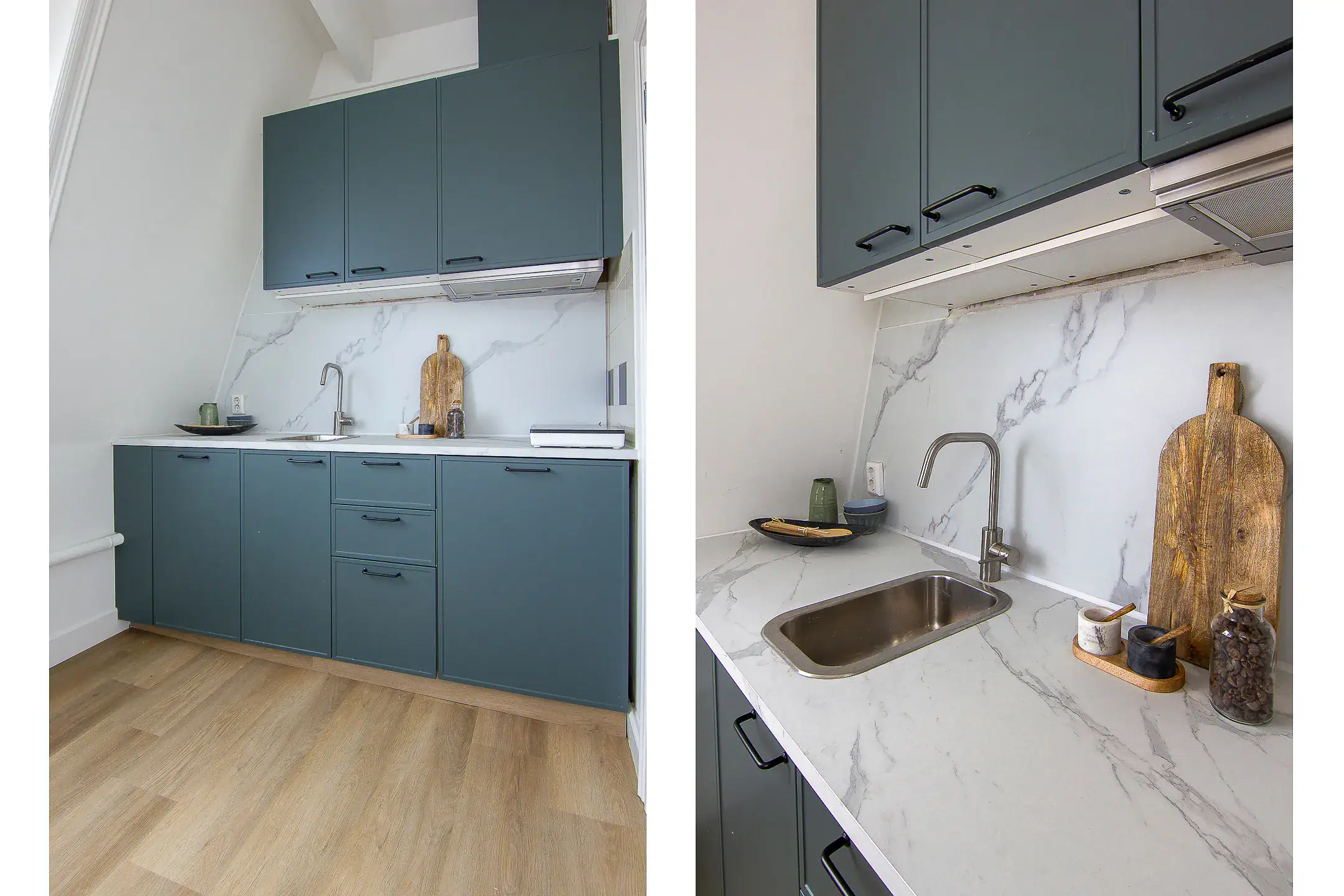Modern studio in a classic listed building. Charming, characteristic features and large windows. Fantastic light and optimal use of space. Well-maintained both inside and out, with a communal garden featuring rear access and a covered bicycle shed. In a beautiful location: on one of Haarlem’s many canals, with the station and the lively town centre just around the corner.