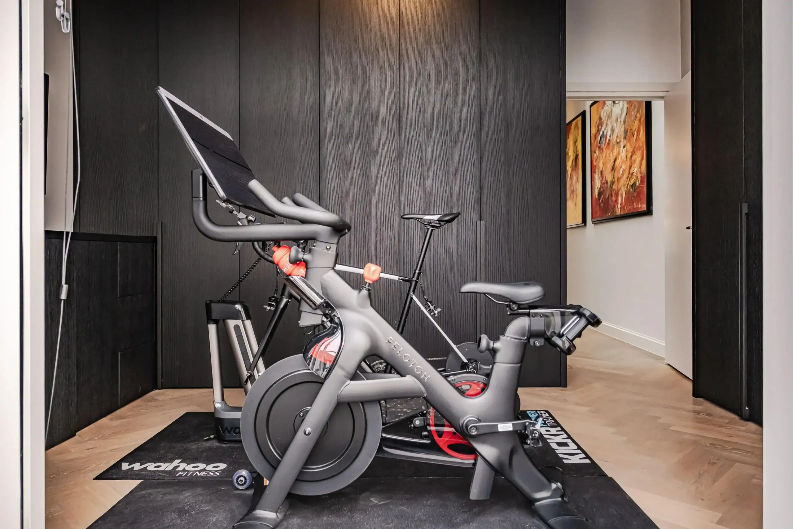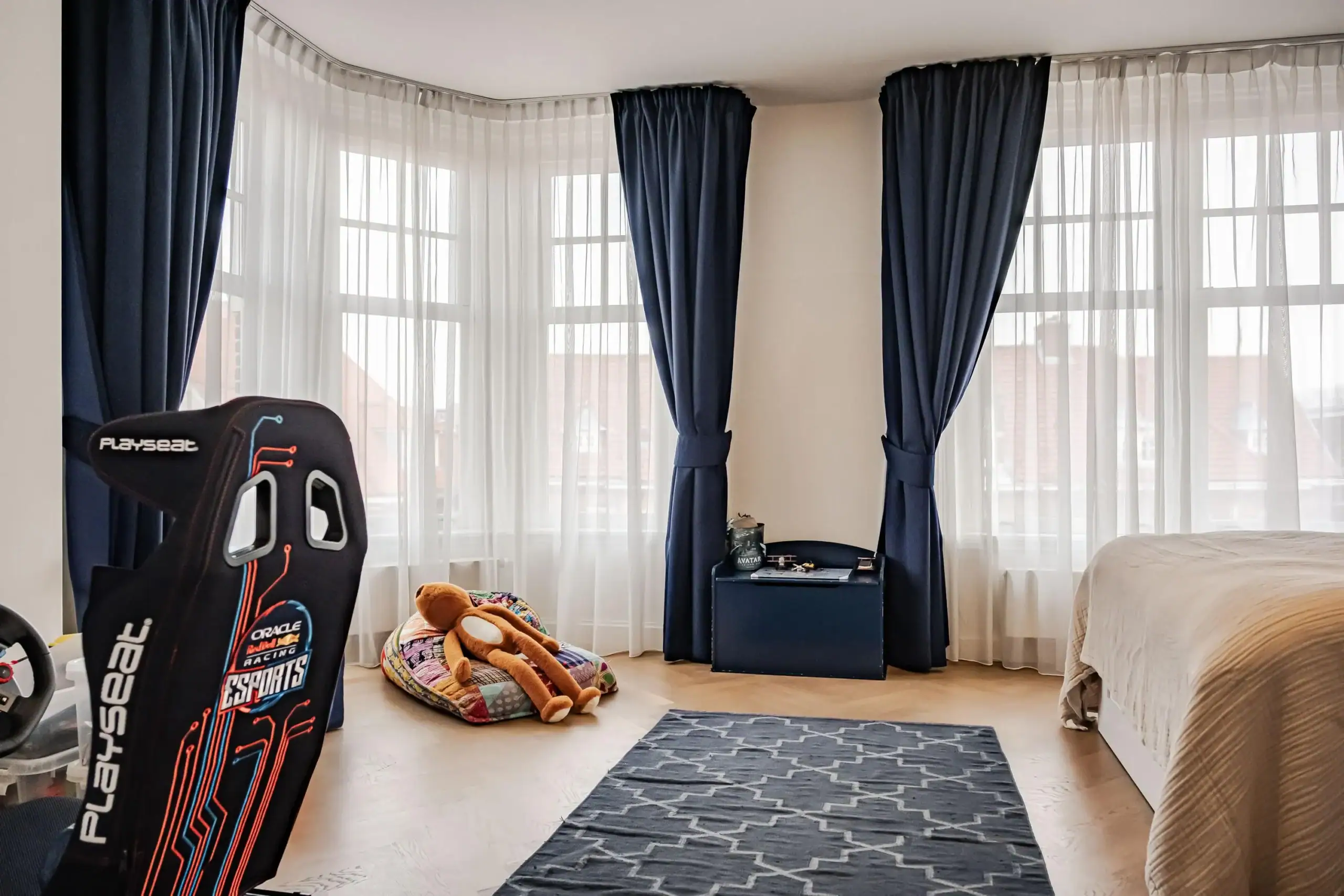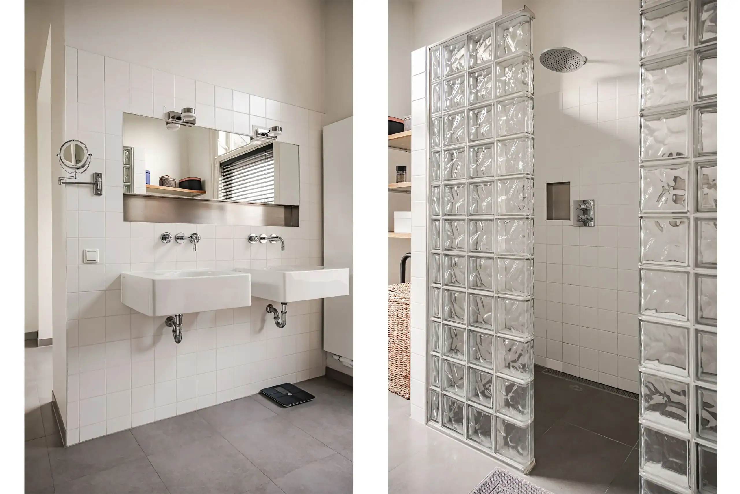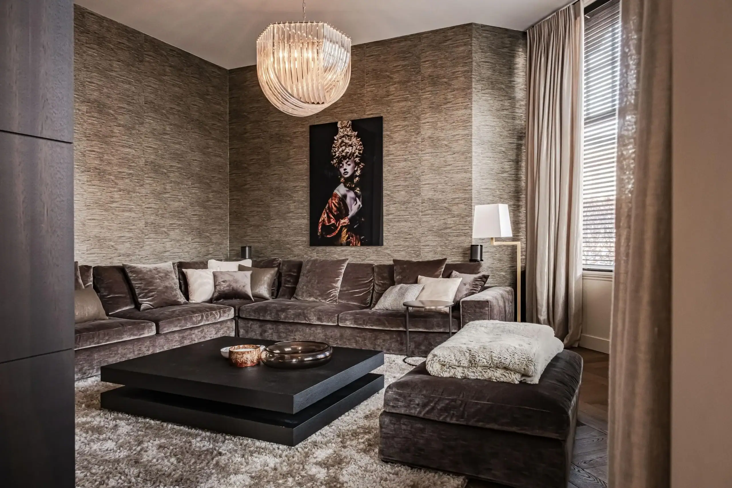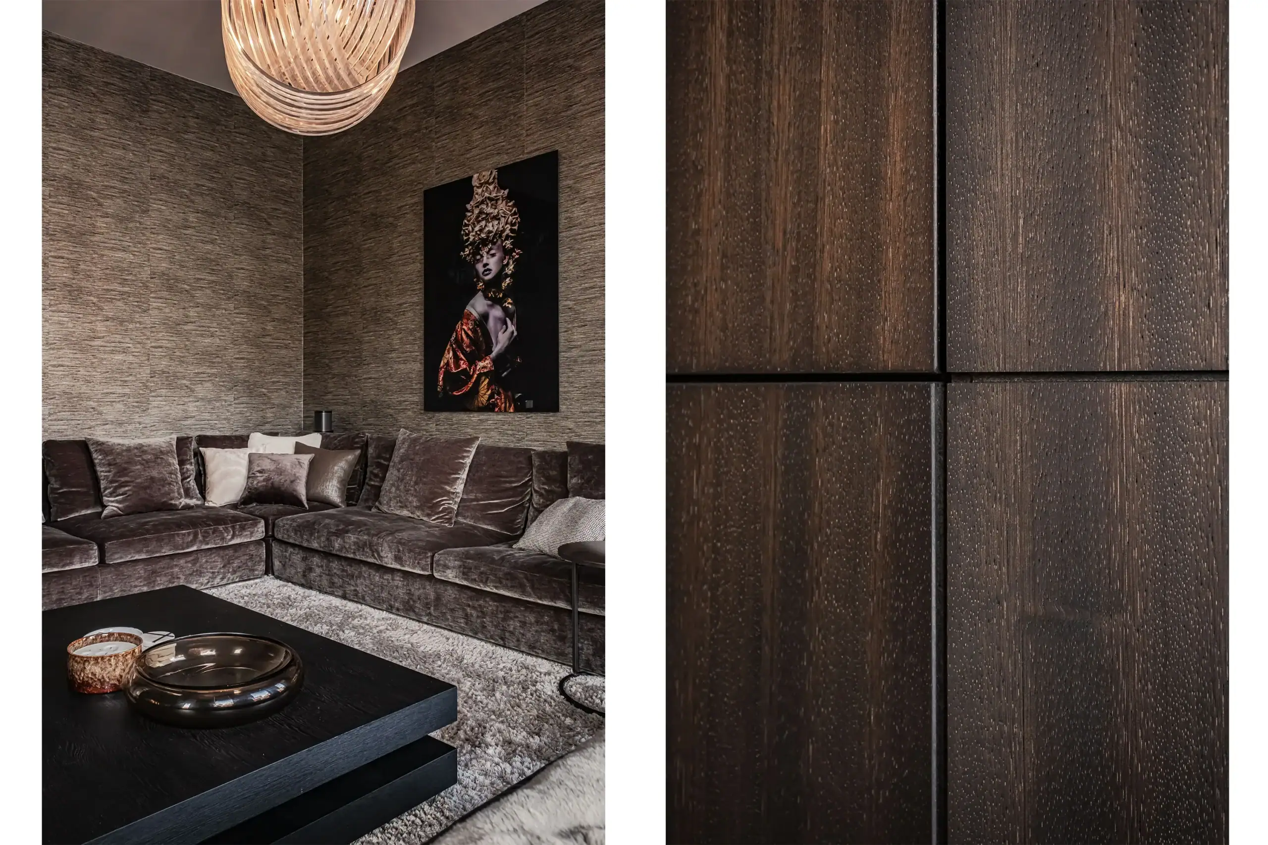 The wow factor is evident throughout the house, though there are a few elements that really stand out. First of all, the impressive atrium with its modern glass structure at the heart of the house. This allows fantastic natural light to flood onto every floor and, together with the high ceilings, creates an overwhelming sense of space and freedom. Then there are the imposing pivot doors and the room dividers with gas fireplaces on the ground floor; the interior is custom-made and uses natural materials such as wood and leather. The large open-plan kitchen features a sleek black worktop, a bar area and luxury built-in appliances. It is the perfect spot for drinks with friends or a (large) family and is directly connected to the dining room. Last but not least: the beautiful staircase; the landing staircase and the balustrade with wood carvings are a wonderful tribute to the property’s historic character. The home exudes not only space, luxury and character, but above all cosiness and home comfort.