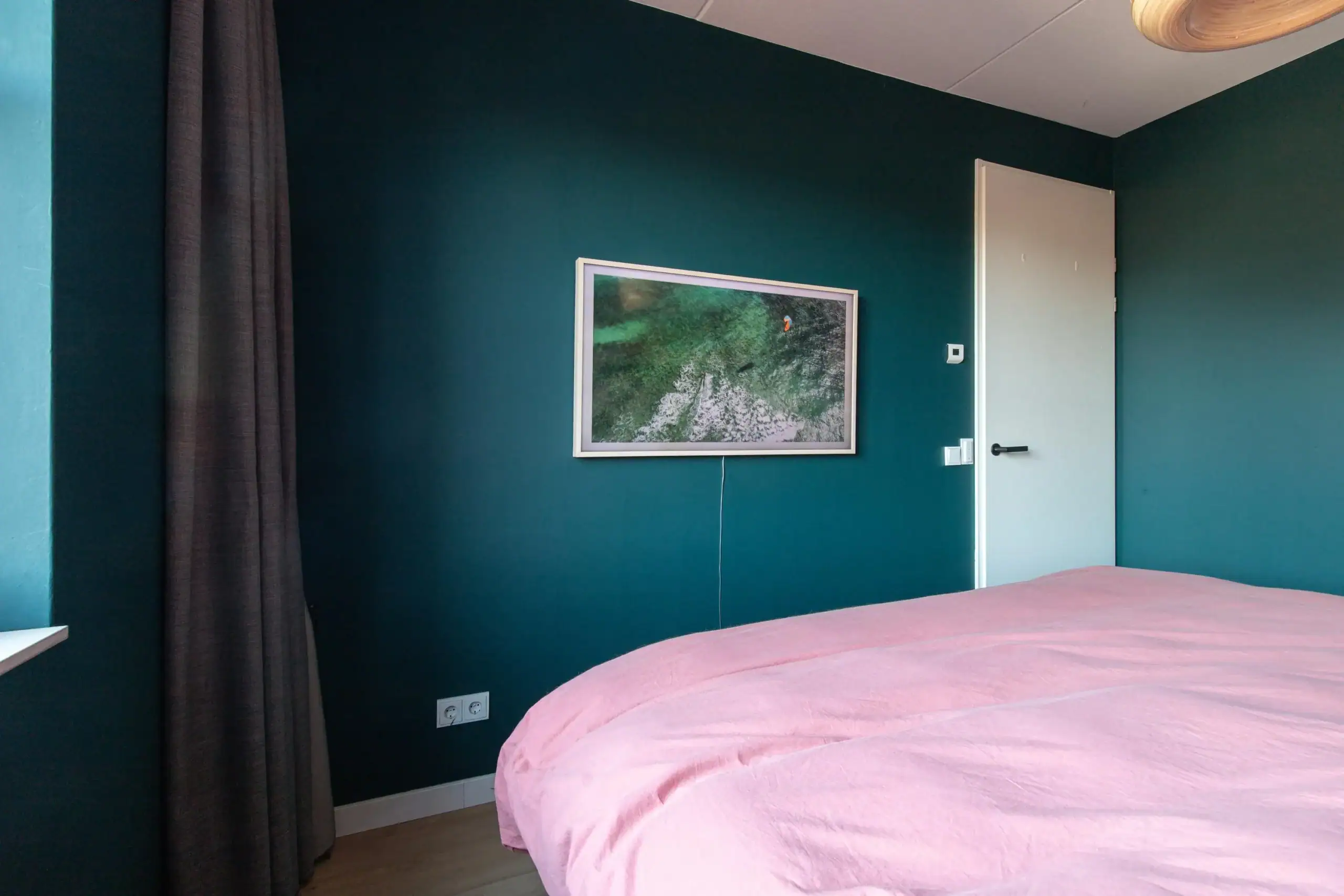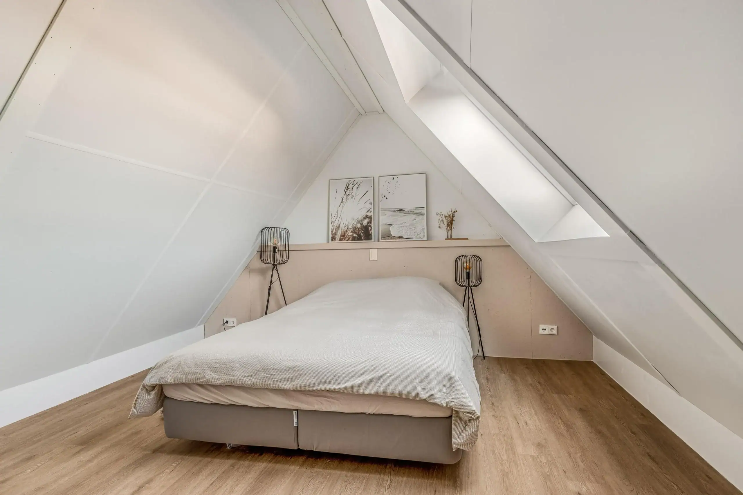 Via a fixed staircase you reach the third floor. Here a full-sized additional bedroom has been created with a roof window and a high ridge, which provides a spacious and bright feeling.