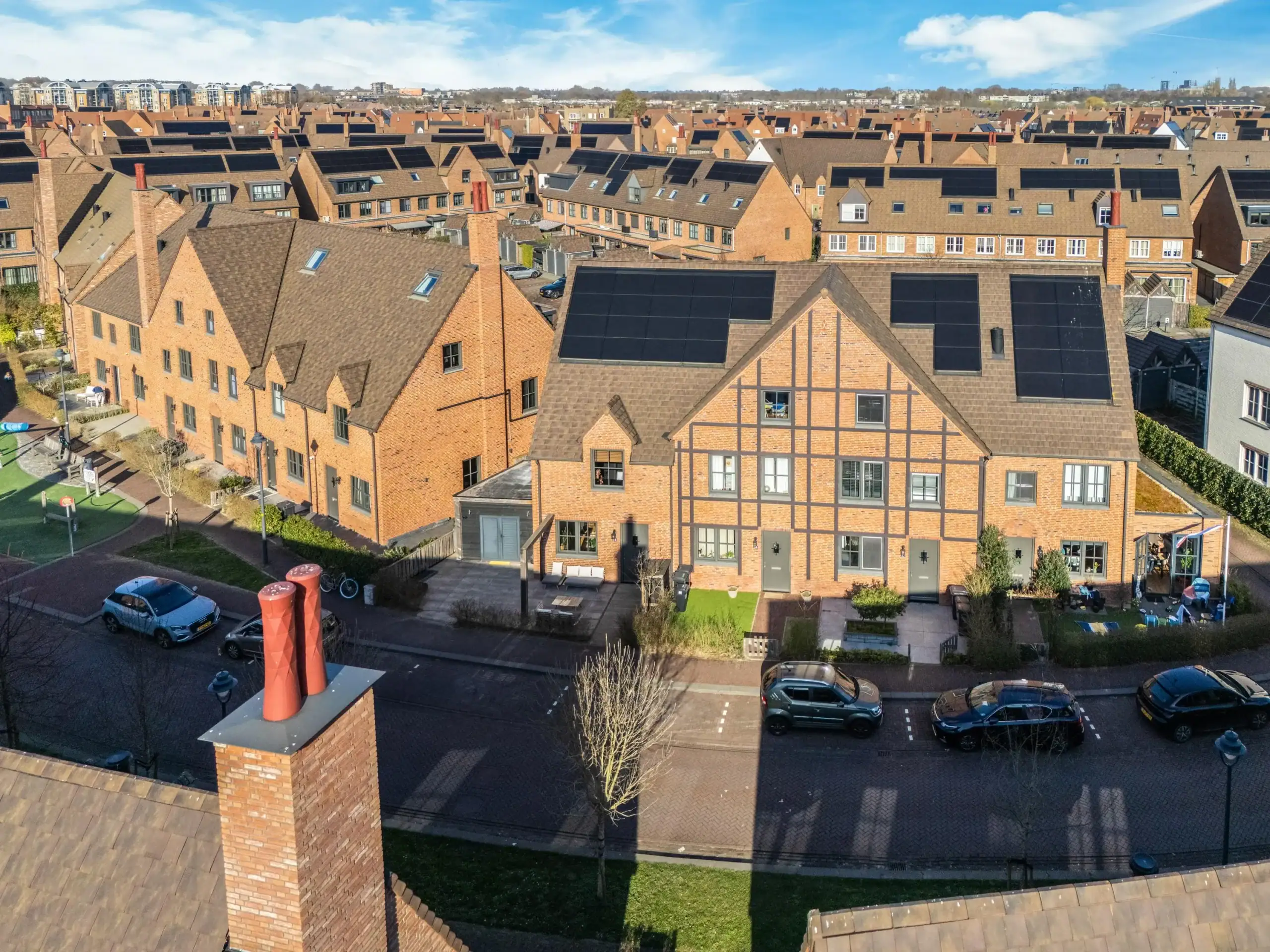 Space, comfort and an ideal layout come together in this exceptionally spacious corner house with a garage and private parking space. The home is highly energy-efficient with an A energy label and 13 solar panels! The generous living room features a beautiful kitchen-diner with cooking island, an atmospheric gas fireplace and a stylish wooden floor with underfloor heating. Across the full width of the house there is a sliding door with the characteristic Tudor Park features, creating a pleasant transition between indoor and outdoor living. On the first floor there are three bedrooms and a modern bathroom. One of the bedrooms is currently arranged as a walk-in closet with beautiful custom-made wardrobes. The second floor is particularly spacious and offers two bedrooms and a generous landing with a practical laundry area. Thanks to the dormer window at the rear, a lot of additional space and natural light has been created here. In addition, a third floor has been realized with a fixed staircase leading to a full-sized extra bedroom. As a result, the house offers surprisingly generous living space and is ready to move into! The spacious backyard is equipped with lighting and electricity, allowing you to fully enjoy the outdoor space in the evening as well. There is also a jacuzzi in the garden, which can be taken over if desired.