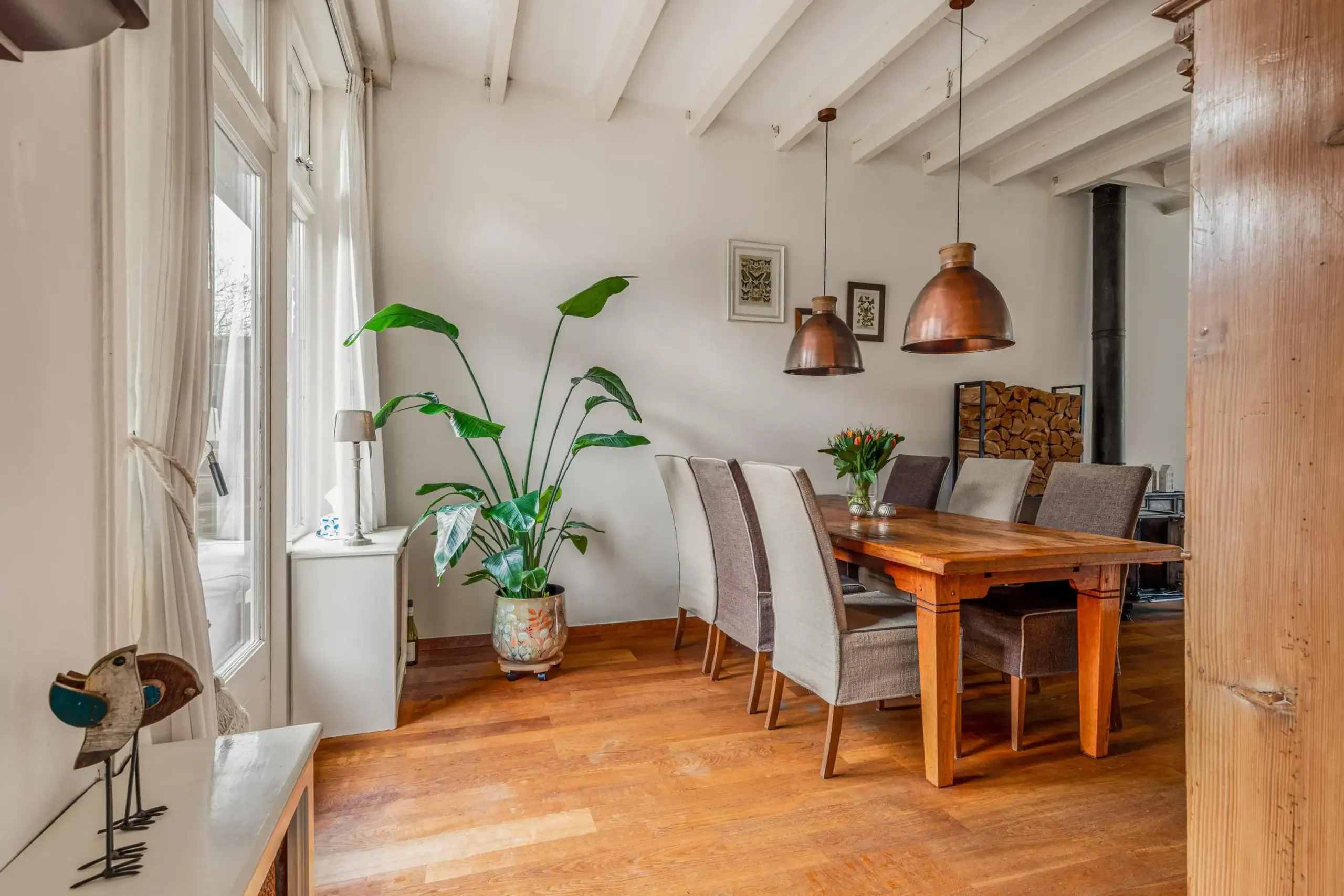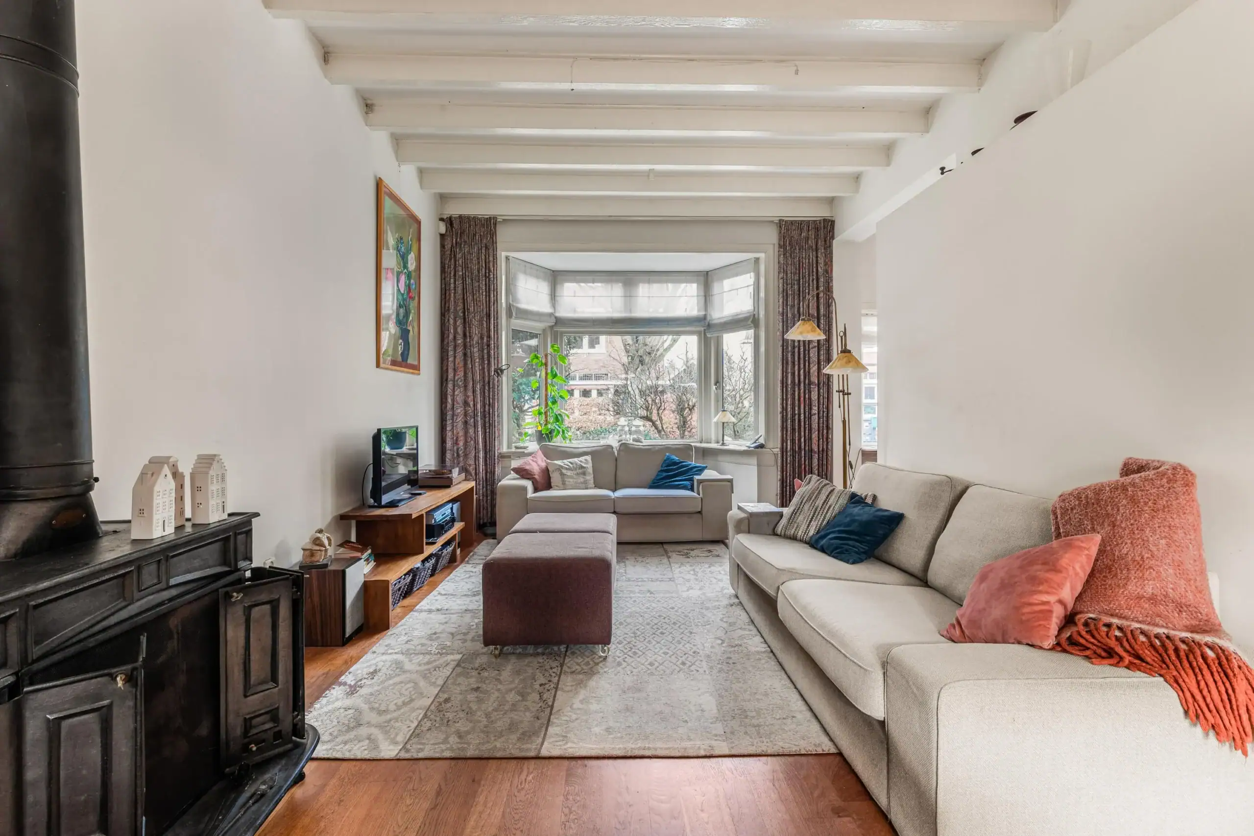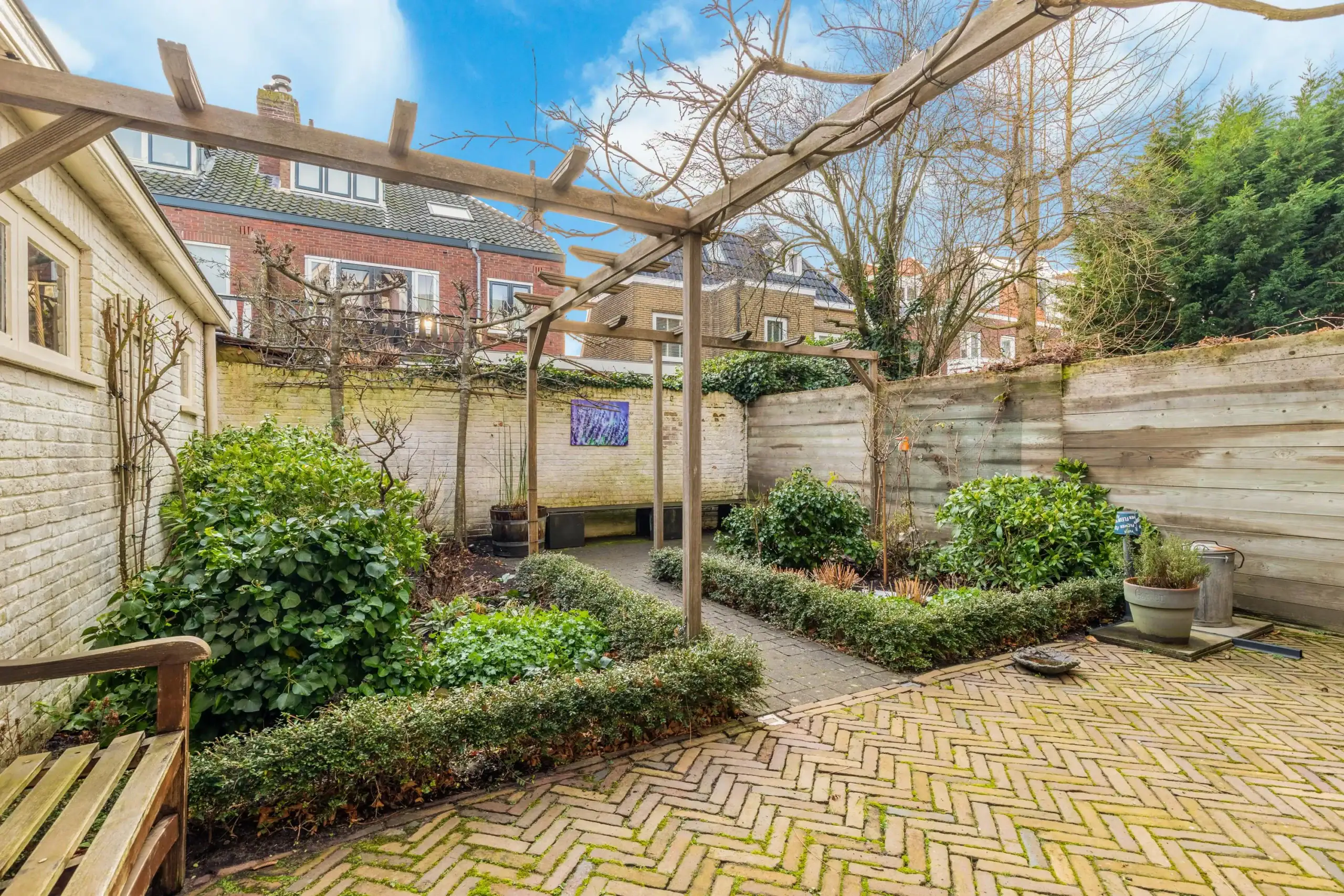 Overveen is a pleasant village, small-scale with lots of greenery and space. The shopping street is within walking distance, with Stach, Loetje, IJssalon Luciano, a fantastic organic butcher and its own railway station. Several good primary schools are also nearby. The football and hockey fields of Bloemendaal are within cycling distance. In less than 10 minutes by bike you can reach the Grote Markt, with all the nice shops, restaurants and excellent secondary schools that Haarlem has to offer. The station of Haarlem or Overveen (max. 20 minutes to Amsterdam Central) are a few minutes away. On the other hand, Overveen is the gateway to the Kennemer dunes, the Wed and the beach at Bloemendaal. By car, you can easily reach the A9 towards Schiphol and Amsterdam and the N205/A44 towards Leiden.