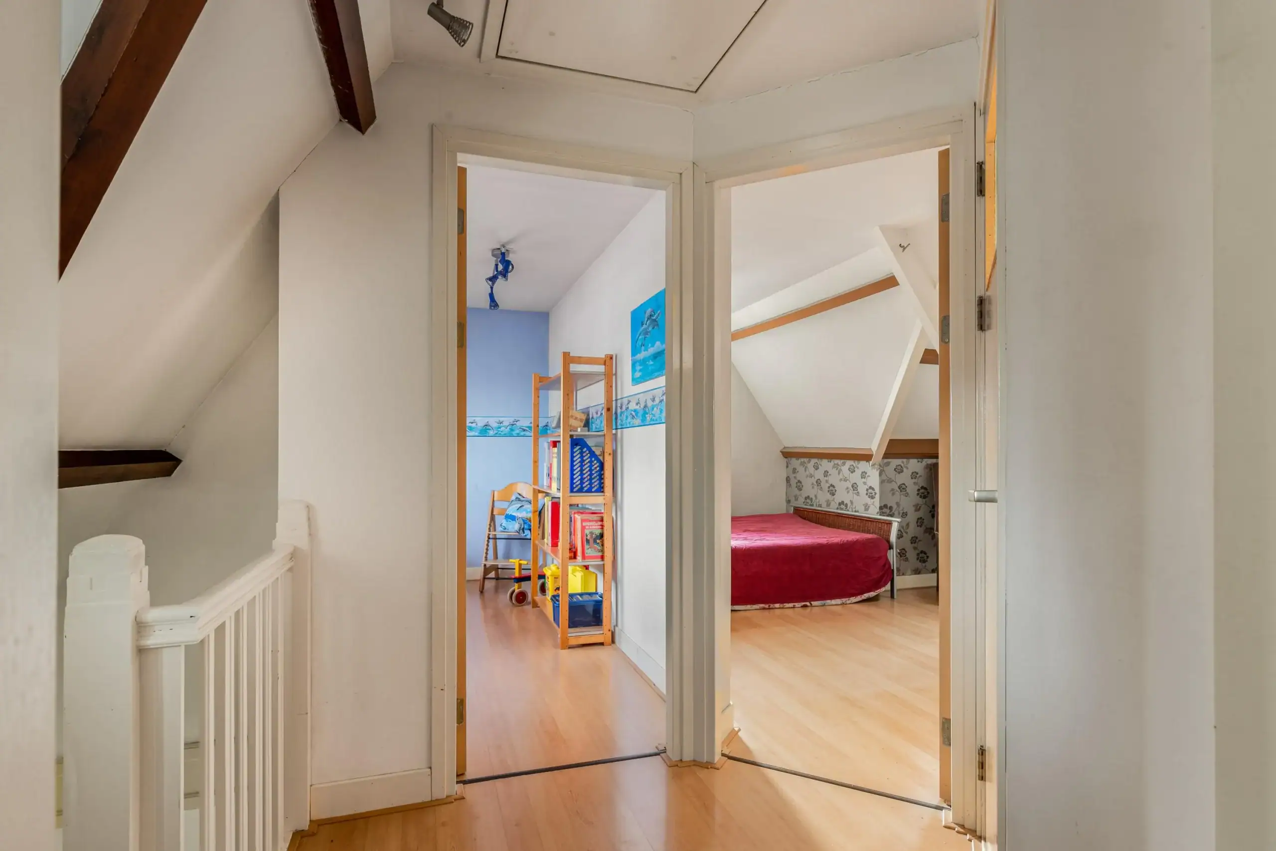 On the first floor, there are three bedrooms, two of which are large. One of the bedrooms even has a balcony overlooking the garden. Next to the stairs is the bathroom, equipped with a bath and shower, ideal! There is also plenty of space on the second floor. Here you will find another three bedrooms, a bathroom and a laundry room. And don’t forget the attic! In short, a dream home for any family!