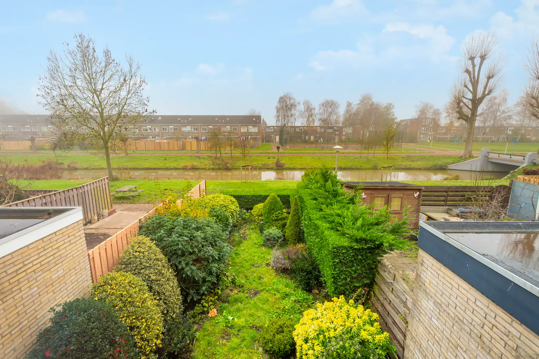 Aan de achterzijde van de woonkamer bereik je de zonnige achtertuin, gelegen op het zuidwesten. Deze tuin leent zich uitstekend voor een zomerse barbecue met vrienden of familie, of om na een lange werkdag in alle rust buiten te ontspannen. In de tuin vind je een bergkast en een waterkraan voor het bewateren van planten.