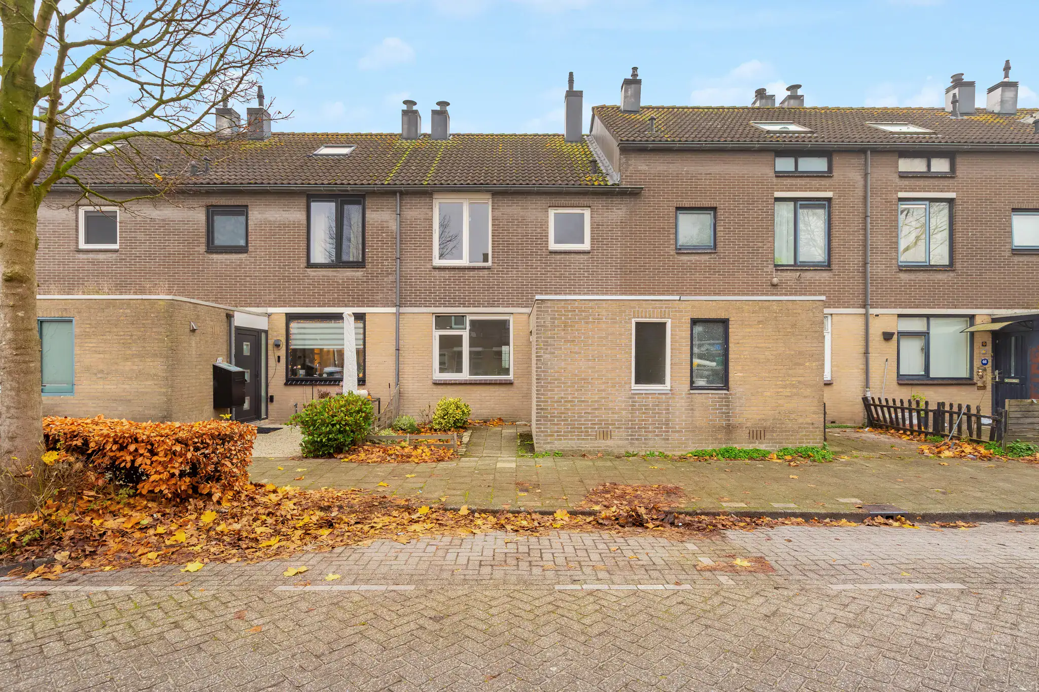 Via de eigen voortuin bereikt u de voordeur van deze woning. Bij de voorzijde van de woning bevinden zich een goed bemeten externe berging en de meterkast van de woning.