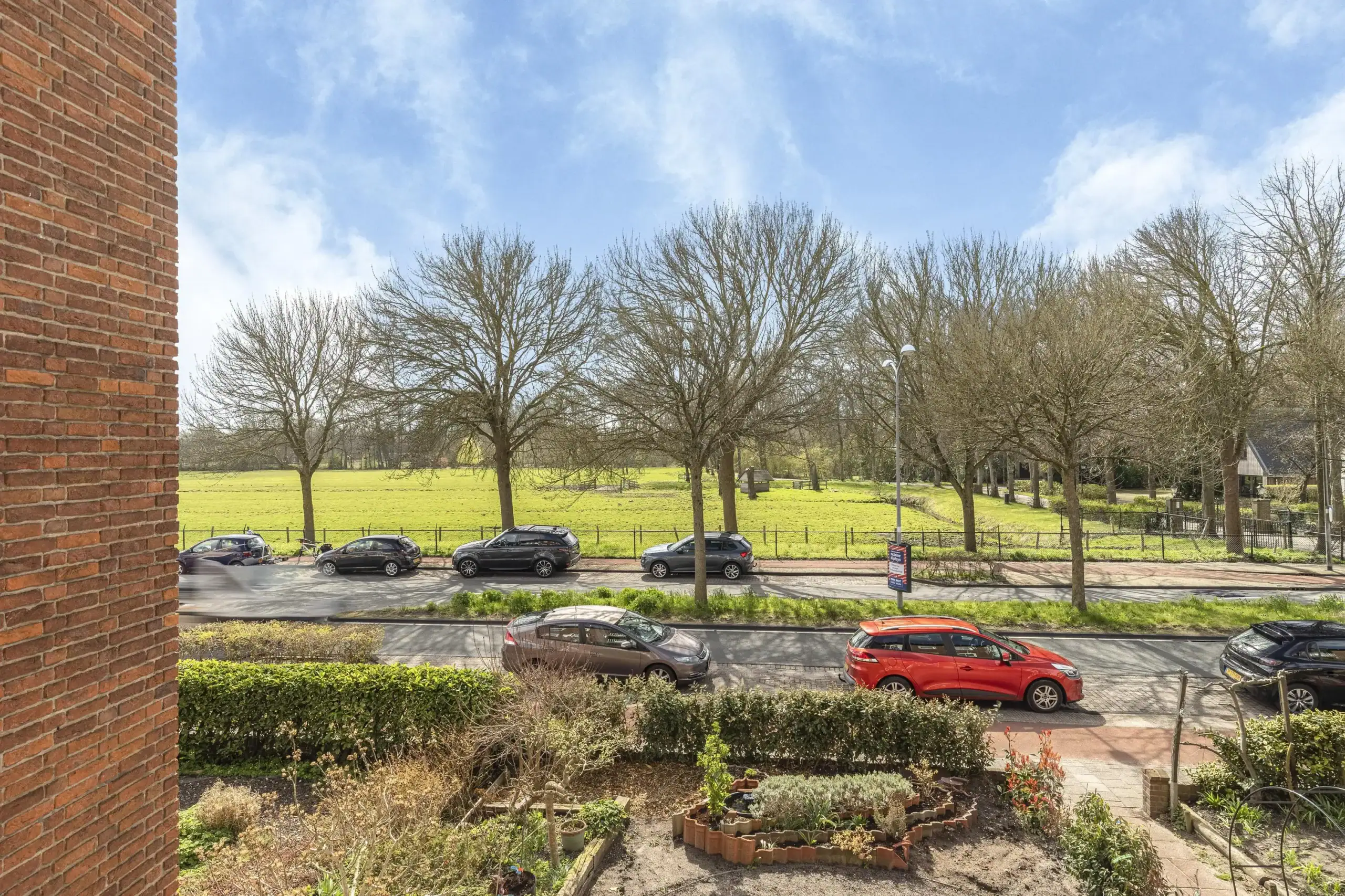 Dit lichte en ruime tweekamerappartement (voorheen vierkamer) biedt een heerlijk vrij uitzicht over de weilanden. De openslaande deuren brengen je vanuit de woonkamer naar het balkon op het zuidwesten. Dankzij de vele raampartijen geniet je de hele dag van een prachtige lichtinval. De keuken is voorzien van diverse inbouwapparatuur en biedt ruimte voor zowel wasmachine als droger. Aan de achterzijde bevindt zich het tweede balkon, over de volledige breedte van de woning en perfect voor een kop koffie in de ochtendzon. De slaapkamer heeft eveneens toegang tot dit balkon, wat zorgt voor extra comfort en licht. De badkamer is royaal opgezet en beschikt over een ruime inloopdouche, toilet met fontein en wastafel. Op de zolderverdieping vind je een eigen royale zolderberging/kamer met Velux dakraam, plus een gemeenschappelijke berging. Daarnaast is er een separate berging achter het gebouw. Vrij parkeren in de directe omgeving.