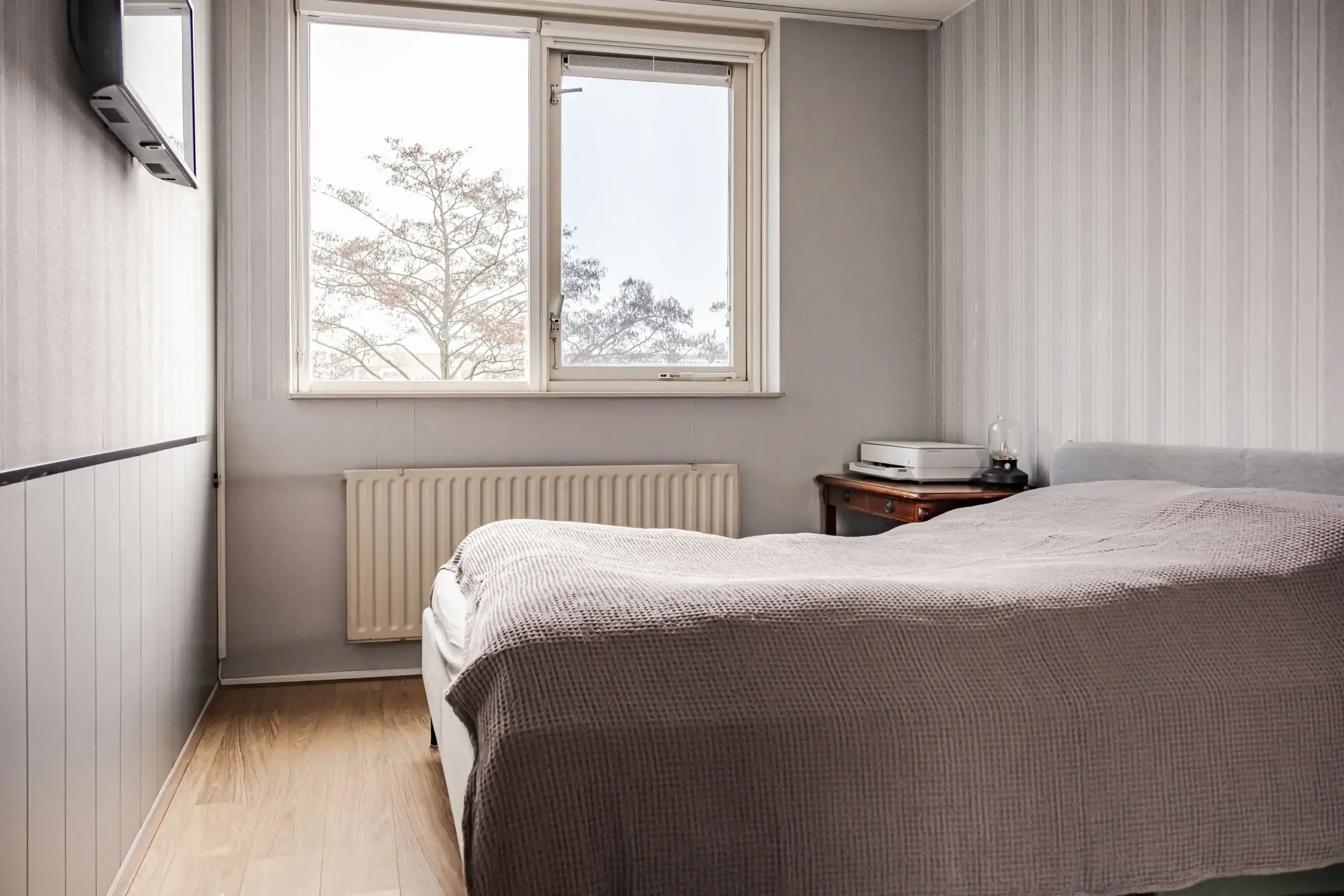 Ruim appartement met zonnig balkon. Dit fijne appartement bevindt zich op de derde en tevens bovenste verdieping van het complex, dus geen bovenburen! De royale woonkamer is in directe verbinding met de open keuken. Vanuit de woonkamer leidt een deur naar het ruime balkon op het oosten, waar je geniet van een vrij uitzicht: je zit hier heerlijk in het groen en kijkt op de vaart. Verder beschikt het appartement over drie slaapkamers en een ruime badkamer. De aparte berging bevindt zich op de begane grond.