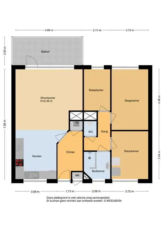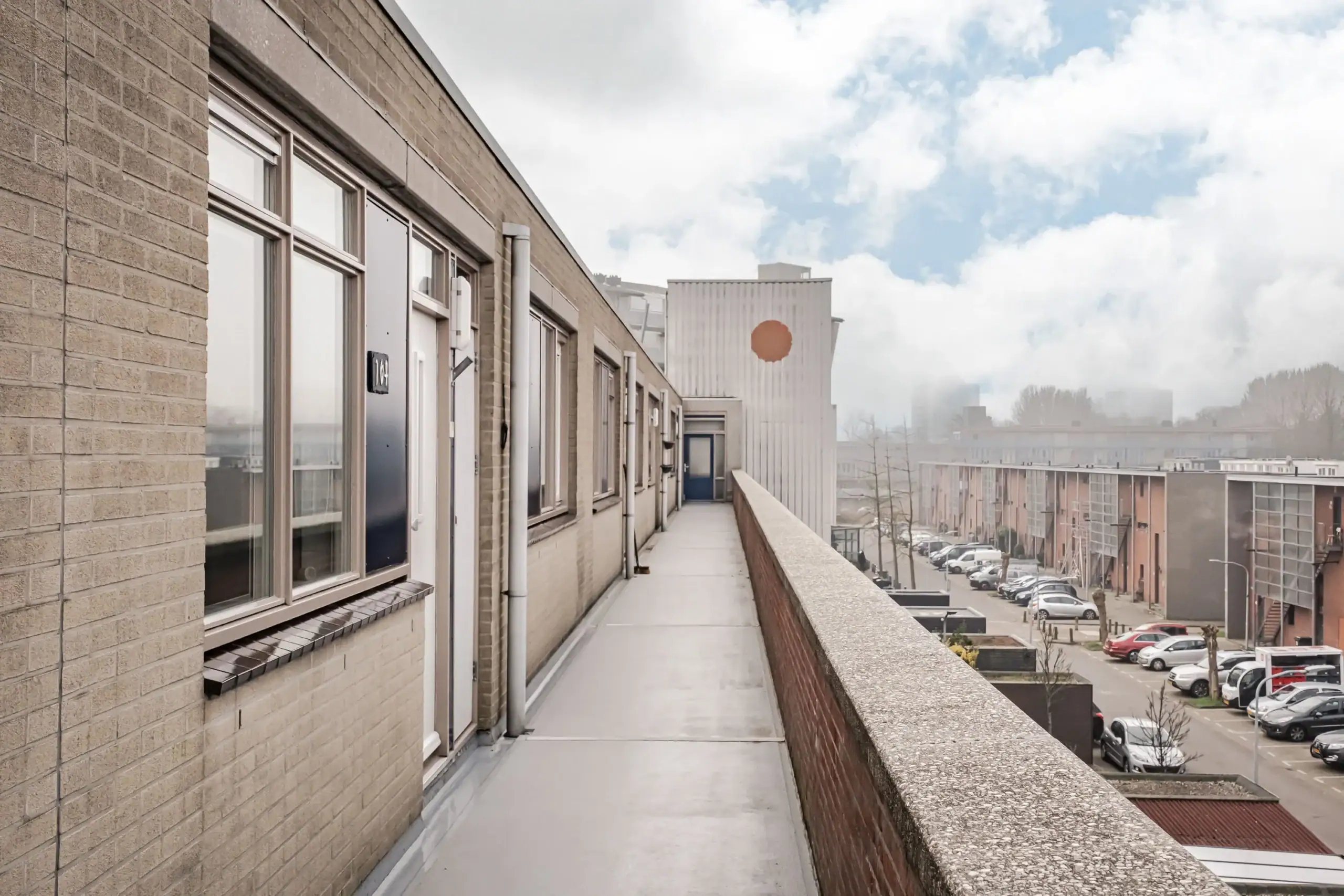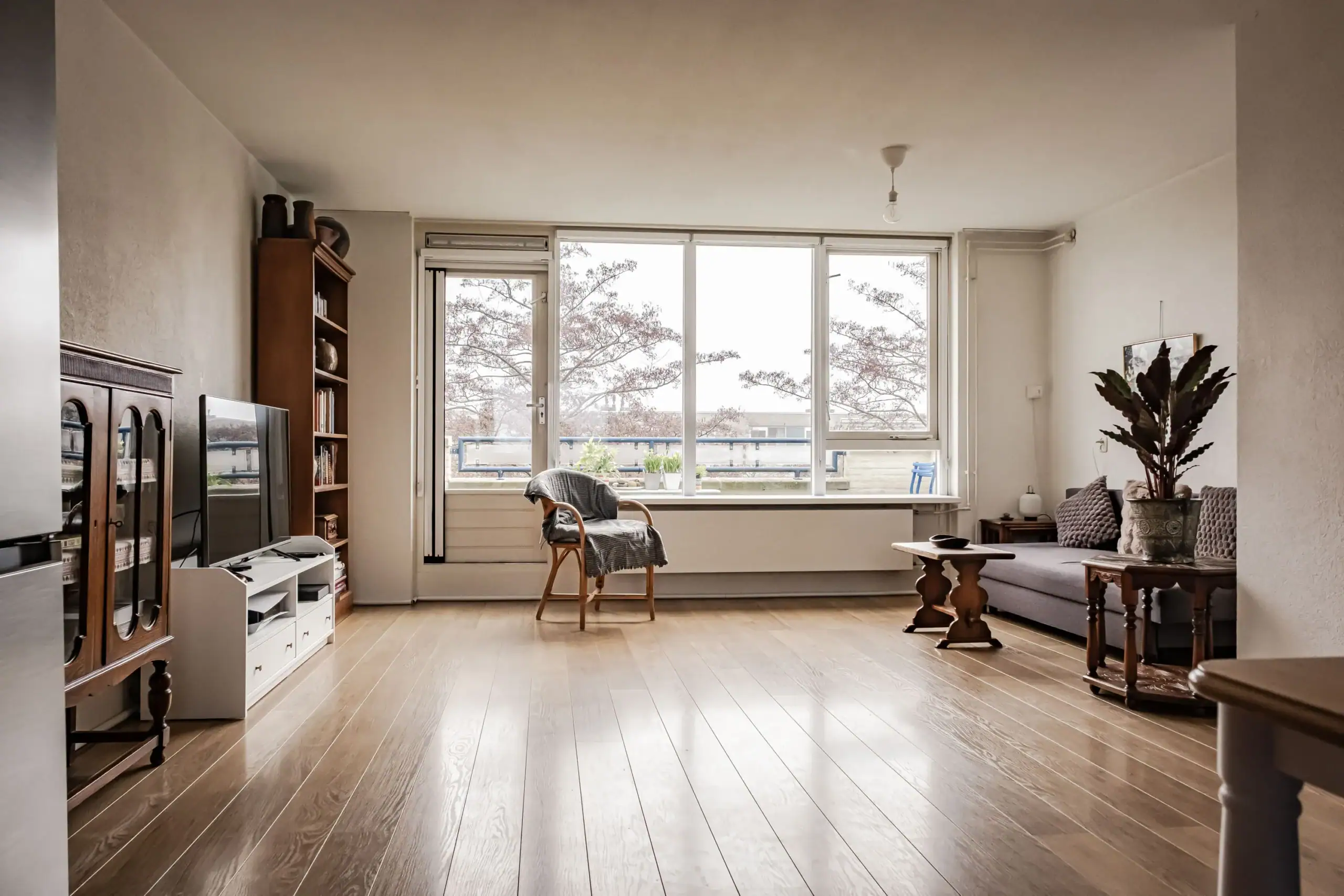 Entree. Hal met intercom en toilet. Technische ruimte met CV-installatie, luchtbehandelingssysteem, opstelling voor de wasmachine en bergruimte. Royale, lichte woonkamer met toegang naar balkon op het oosten. Open keuken voorzien van hardstenen aanrechtblad, inductiekookplaat, afzuigkap, RVS spoelbak, oven, magnetron en vaatwasser. Fijne badkamer voorzien van inloopdouche, wastafelmeubel, handdoekradiator en inbouwspots. Slaapkamer aan de achterzijde. Twee slaapkamers aan de voorzijde.