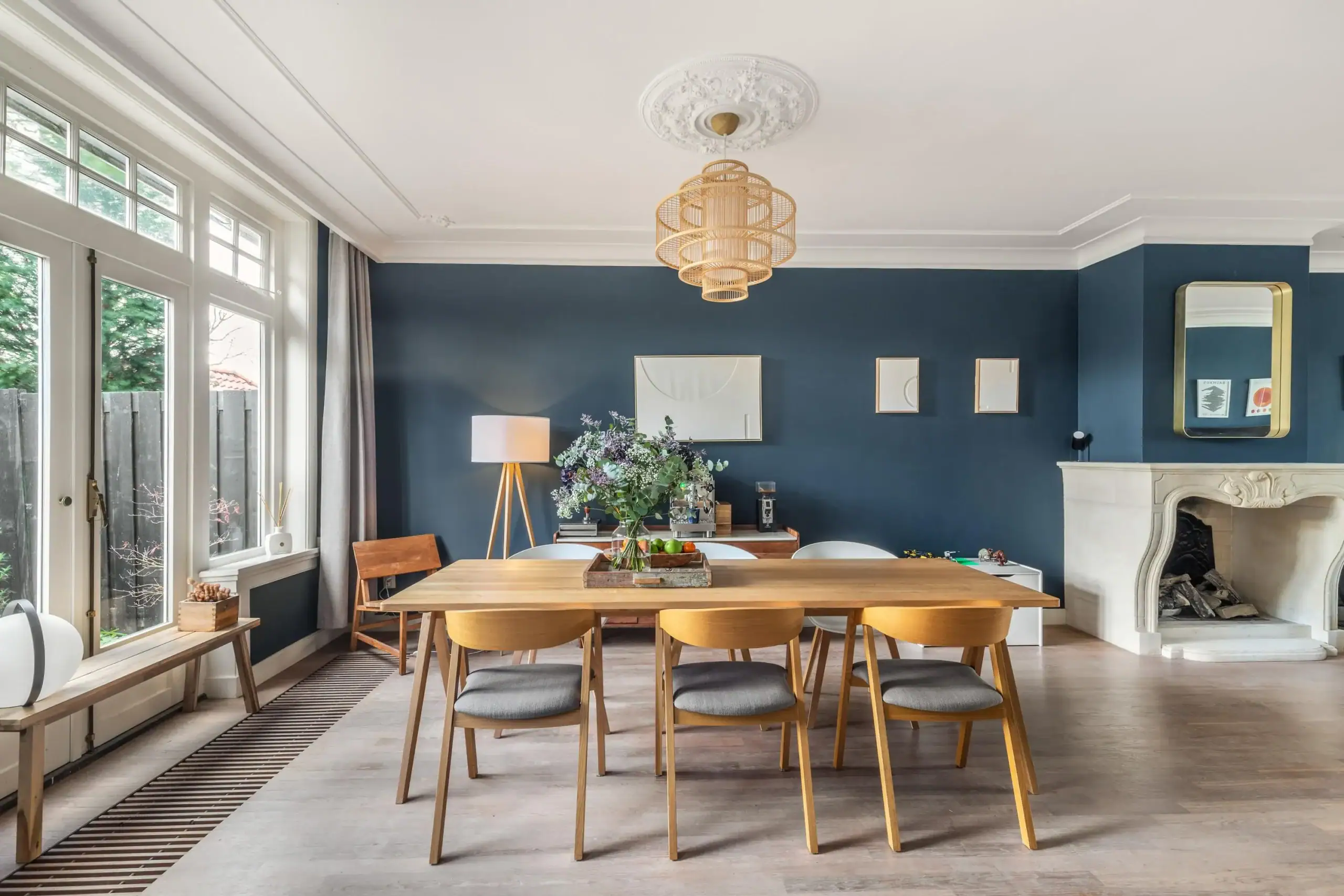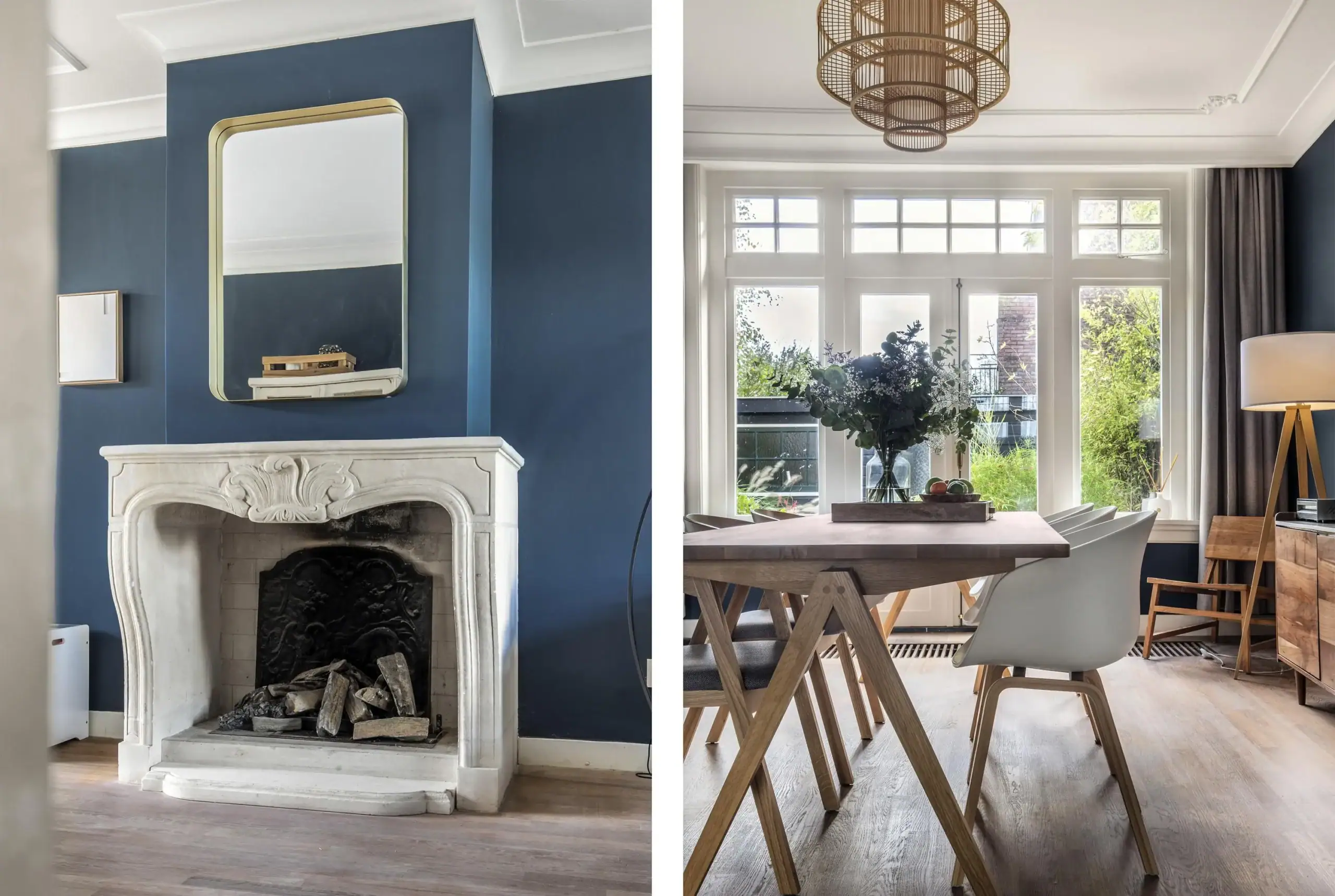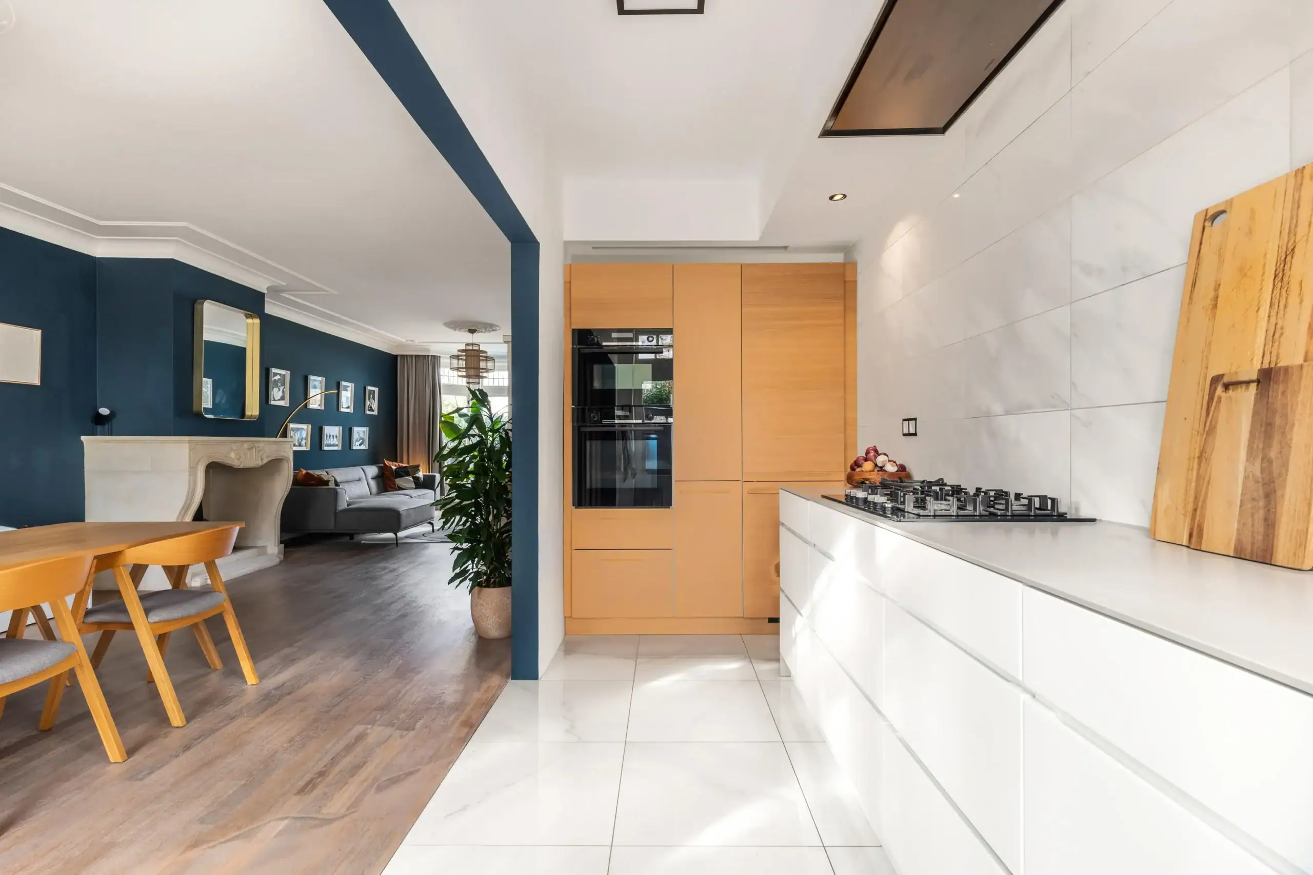 Stap binnen in de hal met een granito vloer, die je meeneemt naar de woonkamer, waar de houten vloer en de imposante gashaard direct zorgen voor een sfeervolle setting. Unieke accenten, zoals glas-in-loodramen en prachtige plafondornamenten, geven de ruimte extra allure. De open keuken vormt het hart van het huis en biedt volop mogelijkheden om culinair te genieten. De openslaande deuren leiden je naar een fijne tuin op het zuidoosten; ideaal voor ontspanning en zomerse BBQ’s. Op de eerste verdieping is er een riante badkamer met een inloopdouche.