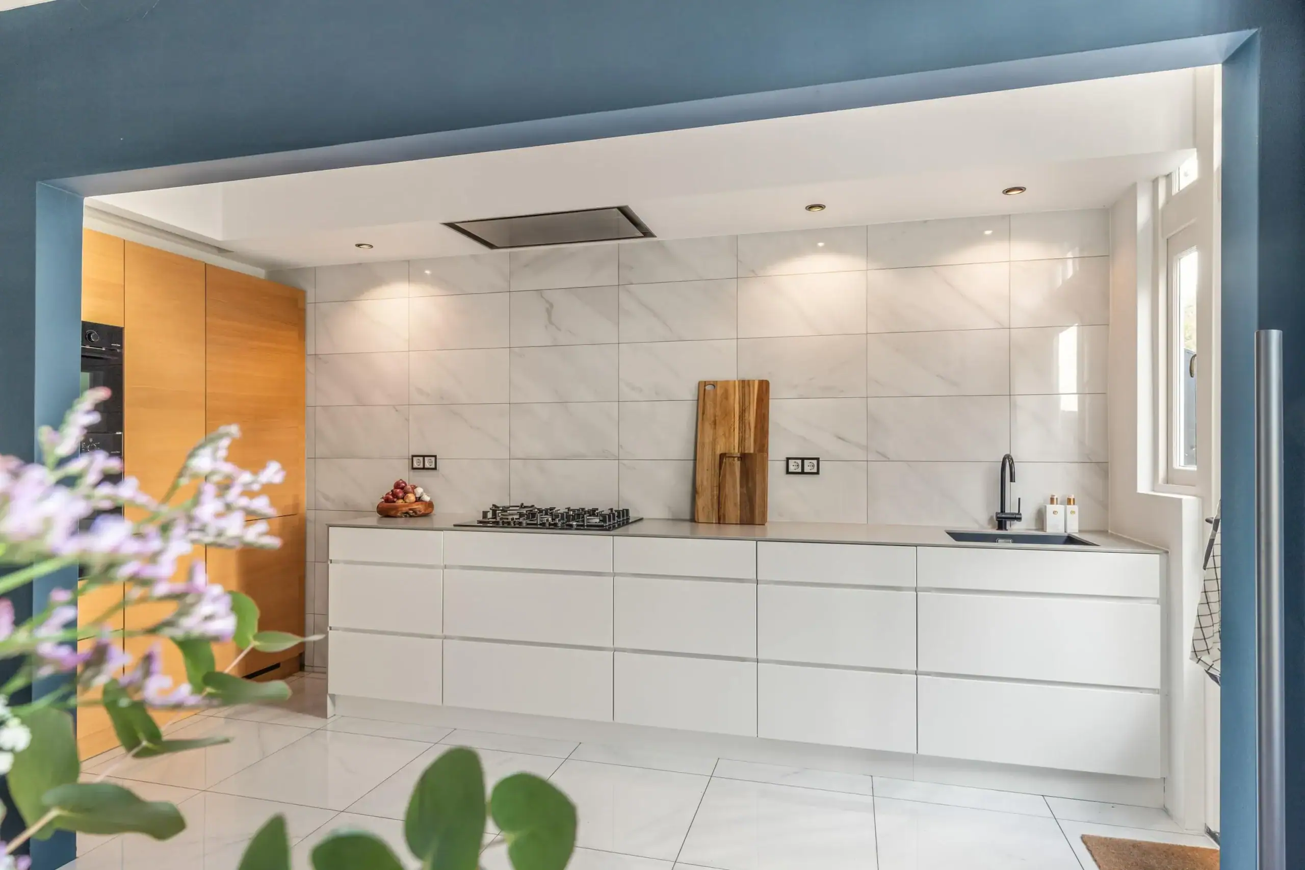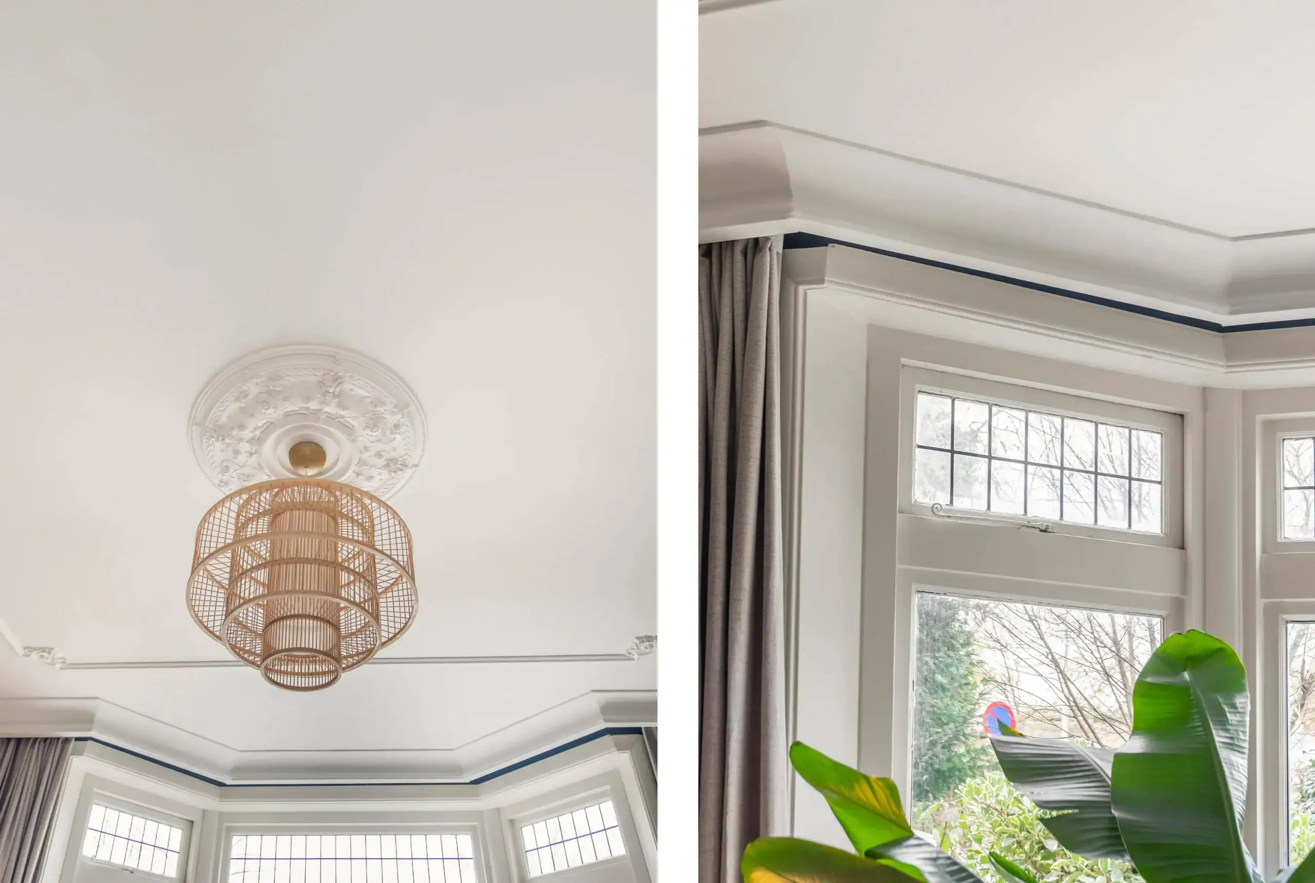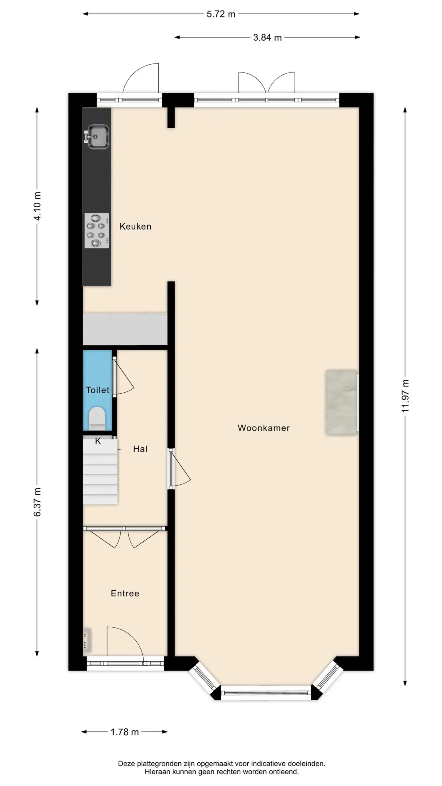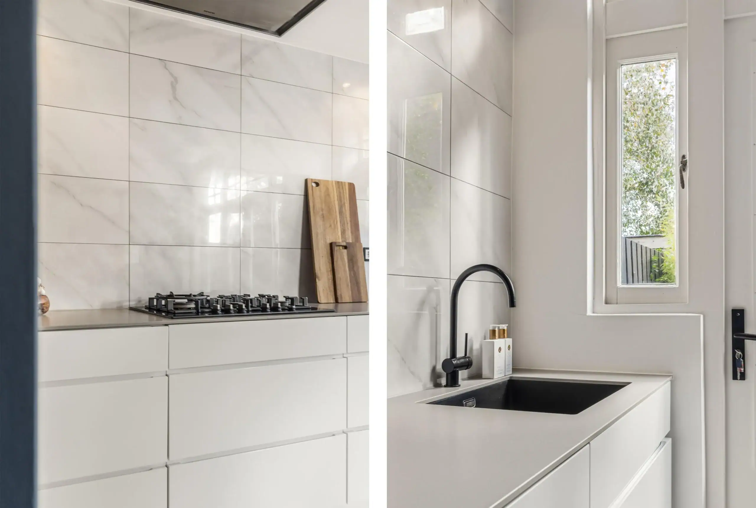 Stap binnen in de hal met een granito vloer, die je meeneemt naar de woonkamer, waar de houten vloer en de imposante gashaard direct zorgen voor een sfeervolle setting. Unieke accenten, zoals glas-in-loodramen en prachtige plafondornamenten, geven de ruimte extra allure. De open keuken vormt het hart van het huis en biedt volop mogelijkheden om culinair te genieten. De openslaande deuren leiden je naar een fijne tuin op het zuidoosten; ideaal voor ontspanning en zomerse BBQ’s. Op de eerste verdieping is er een riante badkamer met een inloopdouche.