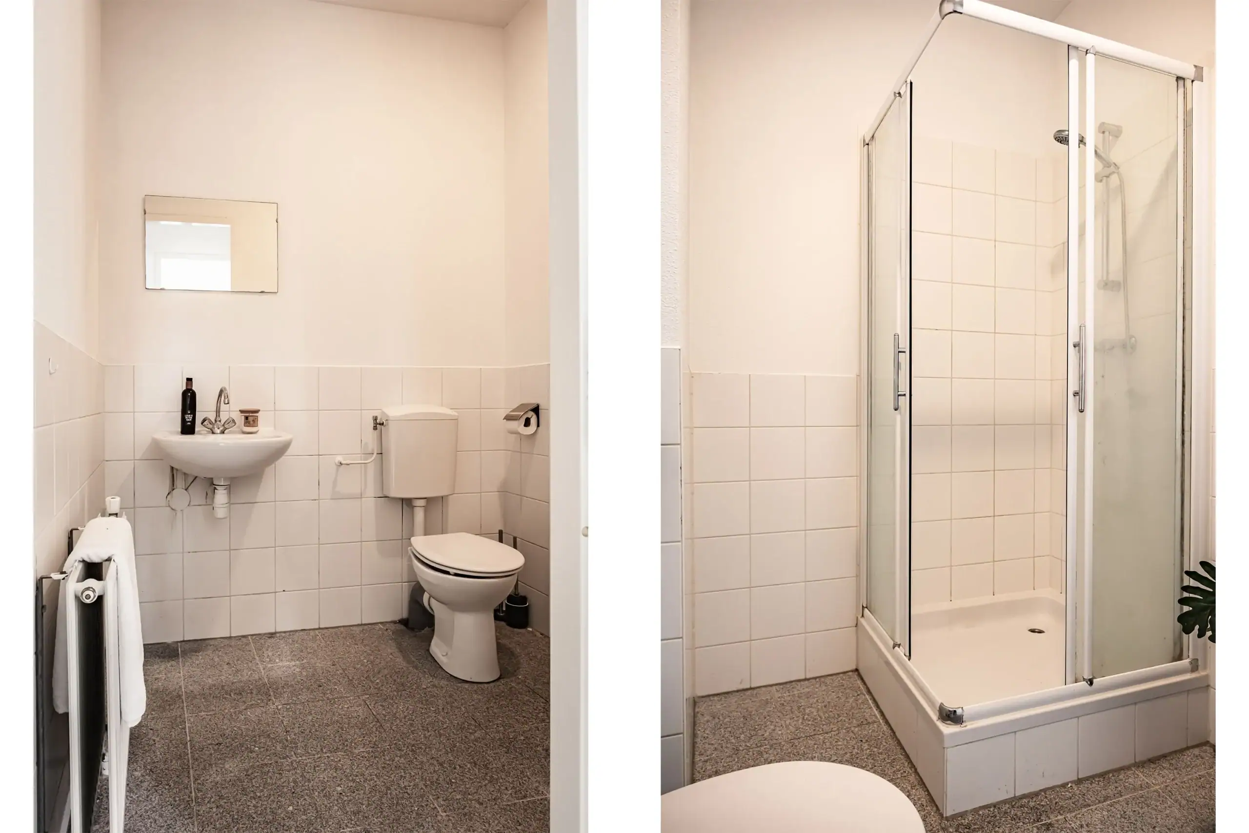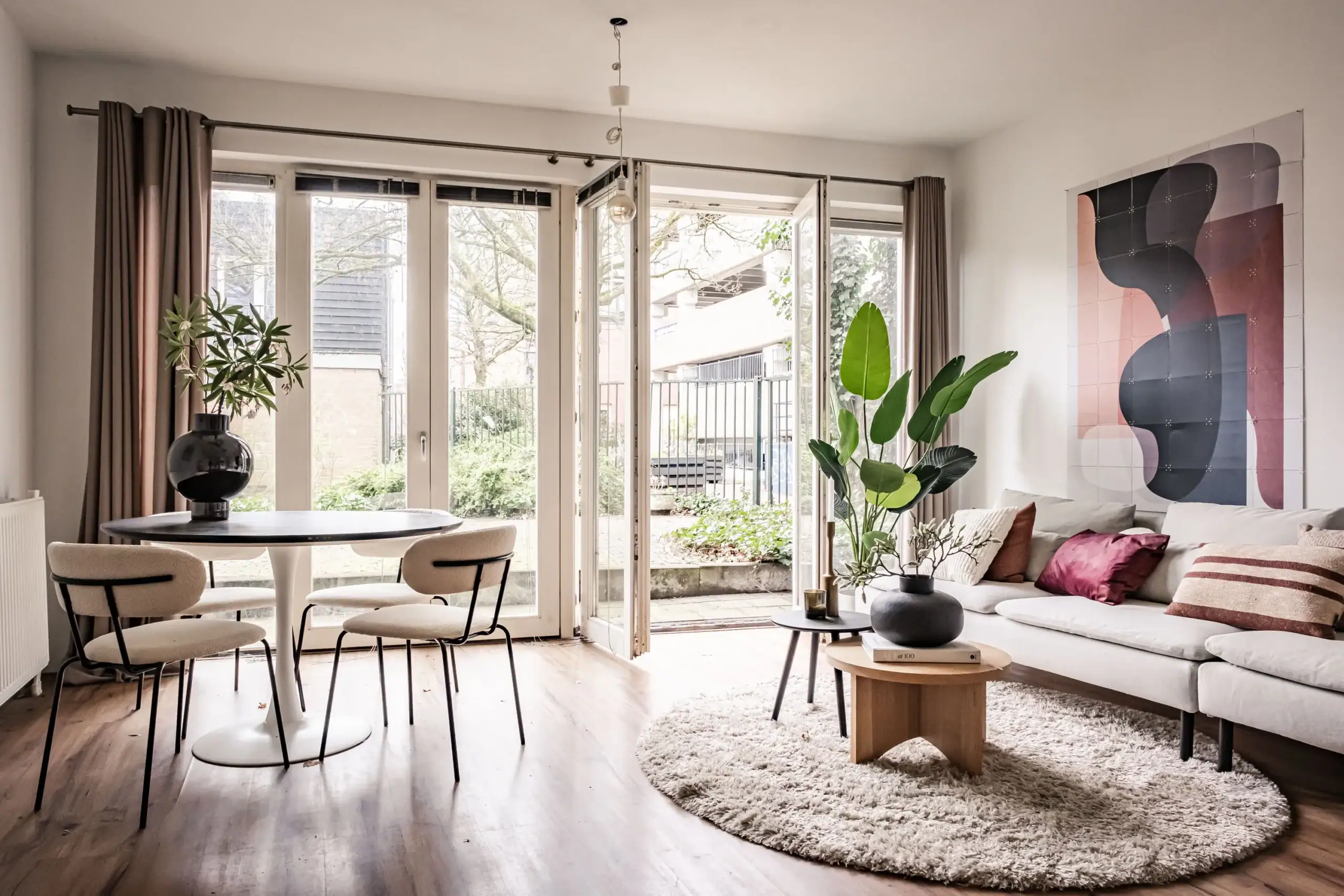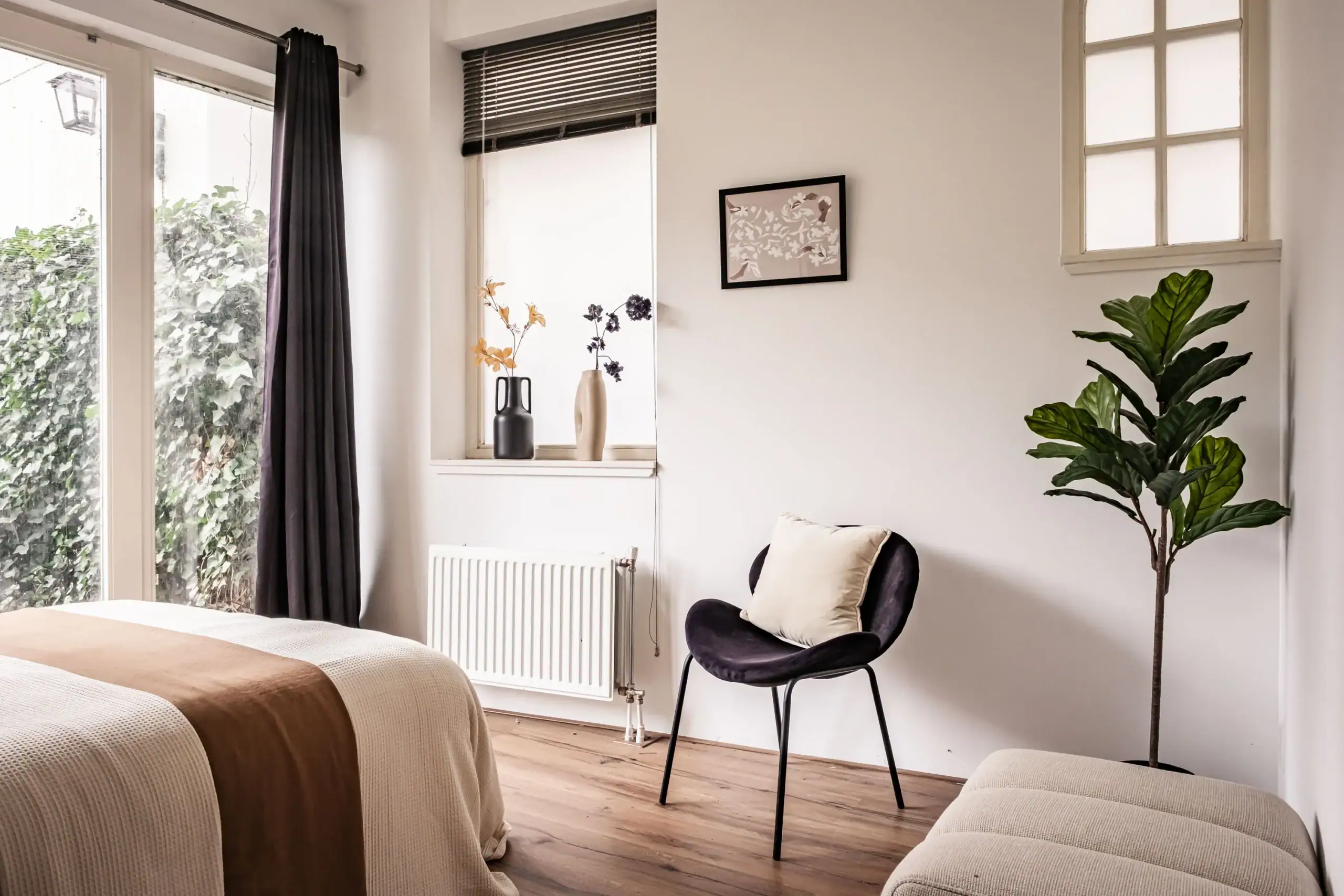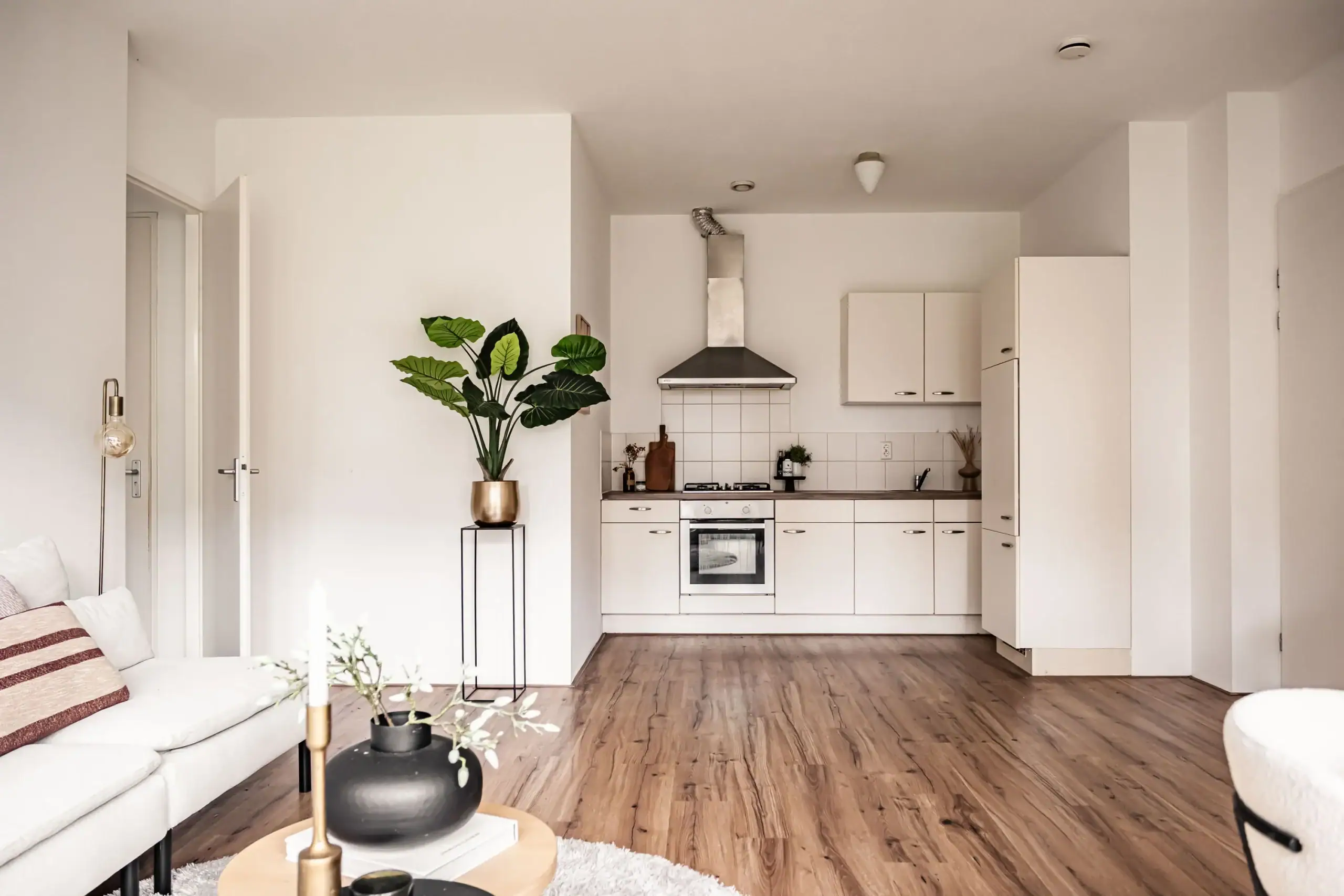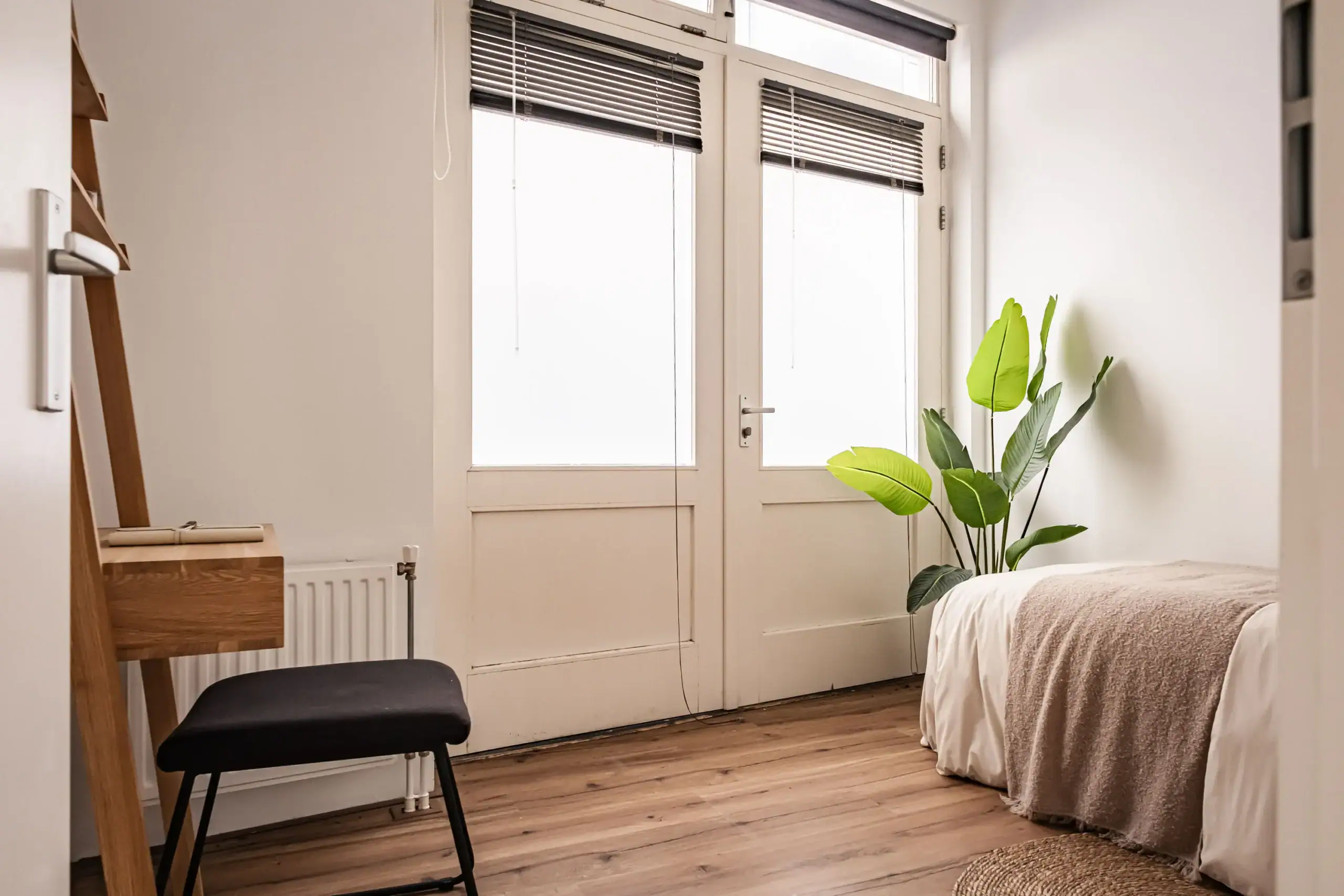 Wat een fijne sfeer! Je komt binnen via de ruime woonkamer, die is voorzien van een glazen pui met twee openslaande deuren naar de gezamenlijke tuin. Dankzij de glazen pui is er veel lichtinval, waardoor de ruimte heel ruimtelijk aanvoelt. Via de openslaande deuren betreed je de gezamenlijke binnentuin met meerdere gezellige zitjes, waar je heerlijk kunt genieten van de zon of gezellig borrelen met familie of vrienden. De open keuken is uitgerust met een 4-pits gasstel, afzuigkap, oven en koelkast. Verder zijn er twee slaapkamers met openslaande deuren en een ruime badkamer met wastafel, toilet en douche. Naast de voordeur bevindt zich een berging met de opstelling van de cv-ketel. Kortom, een compleet appartement op een supercentrale plek!