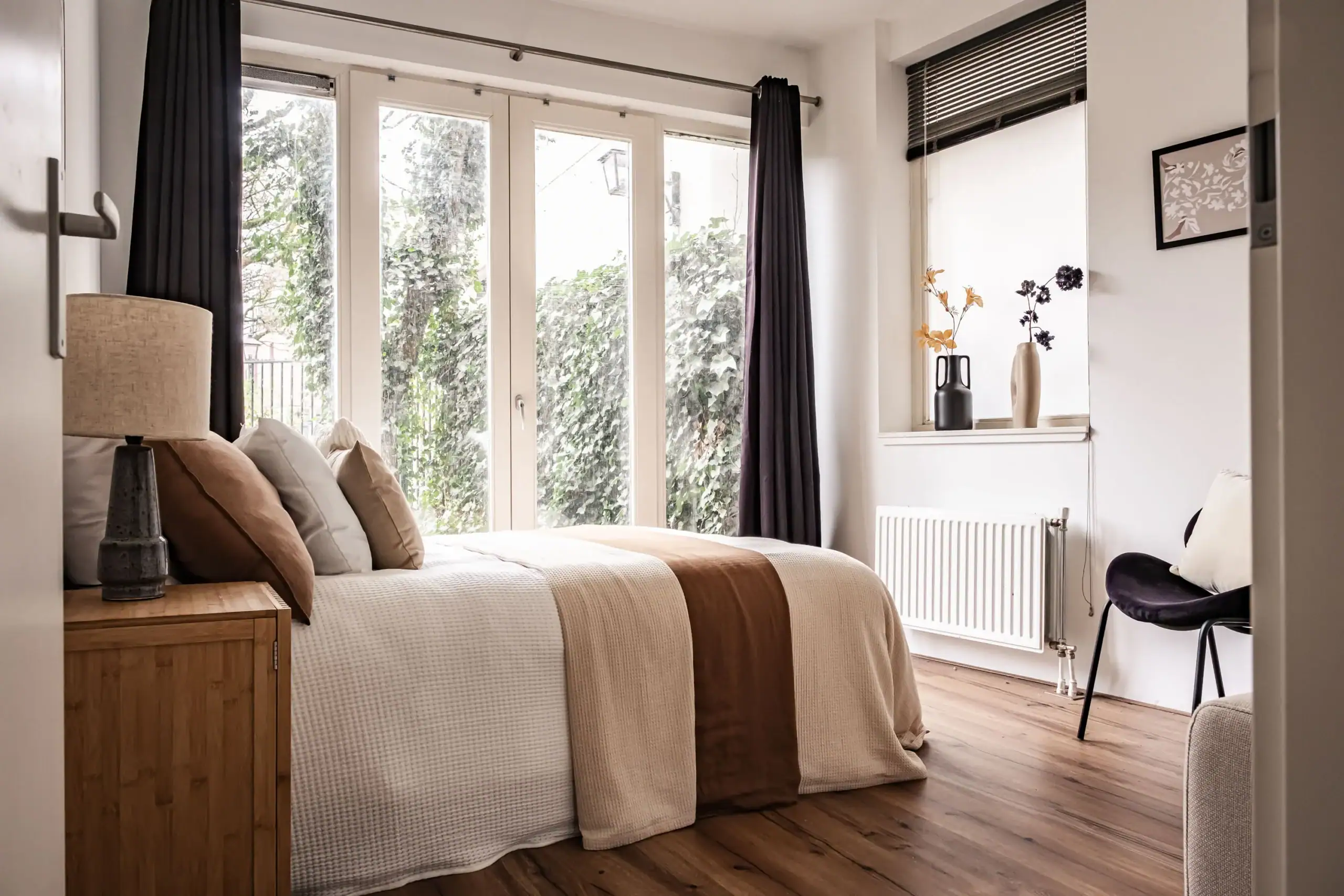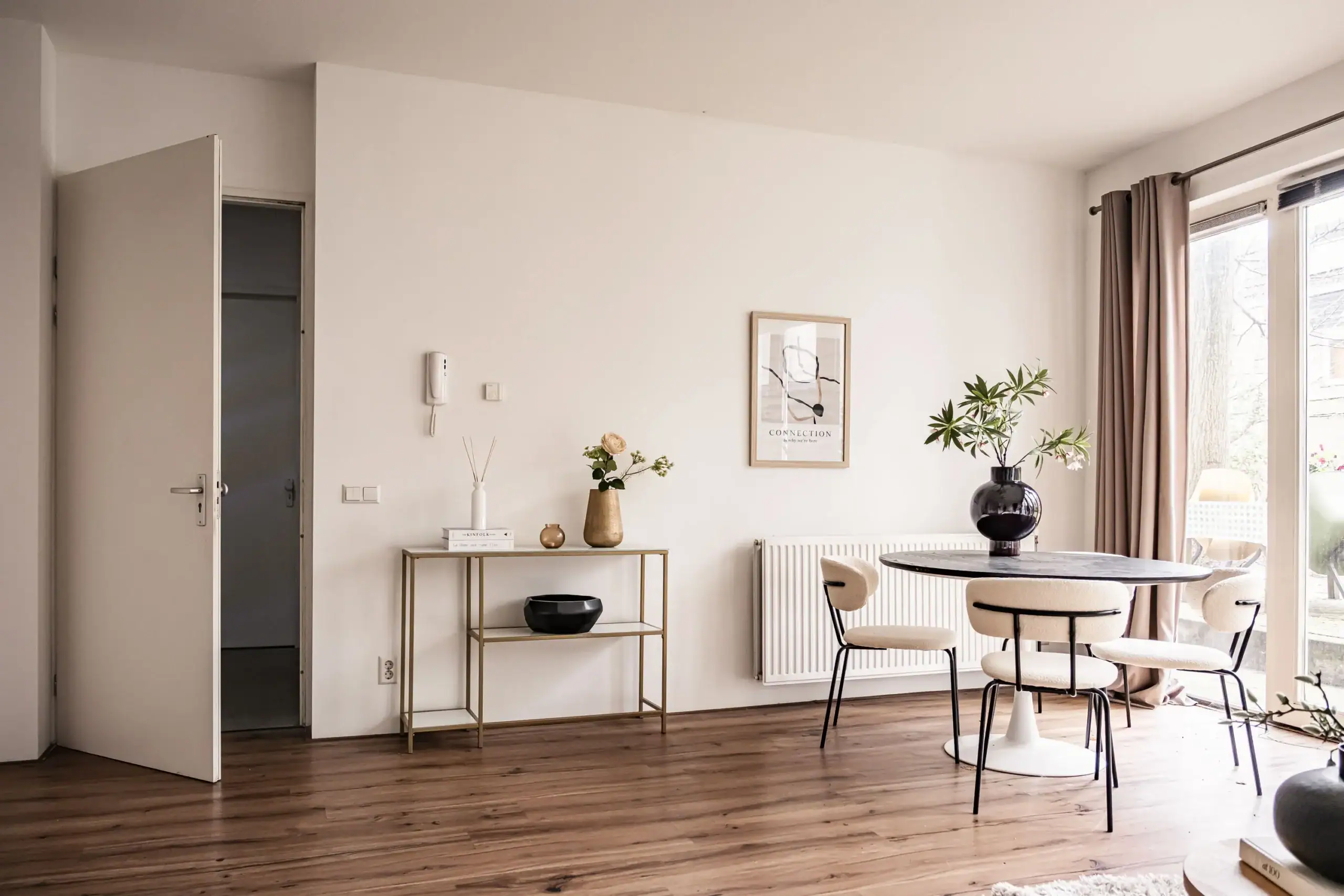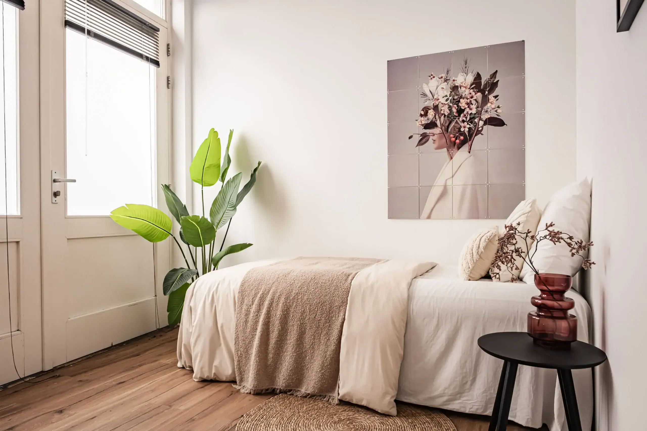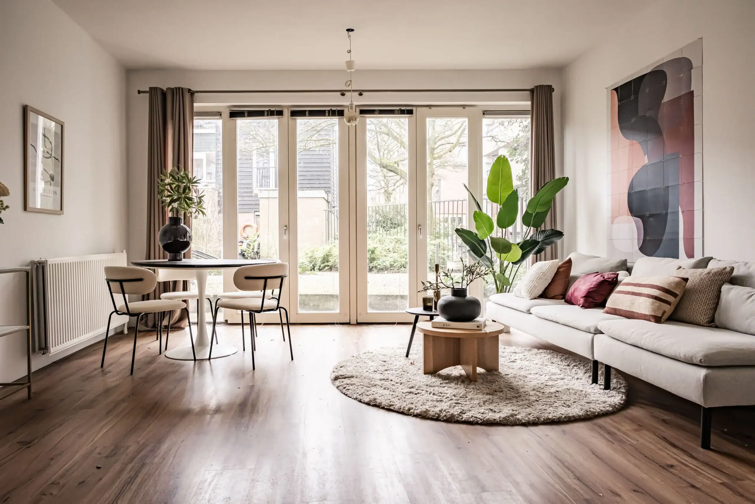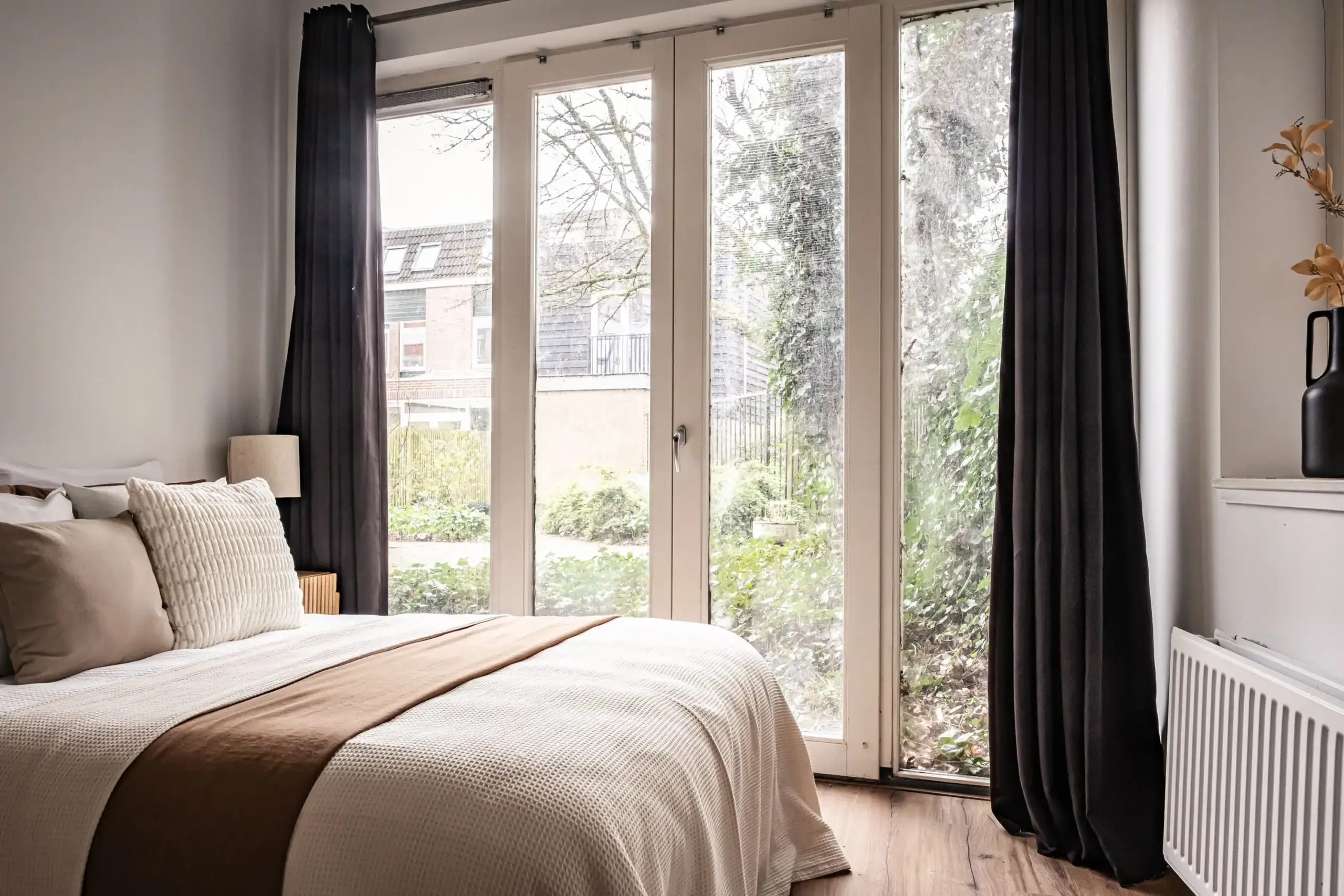 Wat een fijne sfeer! Je komt binnen via de ruime woonkamer, die is voorzien van een glazen pui met twee openslaande deuren naar de gezamenlijke tuin. Dankzij de glazen pui is er veel lichtinval, waardoor de ruimte heel ruimtelijk aanvoelt. Via de openslaande deuren betreed je de gezamenlijke binnentuin met meerdere gezellige zitjes, waar je heerlijk kunt genieten van de zon of gezellig borrelen met familie of vrienden. De open keuken is uitgerust met een 4-pits gasstel, afzuigkap, oven en koelkast. Verder zijn er twee slaapkamers met openslaande deuren en een ruime badkamer met wastafel, toilet en douche. Naast de voordeur bevindt zich een berging met de opstelling van de cv-ketel. Kortom, een compleet appartement op een supercentrale plek!