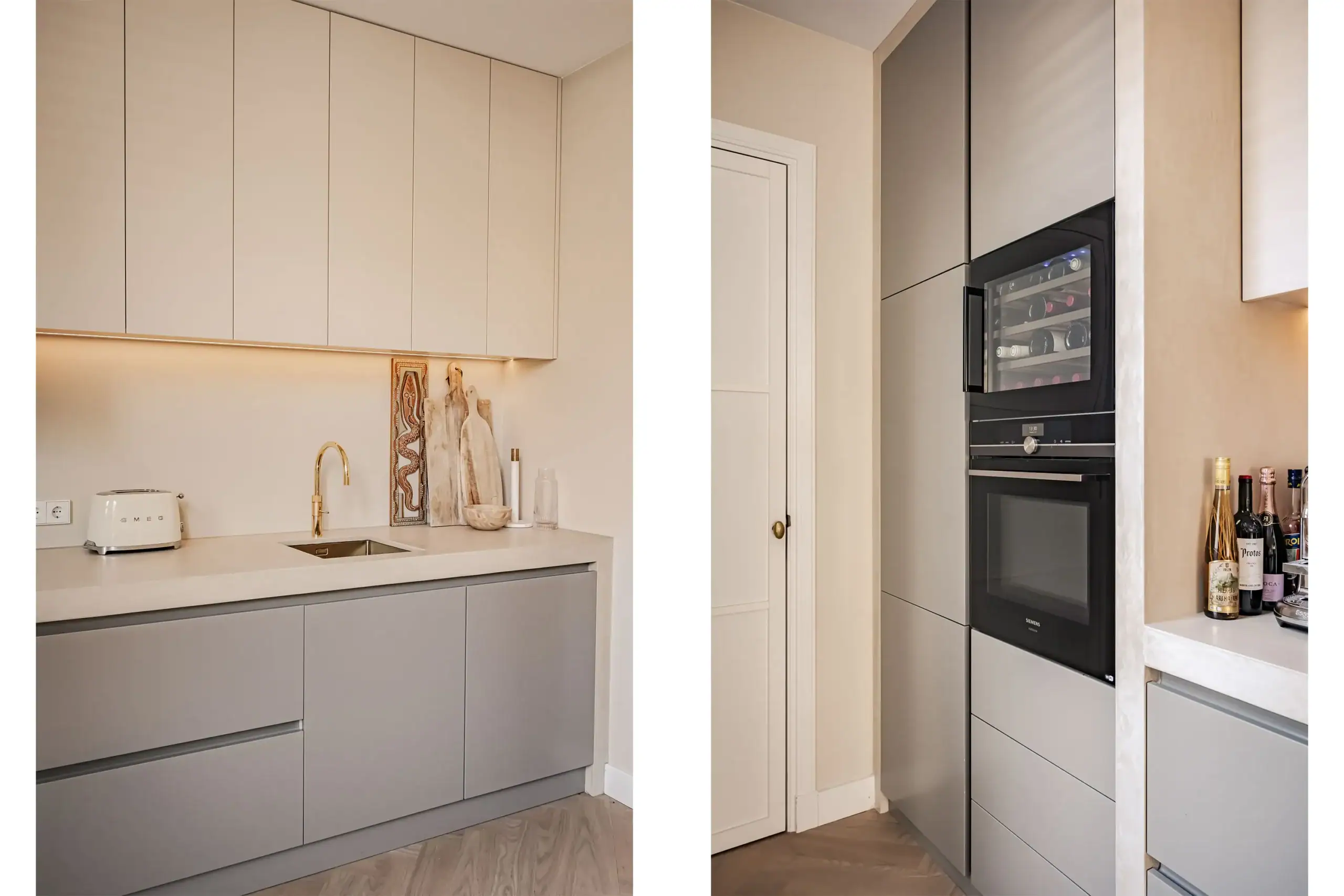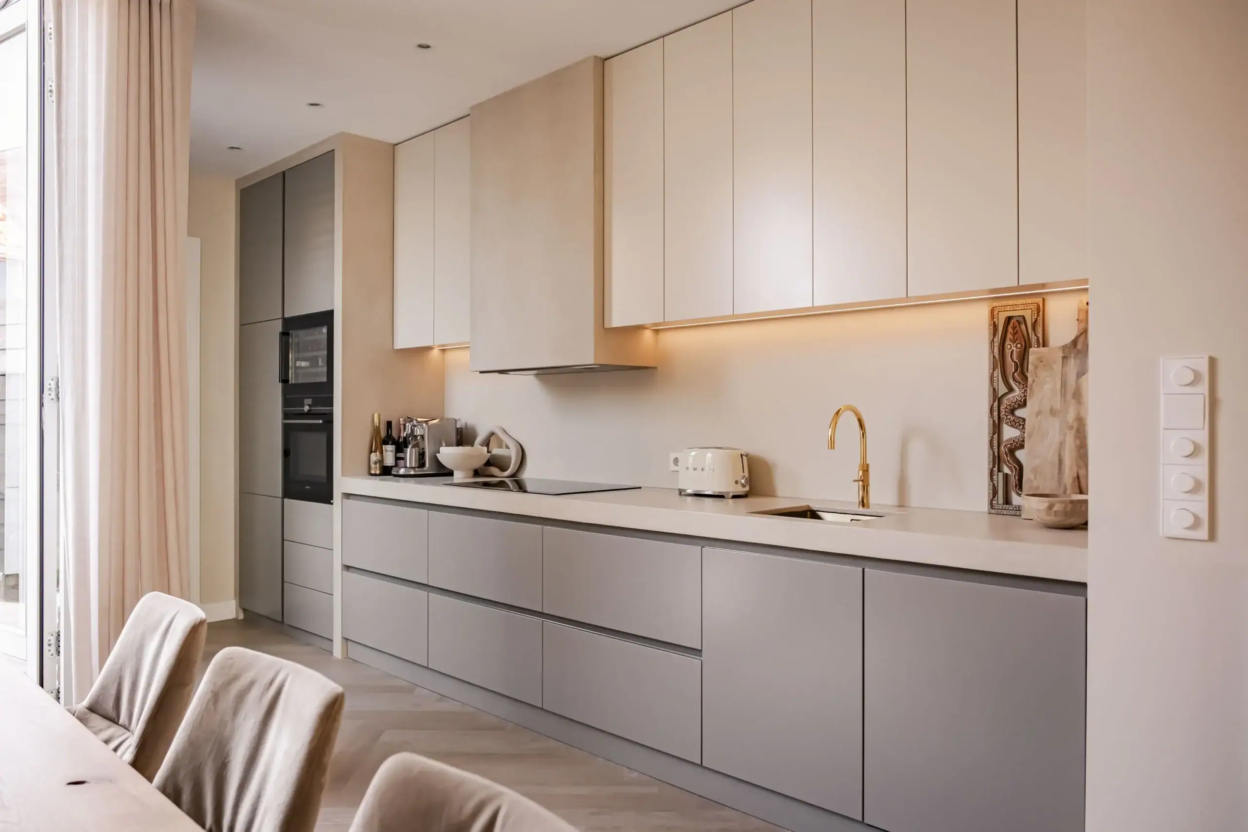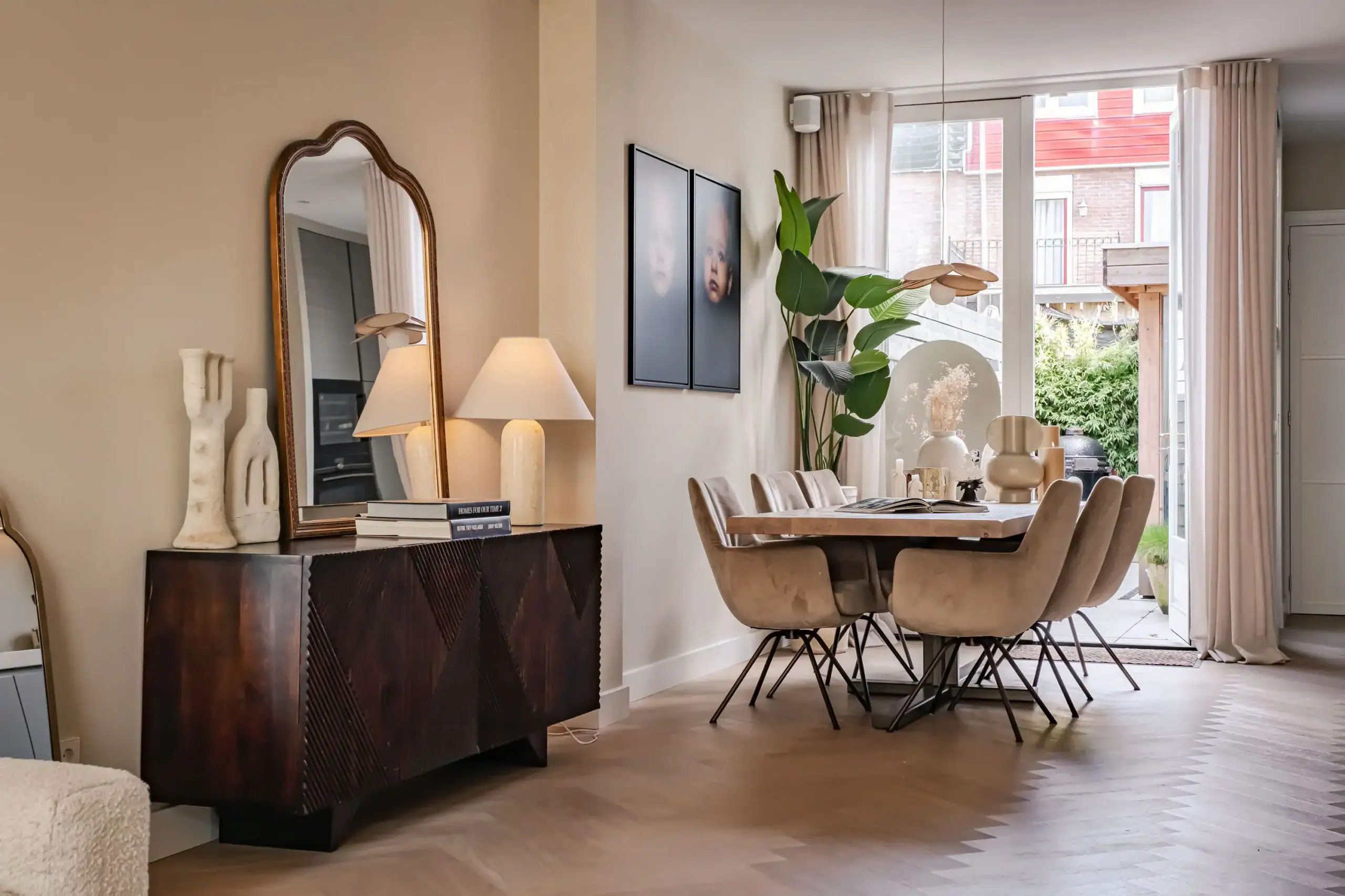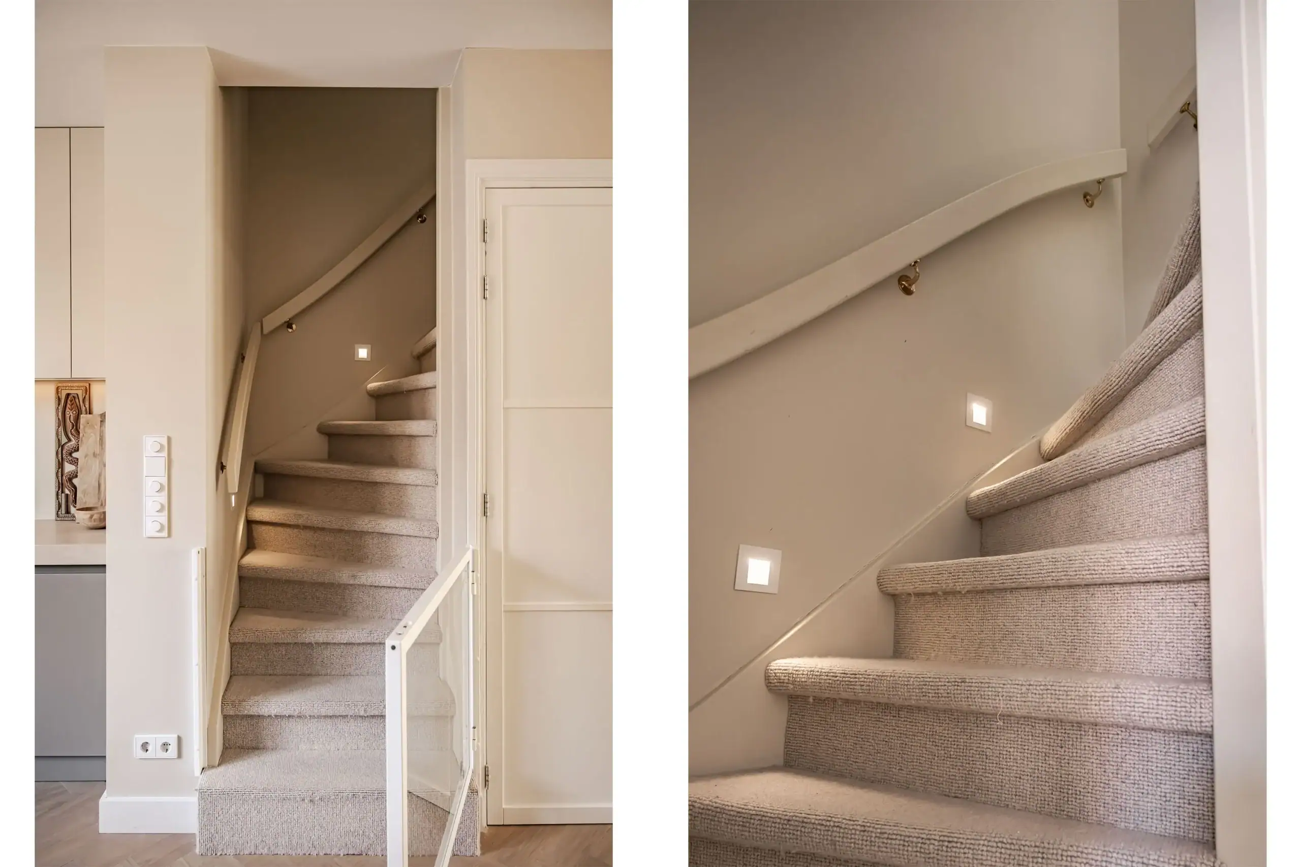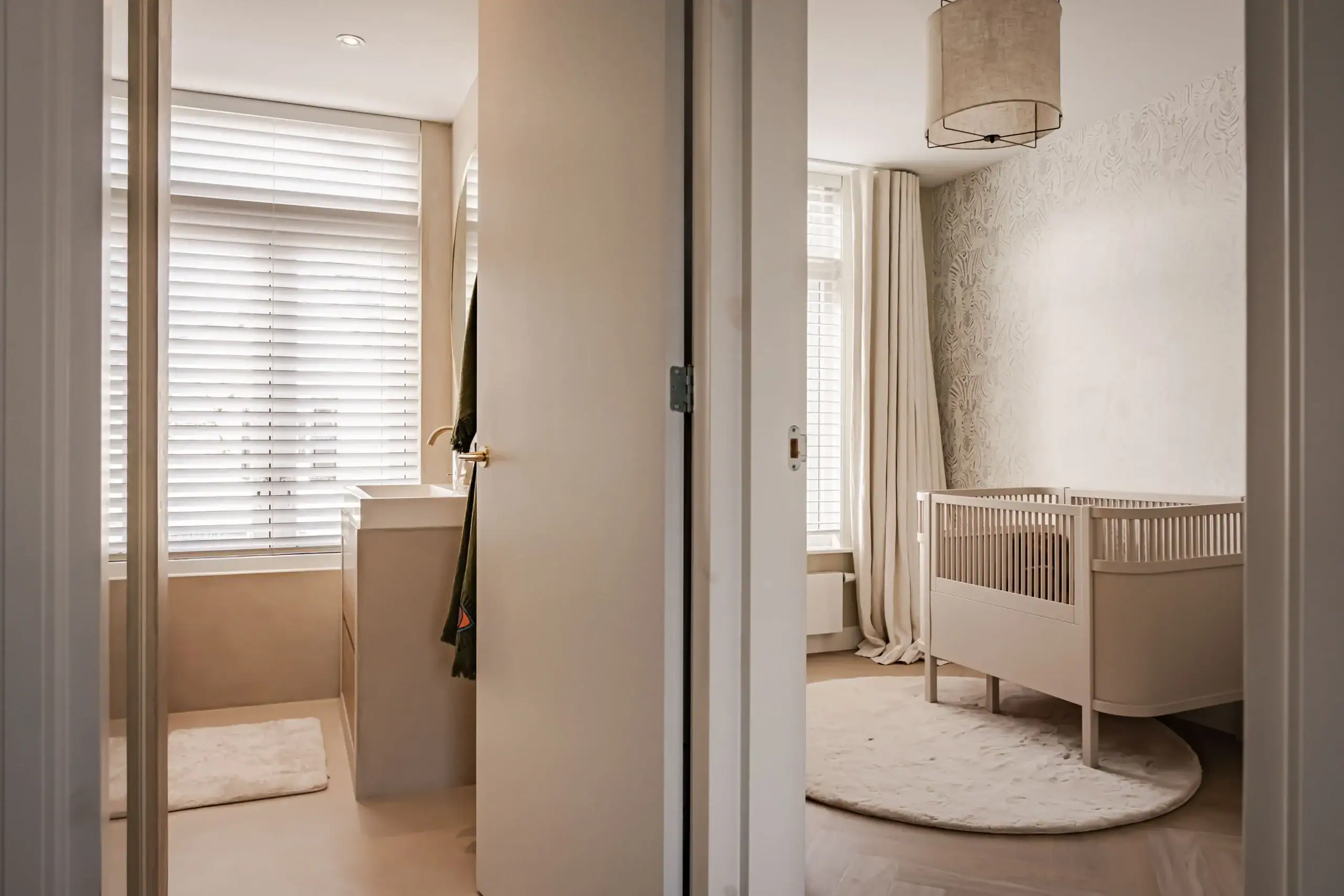 Deze fijne eengezinswoning biedt genoeg ruimte als echt familiehuis, maar de extra kamers zijn natuurlijk ook heerlijk als logeerkamer, sportruimte of werkruimte. Bij de grootschalige verbouwing in 2022 zijn kosten noch moeite gespaard om van deze klassieke woning van voor 1900 en modern thuis te maken. Overal is aan gedacht, in afwerking en stijl maar zeker ook in de indeling. De basisafwerking is strak, met visgraat pvc vloeren op alle verdiepingen, gestucte muren en ingebouwde spots. Dit is aangevuld met prachtige details zoals goudkleurige armaturen en deurbeslag en de luxe afwerking van de keuken en badkamer met minerale microcoating (Mortex). Er is optimaal gebruik gemaakt van de ruimte door onder andere de trap te verplaatsen alsmede het toilet op de begane grond en door het creëren van de handige vaste kast op de overloop met veel bergruimte en de wasmachine- en droger aansluiting. Door de gehele woning is gebruik gemaakt van moderne en stijlvolle beige tinten; een bijzonder fraaie combinatie met de klassieke kenmerken als het glas in lood en de authentieke voordeur met gietijzeren tralierooster.