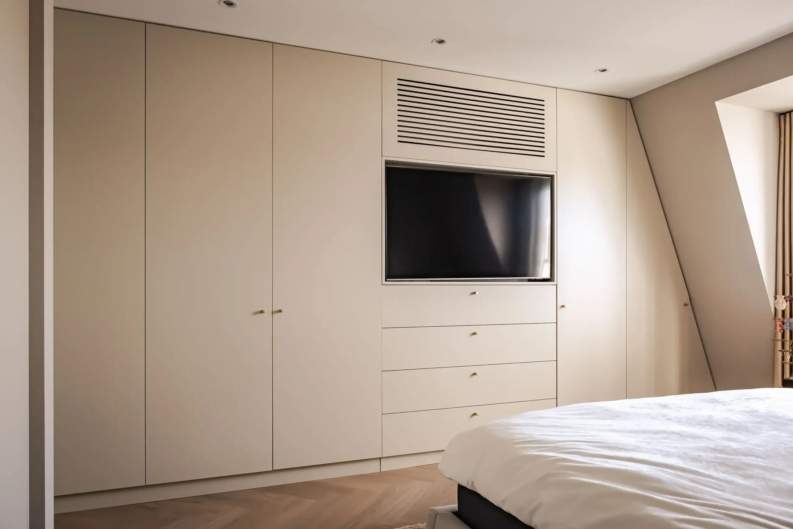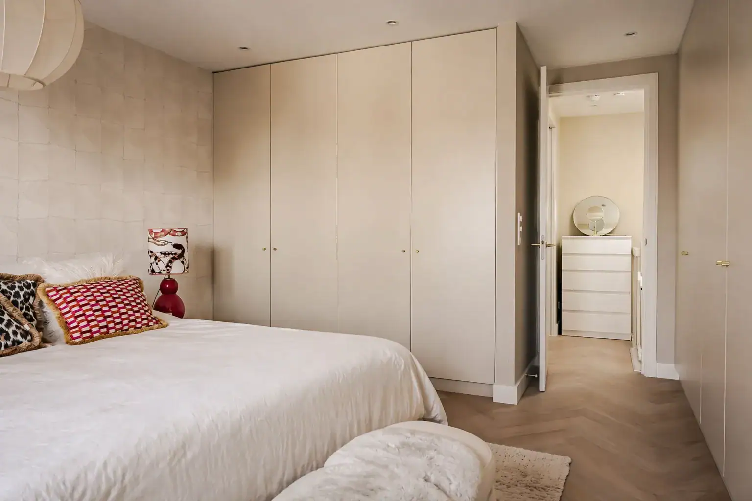 Overloop met daklicht. Ouderslaapkamer met twee vaste kastenwanden, waarvan 1 met ingebouwd tv-meubel, Frans balkon aan de voorzijde. Tweede badkamer voorzien van wastafelmeubel, inloopdouche met regendouche, verwarmde spiegel en toilet.