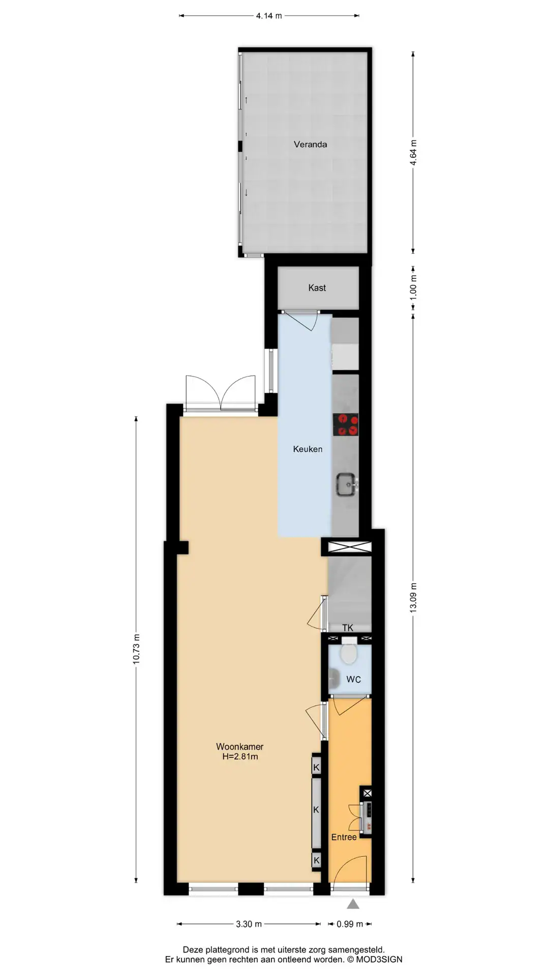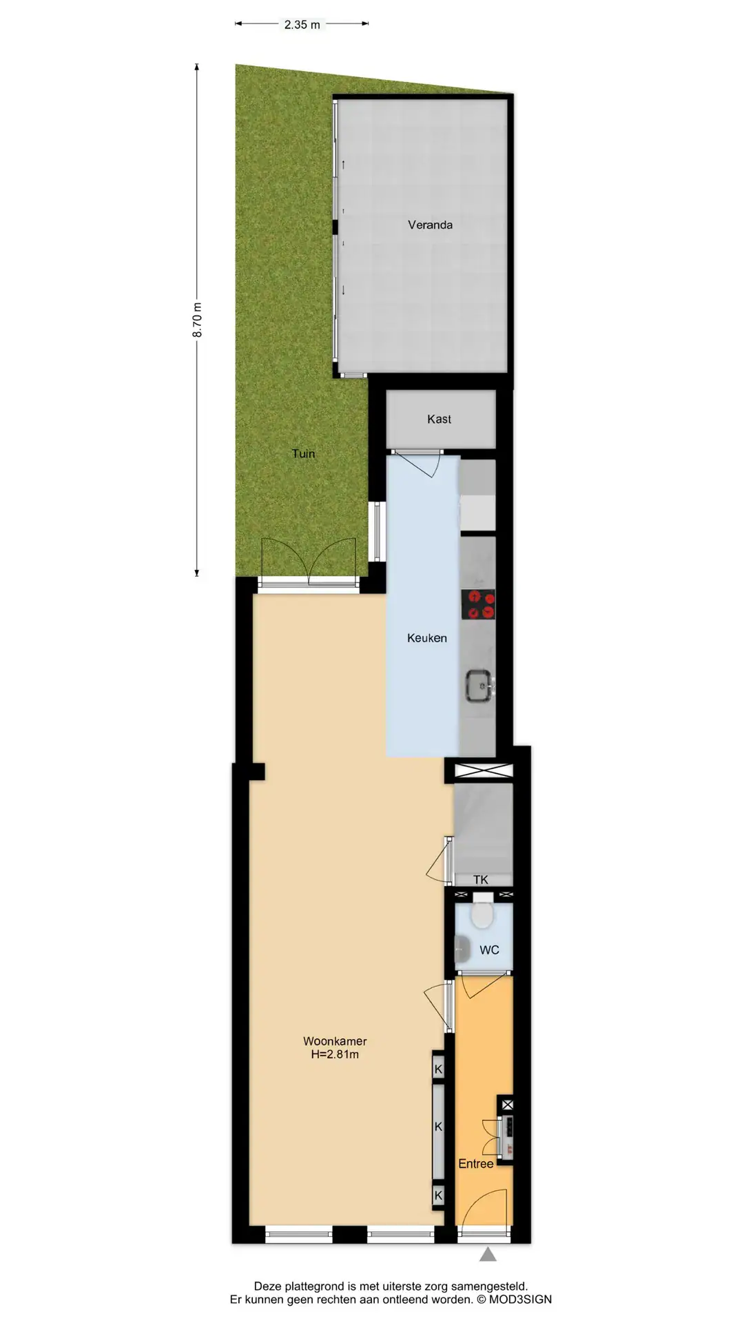 Entree. Gang met meterkast. Toilet met fontein. Woonkamer met grote ramen met glas-in-lood in de bovenlichten, een vast tv-meubel en een diepe vaste kast onder de trap. Eetgedeelte aan de achterzijde met openslaande deuren naar de tuin. Grote open keuken met Mortex afgewerkt aanrechtblad. Veel werk- en kastruimte en verder voorzien van een vaatwasser, spoelbak met Quooker, 5-fasen inductiekookplaat, afzuigkap, oven/magnetron, koelkast, vriezer en wijnkoelkast. Grote bergkast. Achtertuin met tuinverlichting, buitenkraan en luxe veranda, volledig afsluitbaar door glazen schuifpui.