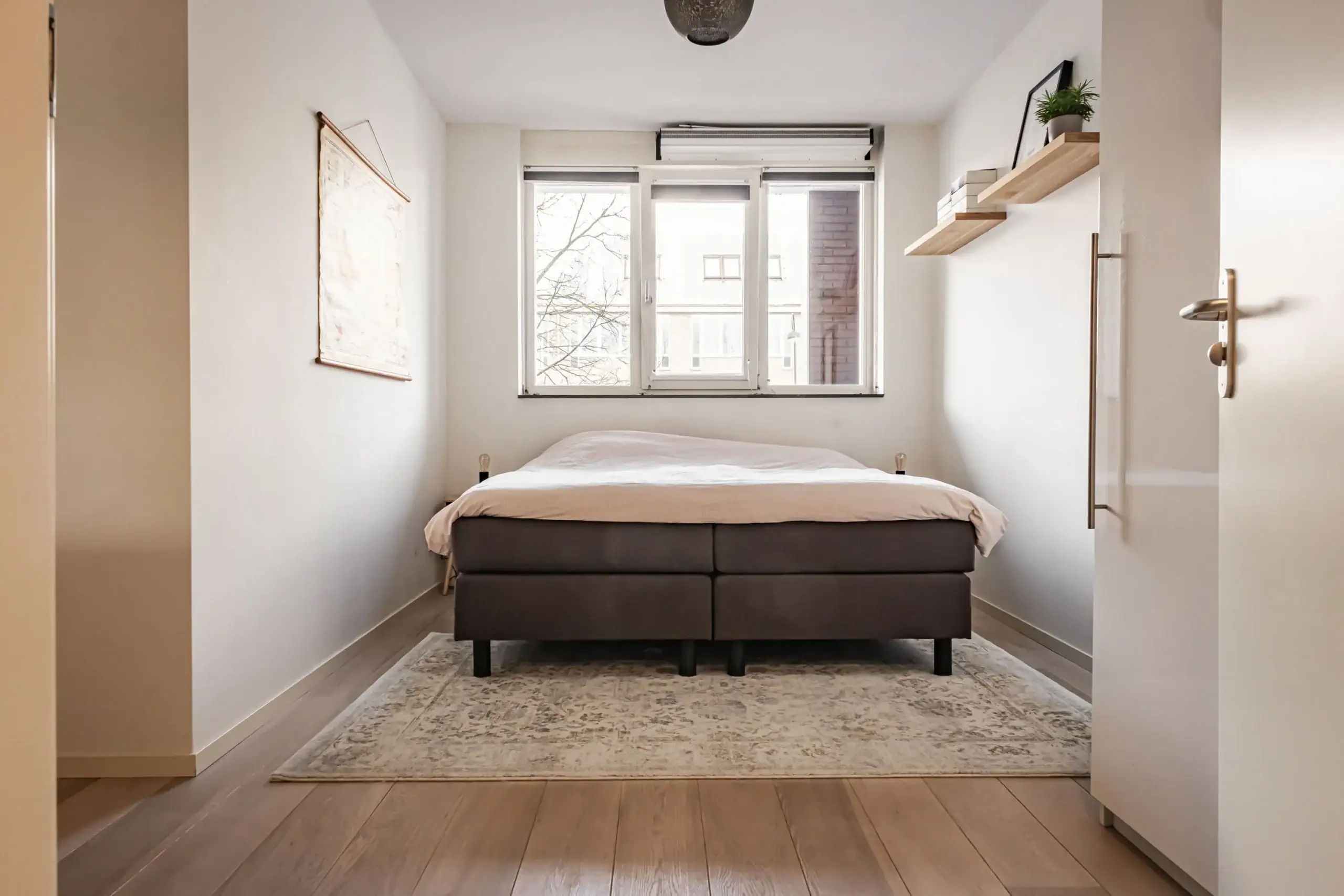Entree woning, hal met garderobe en een gang met toegang tot alle vertrekken , meterkast en toilet met fontein. Ruime slaapkamer met toegang naar de badkamer. Badkamer voorzien van douche, design radiator en wastafelmeubel. Woonkamer met openslaande deuren naar Frans balkon. Open keuken voorzien van keramische kookplaat met 4 fasen, afzuigkap, vaatwasser, combi oven/magnetron, koelkast, vriezer en RVS spoelbak. Grote inpandige berging met wasmachine- en droger aansluiting en mechanische ventilatie installatie.