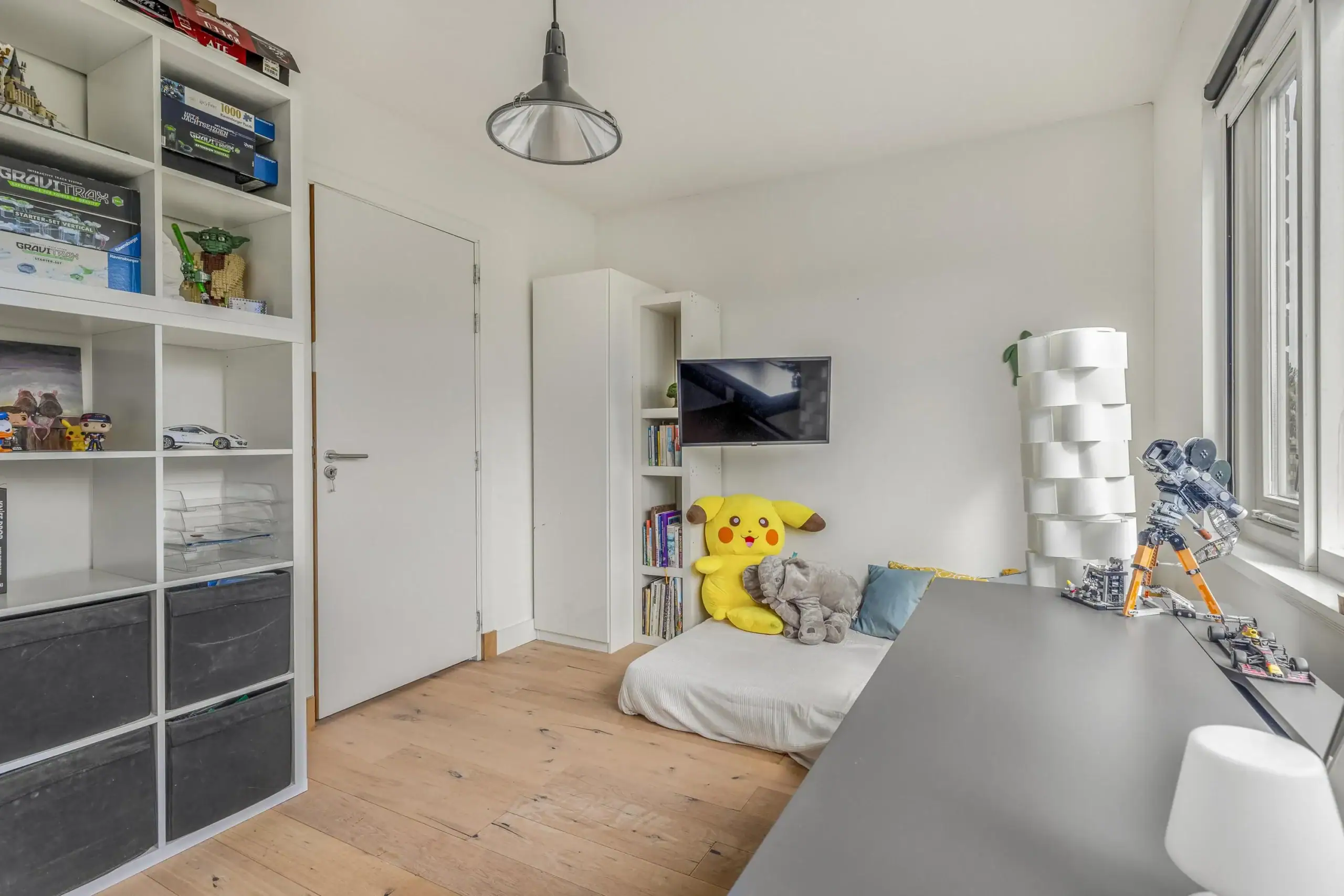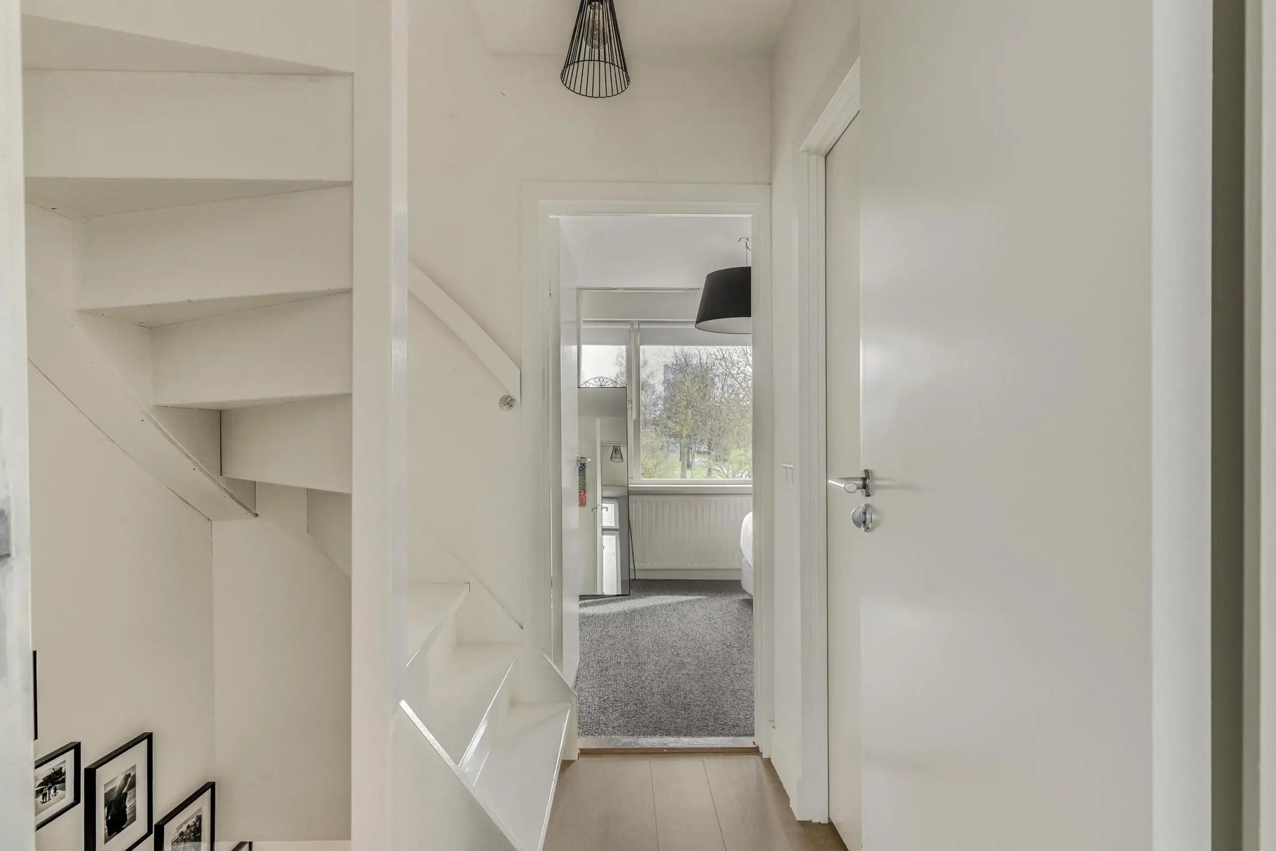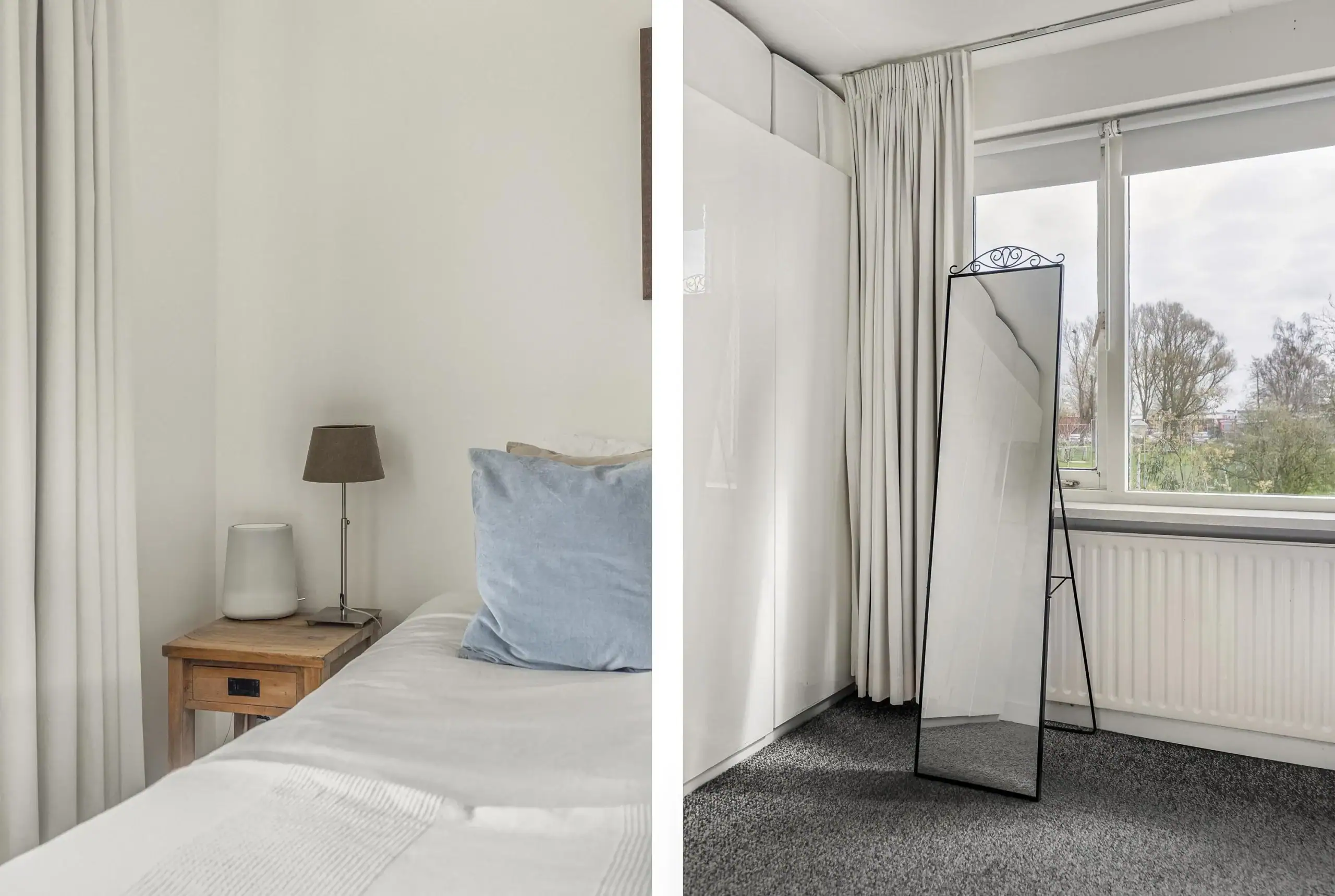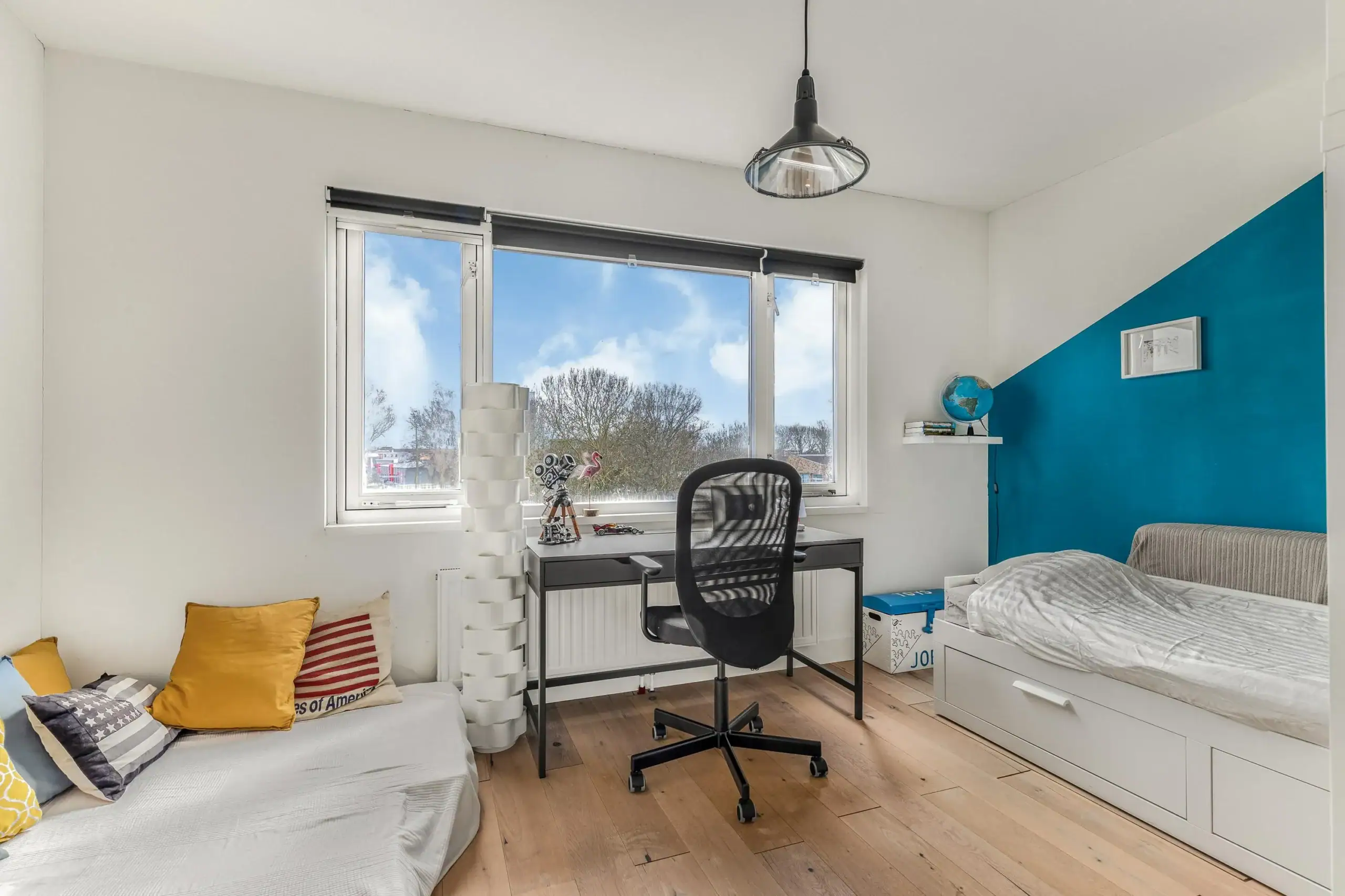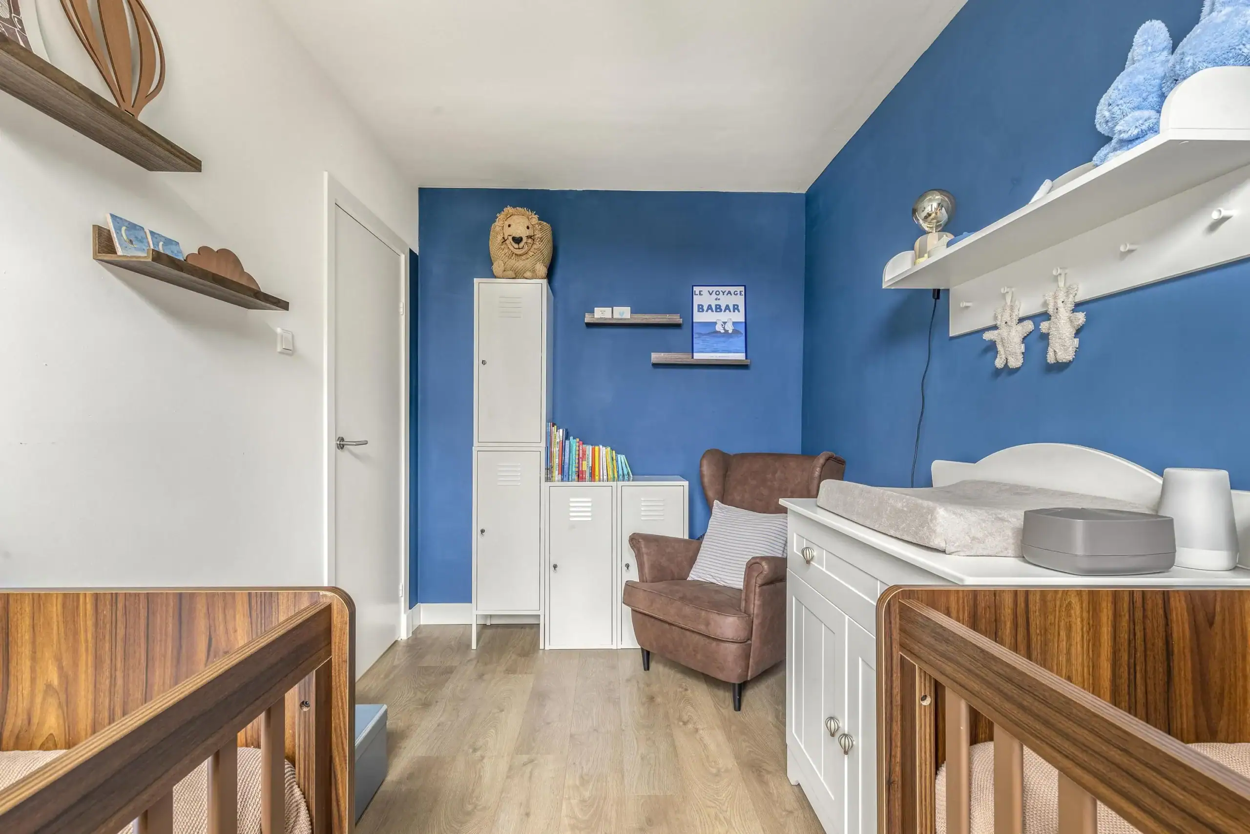 De eerste verdieping biedt ruimte aan de ouderslaapkamer aan de achterzijde, met zicht op het Nelson Mandelapark. Aan de voorzijde vind je op deze verdieping de badkamer en tweede slaapkamer, momenteel in gebruik als babykamer.