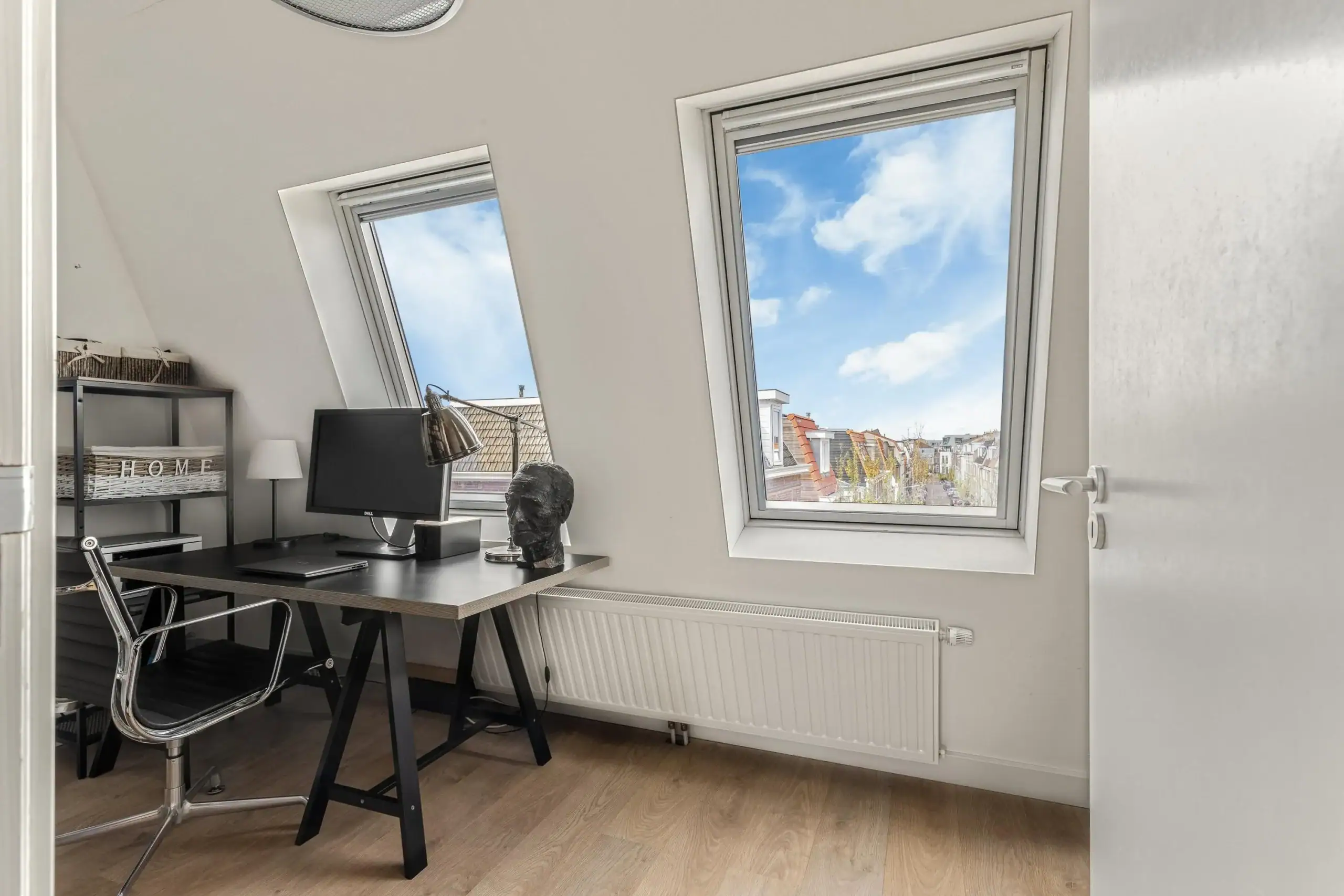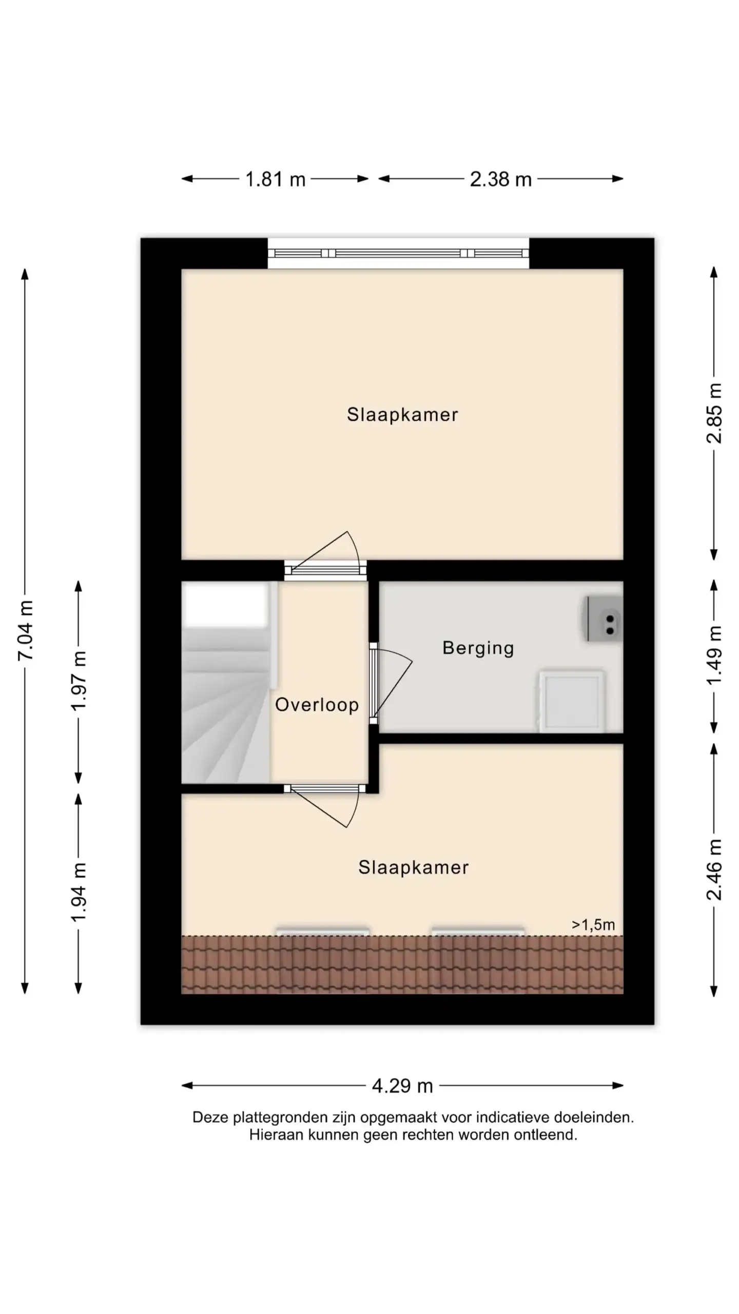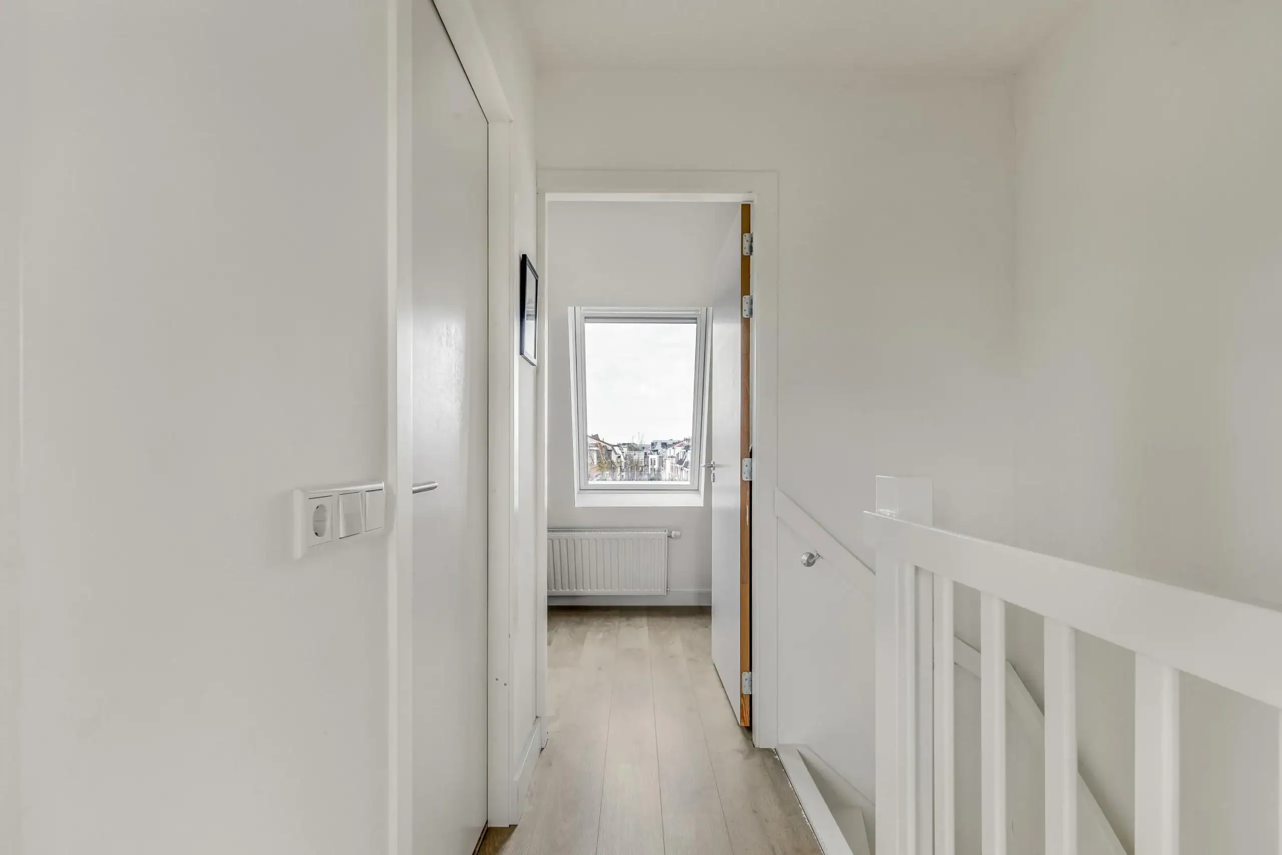 Overloop. Berging met wasmachine- en droger aansluiting en cv-opstelling. Slaapkamer achterzijde met groot raam en vrij uitzicht. Slaapkamer voorzijde met 2 grote dakramen.