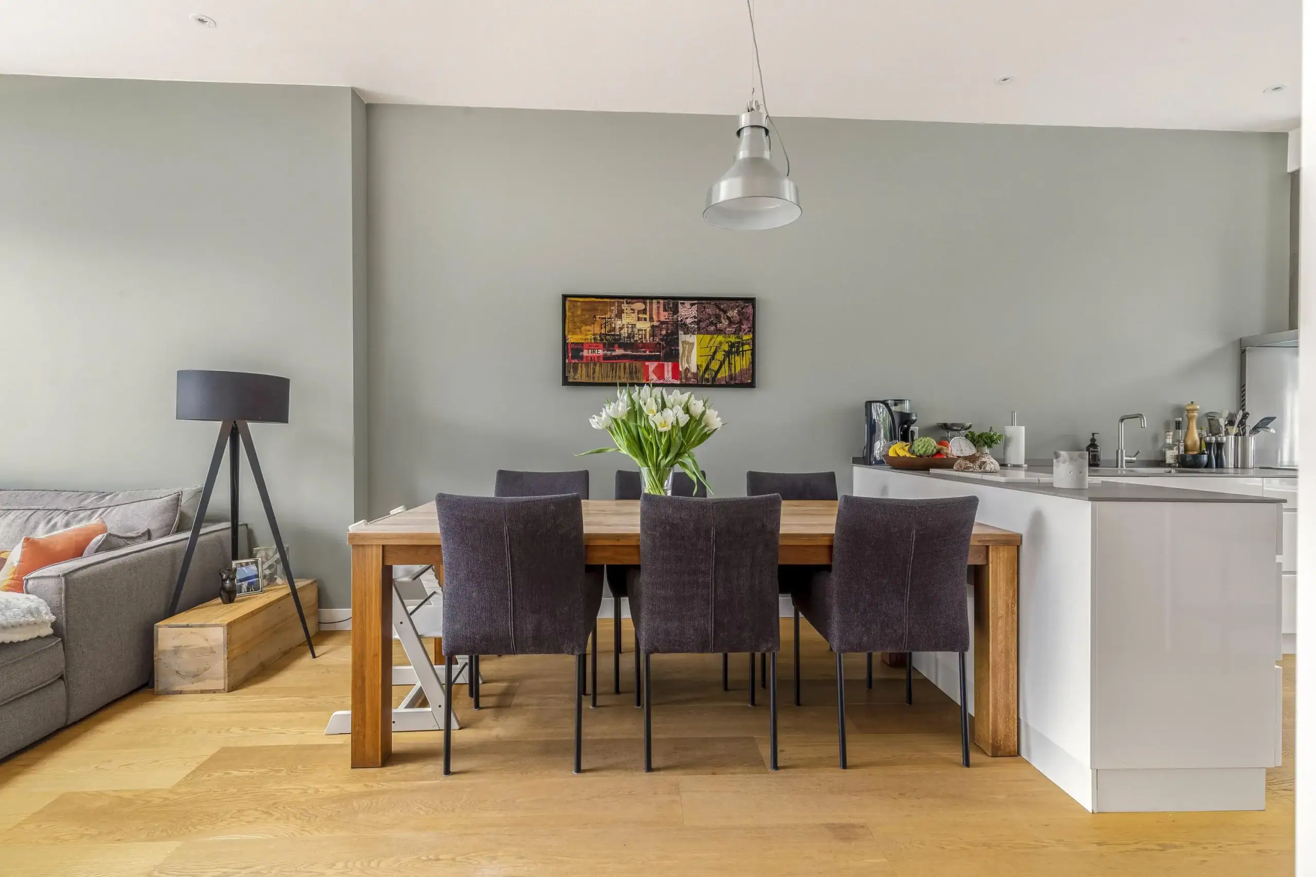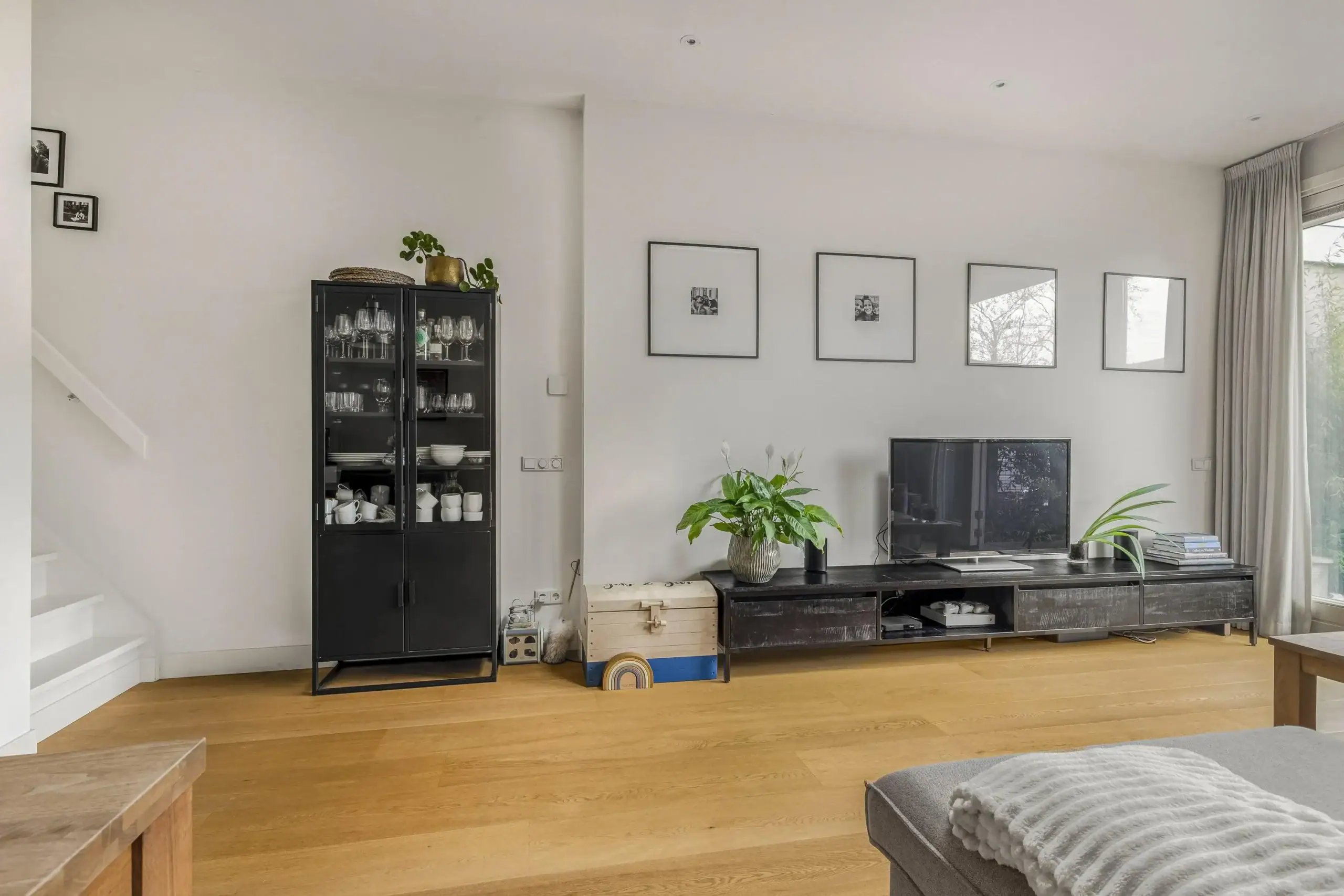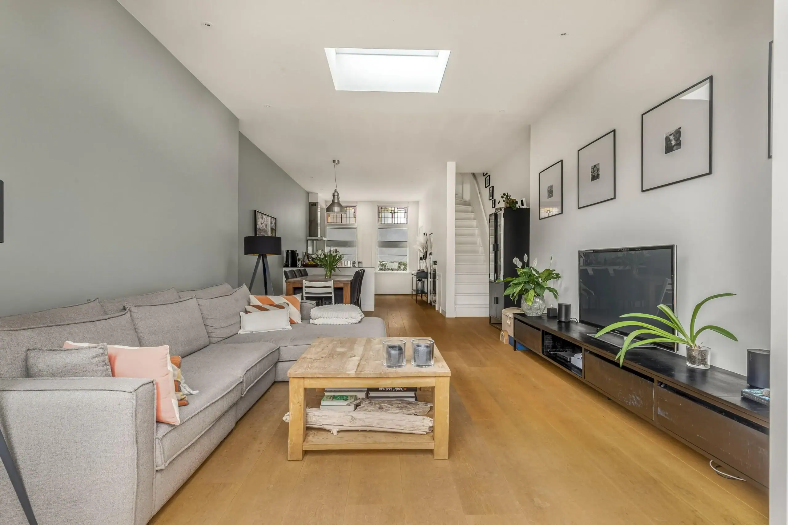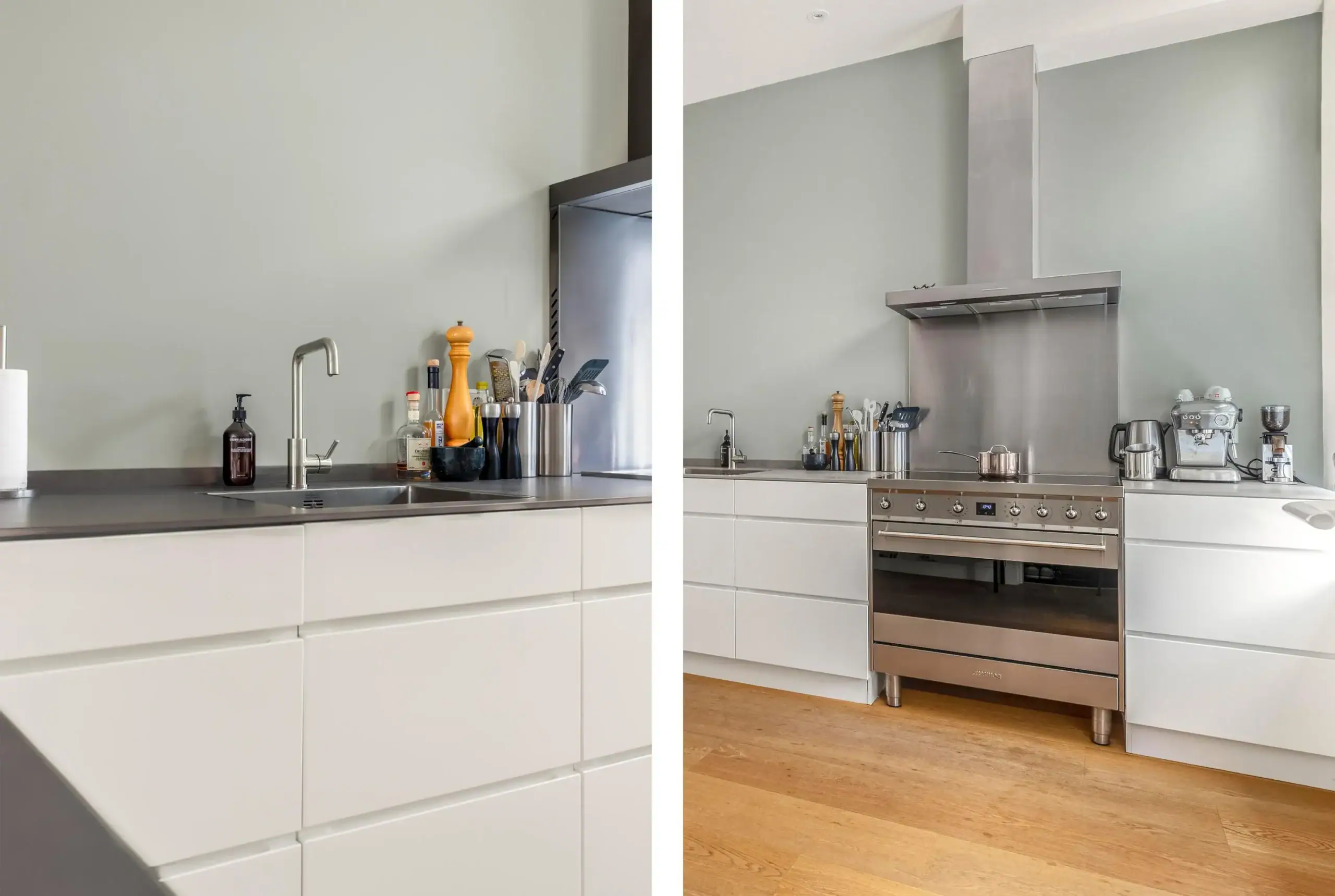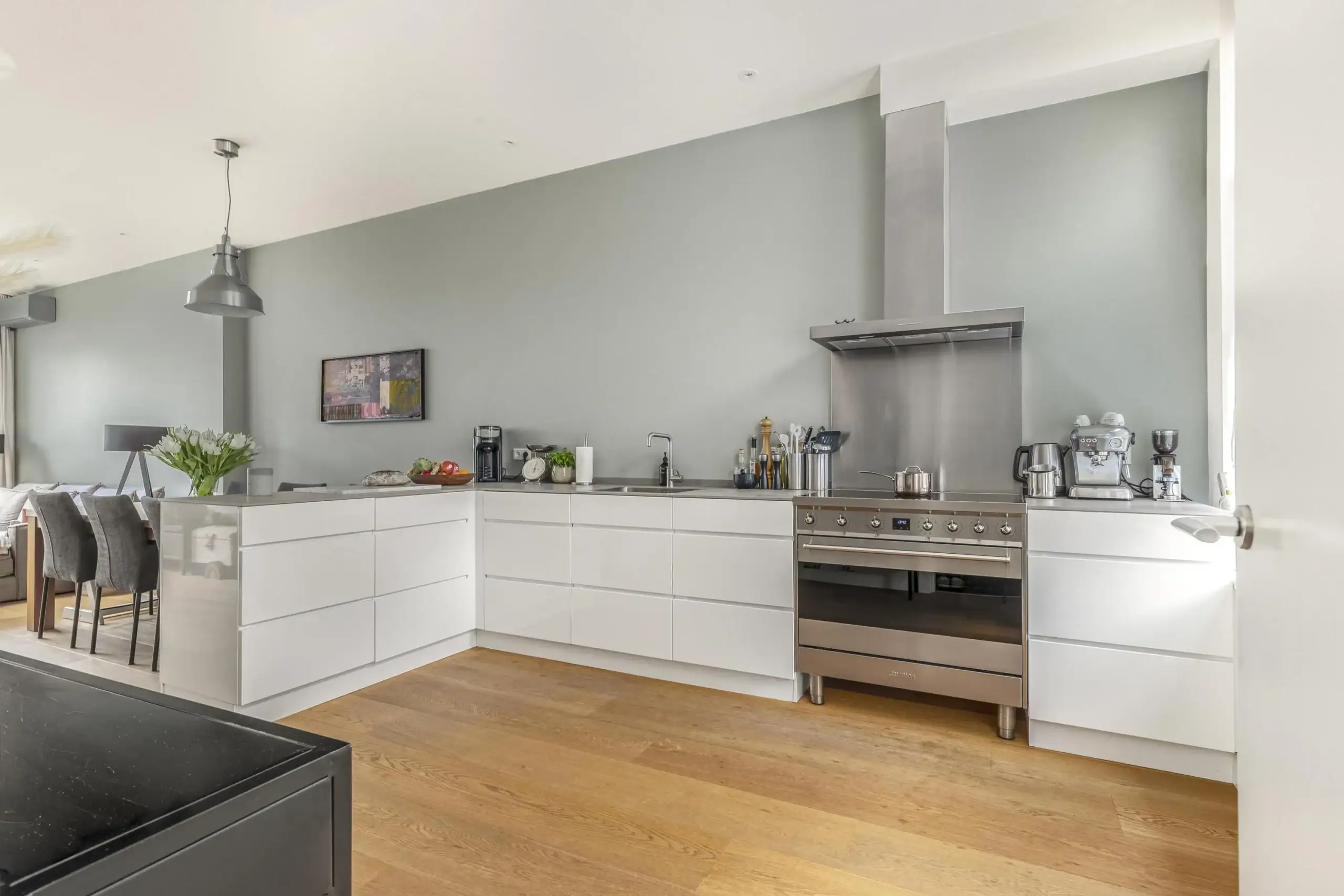 Wat een ruimte! Deze fijne eengezinswoning is achter de voordeur verrassend ruim èn helemaal van nu. Op de begane grond kom je binnen in de fantastische leefkeuken. De keuken heeft een L-opstelling en heeft tegen de wand een extra diep werkblad. Dit zorgt niet alleen voor extra werkruimte maar de lades en kasten eronder zijn ook extra groot. Een zee aan bergruimte dus. Verder is keuken voorzien van luxe inbouwapparatuur en een prachtig SMEG kooktoestel met inductiekookplaat een grote oven. De grote koelkast is weggewerkt onder de trap en hier is ook ruimte voor de wijnklimaatkast.