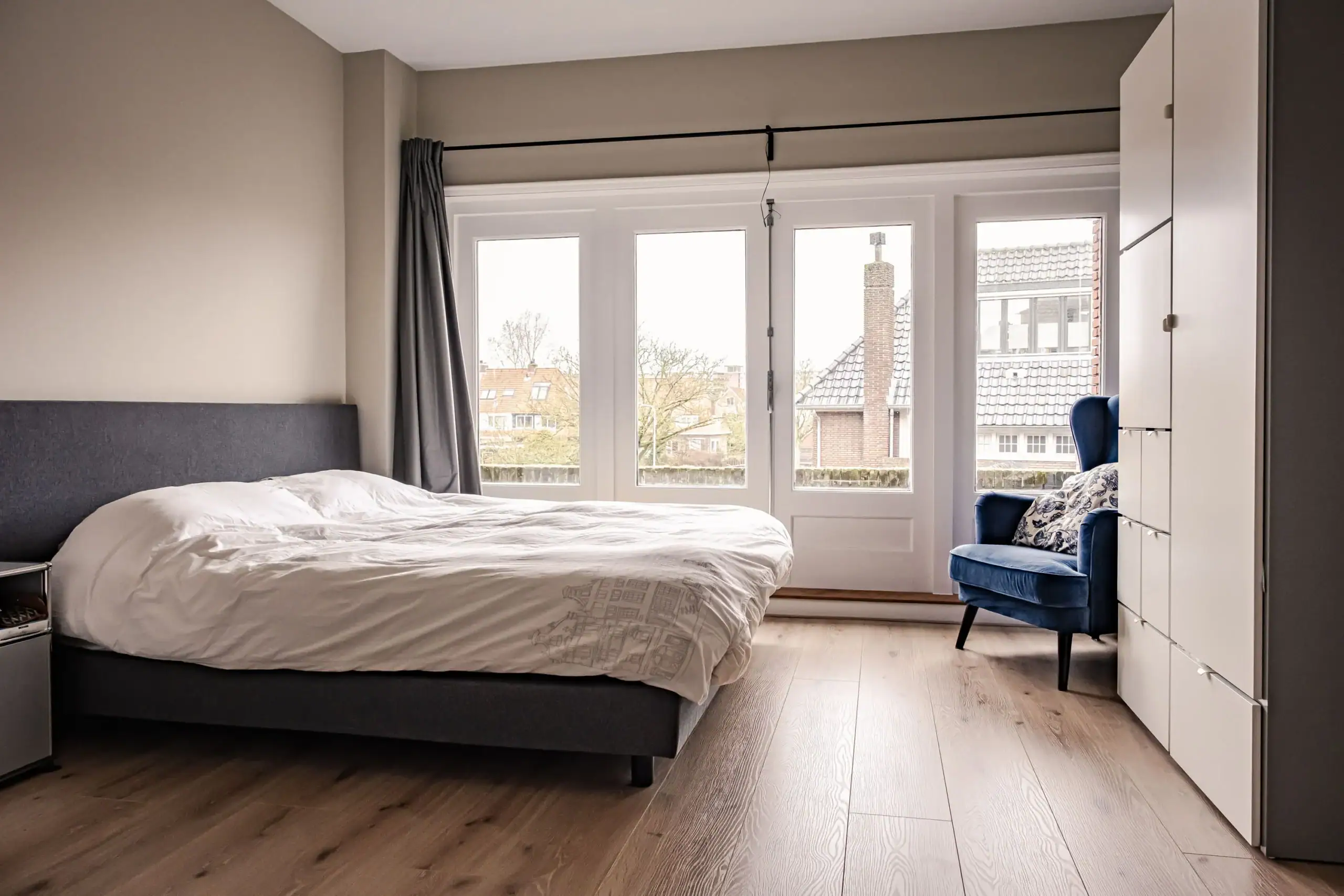 “We hebben hier de afgelopen drie jaar met veel plezier gewoond en voelden ons vanaf het begin direct thuis. Het huis is licht, ruim en tegelijk knus, met een warme sfeer dankzij de houten vloer en vloerverwarming. De open keuken maakt het een gezellige leefruimte, met in de zomer een fijne verbinding naar buiten via de openslaande deuren.