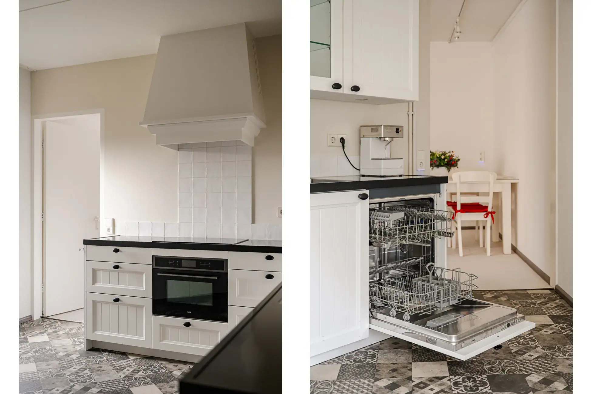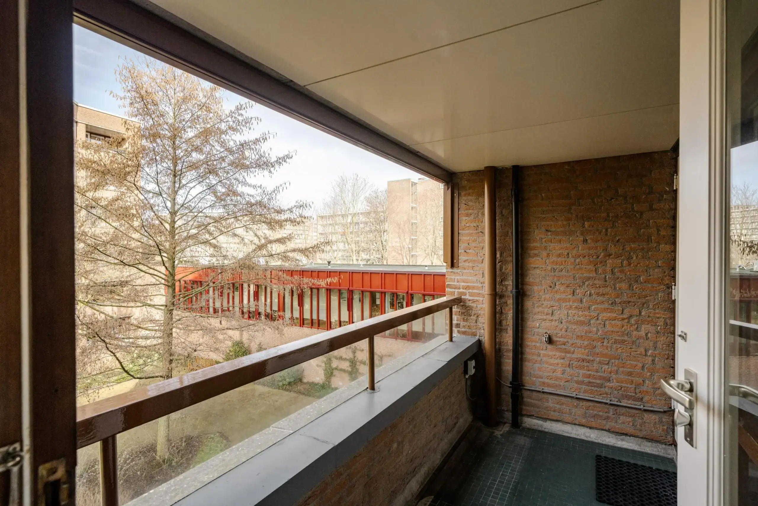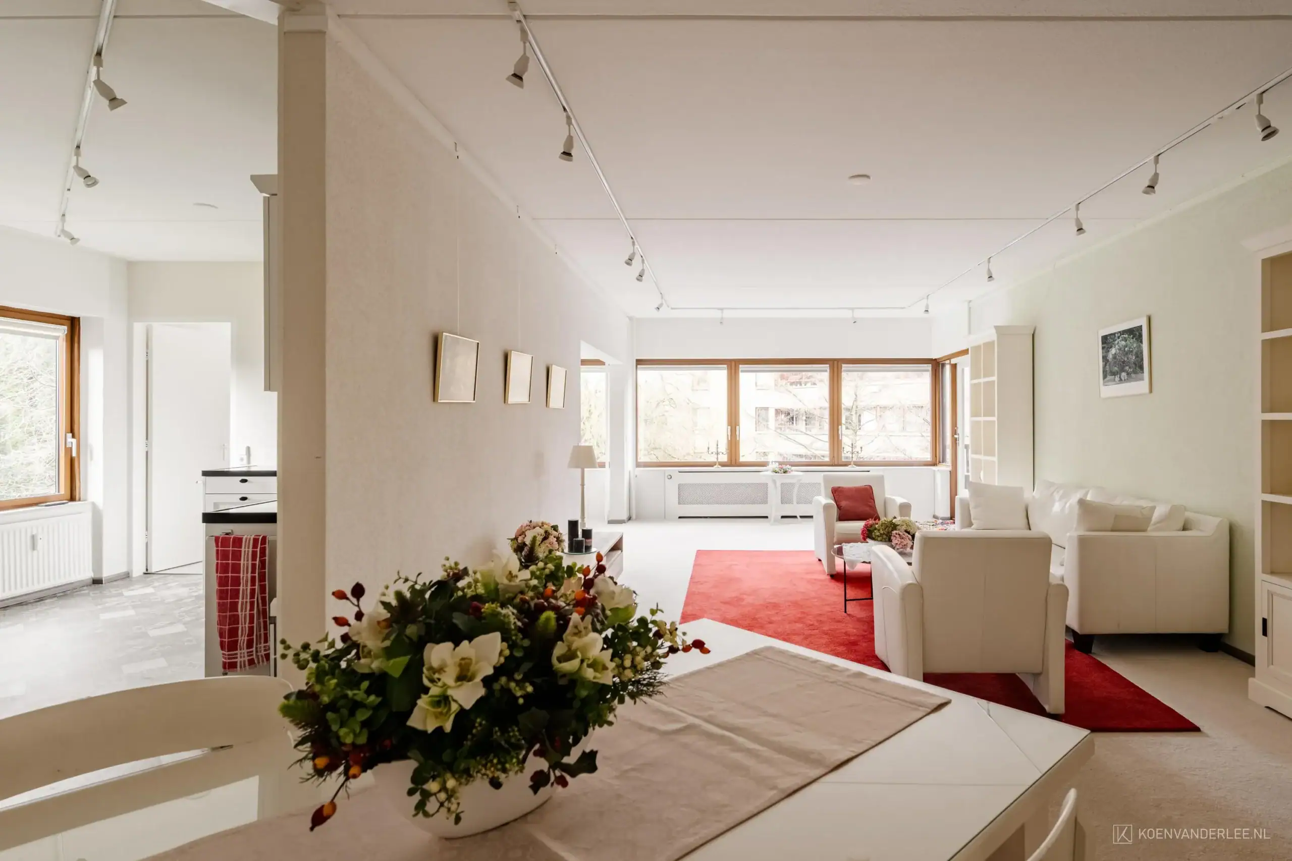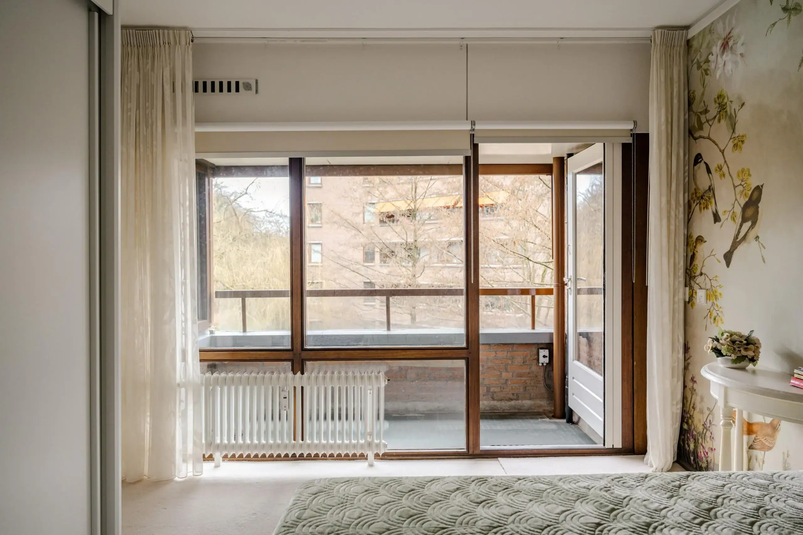 De royale appartement is heerlijk licht en heeft vanaf de L-vormige living een prachtig uitzicht op de fraai aangelegde gemeenschappelijke tuin. Zowel de woonkamer als de ruime slaapkamer geven toegang tot het zonnige balkon op het westen. Aan de tuinzijde bevindt zich ook de stijlvolle, landelijke keuken. De slaapkamer is royaal en eveneens gesitueerd aan de rustige tuinzijde. De ruime badkamer beschikt over een inloopdouche, wastafelmeubel en toilet. Verder is er een praktische berging met ruimte voor opslag en aansluitingen voor wasmachine en droger.