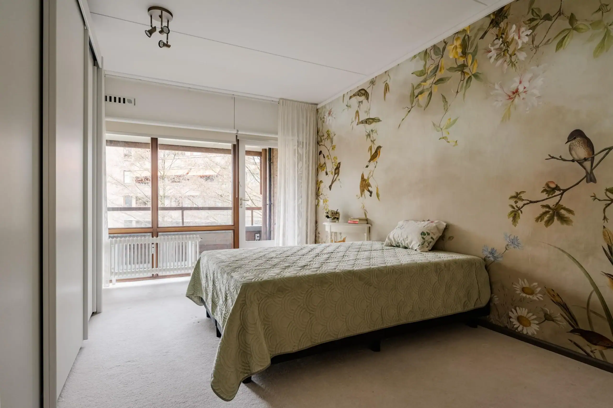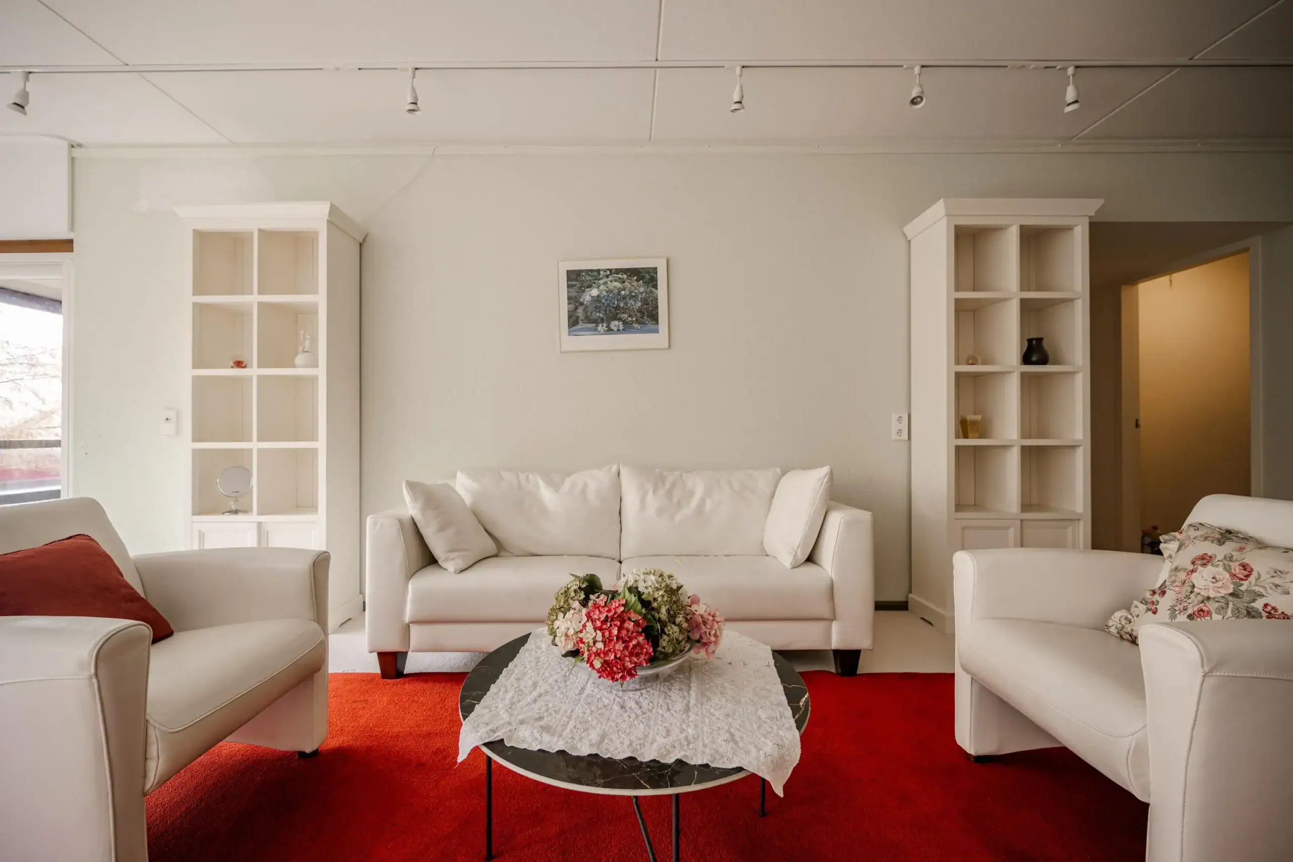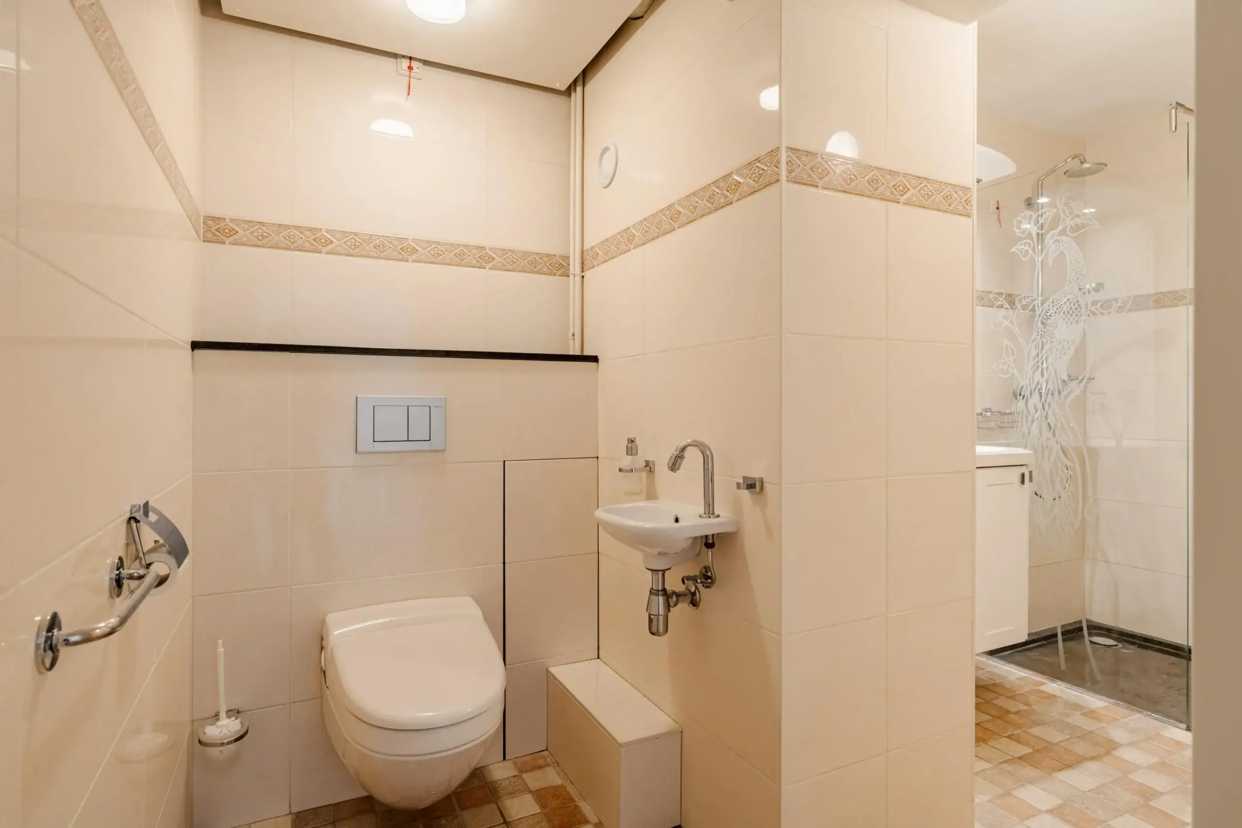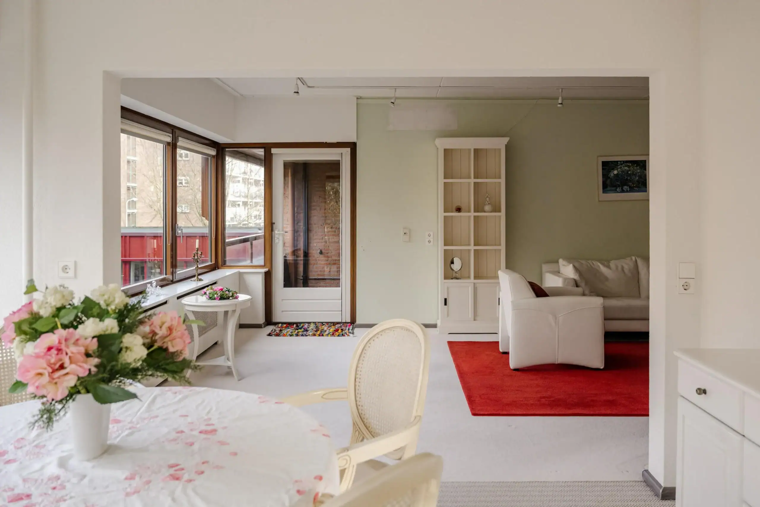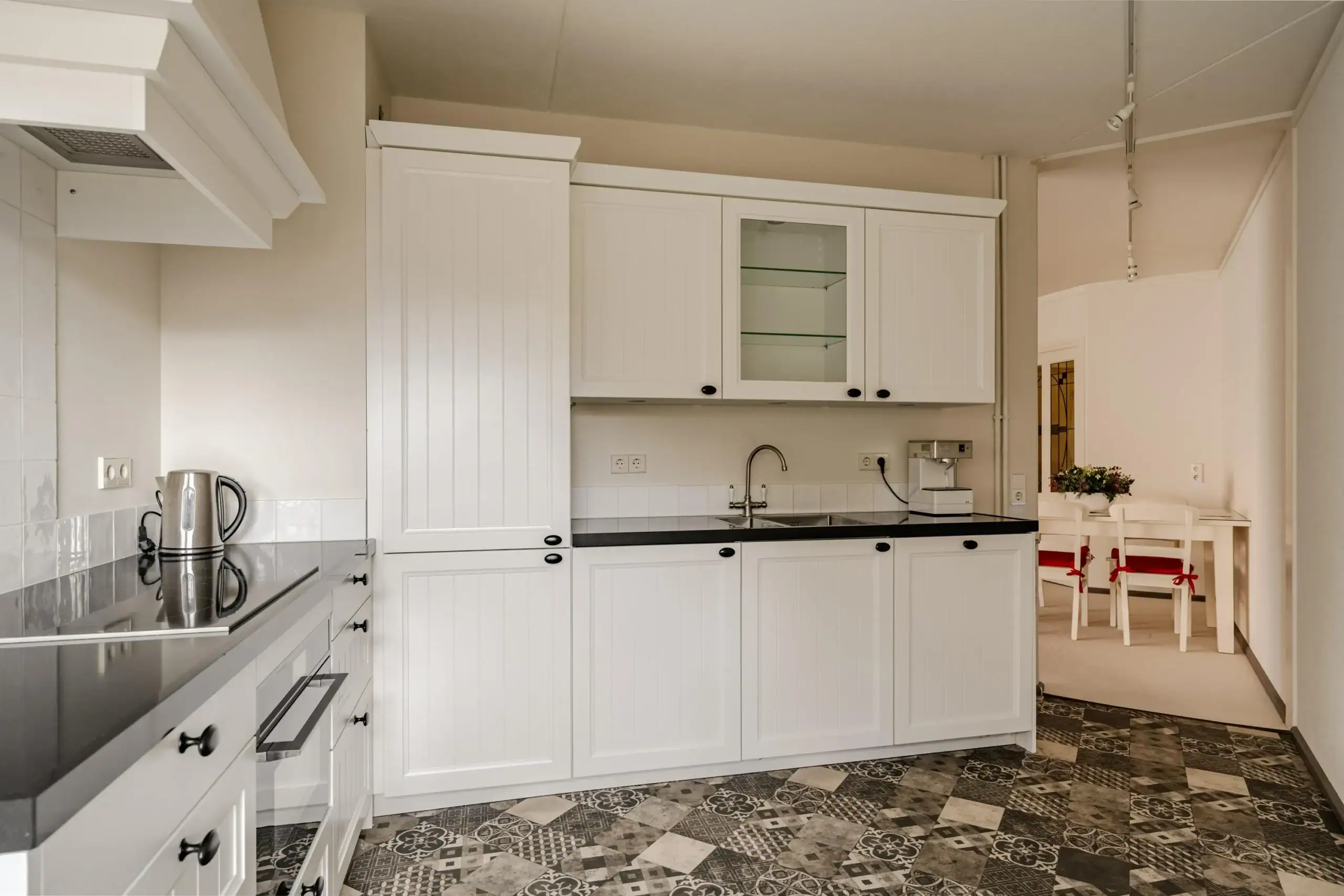 De royale appartement is heerlijk licht en heeft vanaf de L-vormige living een prachtig uitzicht op de fraai aangelegde gemeenschappelijke tuin. Zowel de woonkamer als de ruime slaapkamer geven toegang tot het zonnige balkon op het westen. Aan de tuinzijde bevindt zich ook de stijlvolle, landelijke keuken. De slaapkamer is royaal en eveneens gesitueerd aan de rustige tuinzijde. De ruime badkamer beschikt over een inloopdouche, wastafelmeubel en toilet. Verder is er een praktische berging met ruimte voor opslag en aansluitingen voor wasmachine en droger.