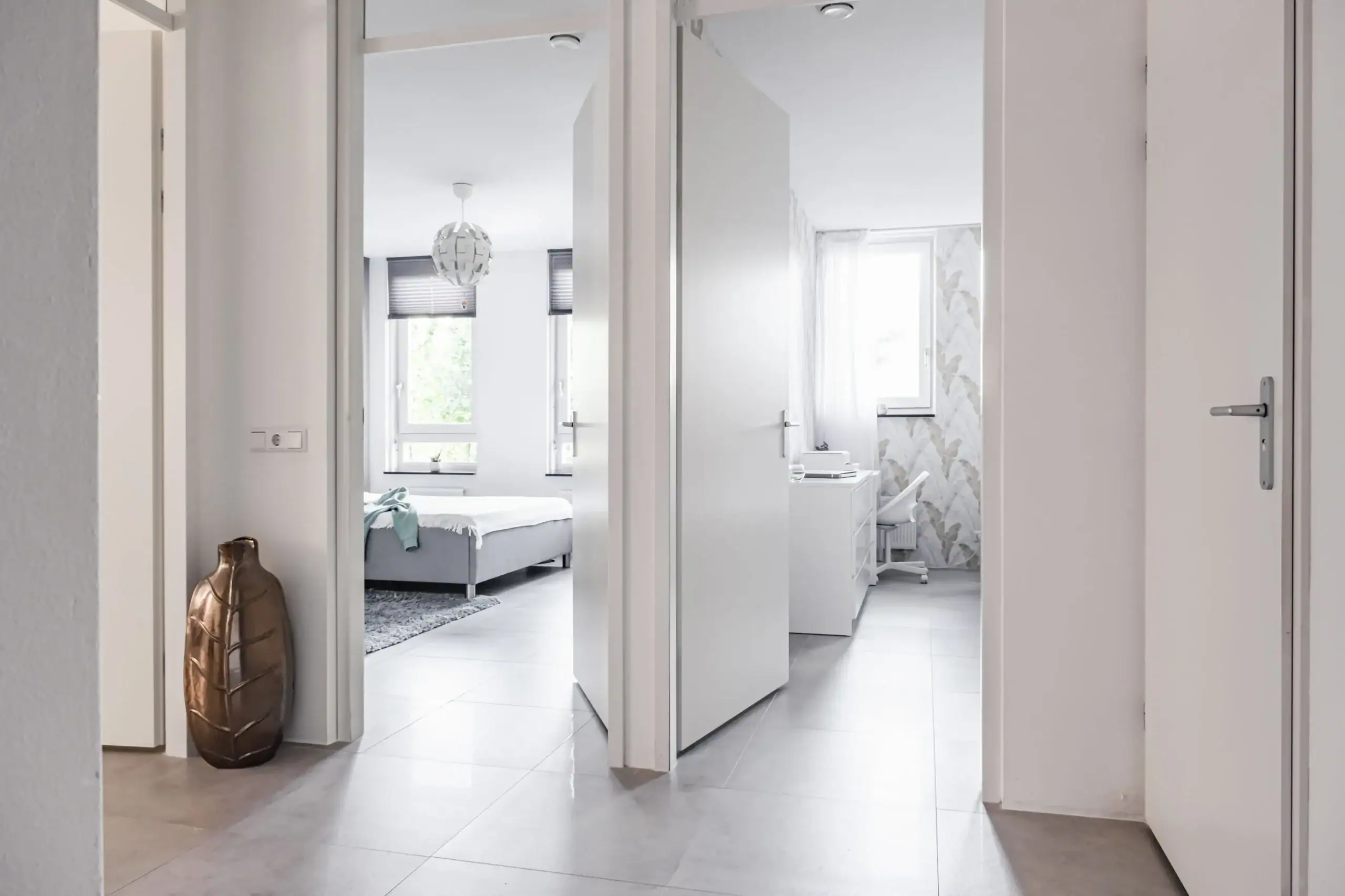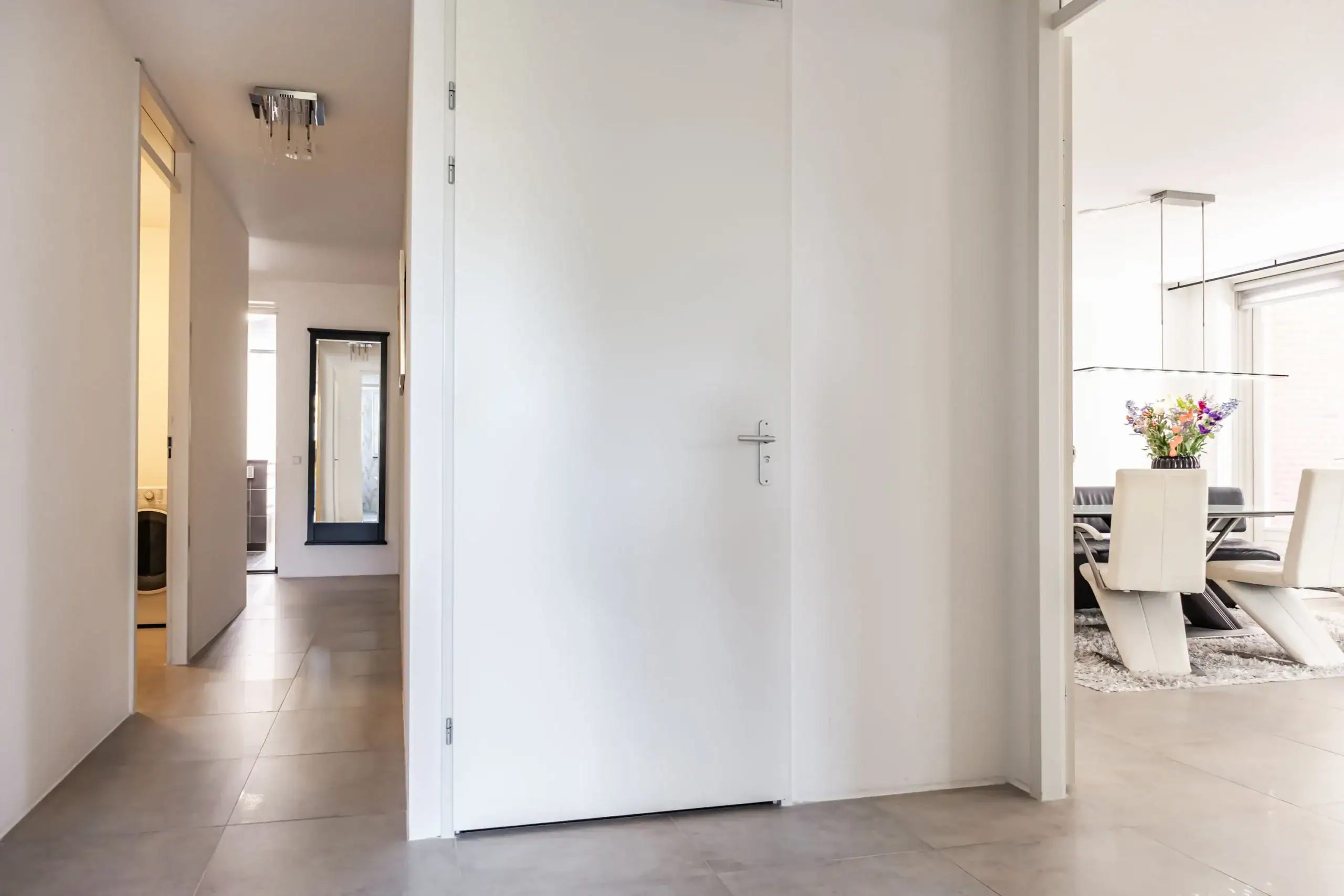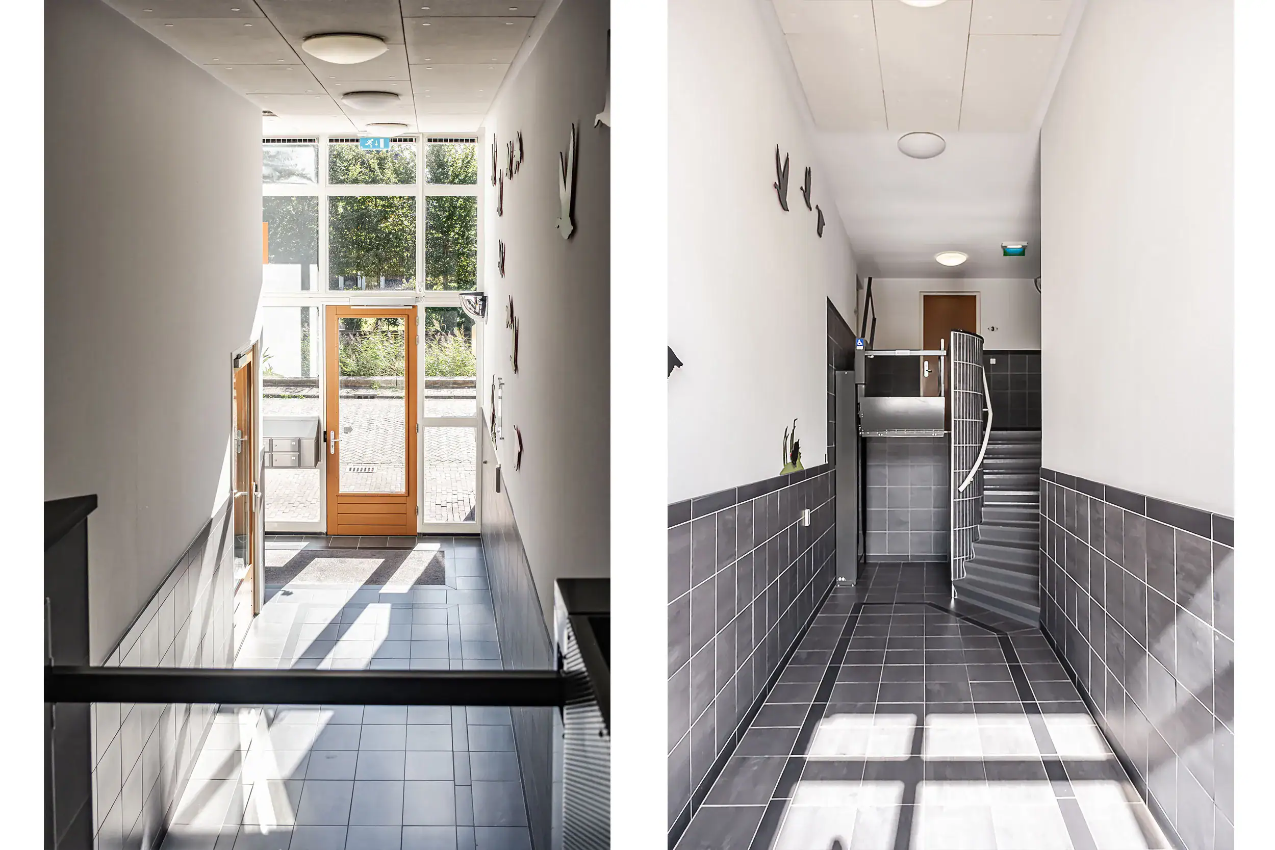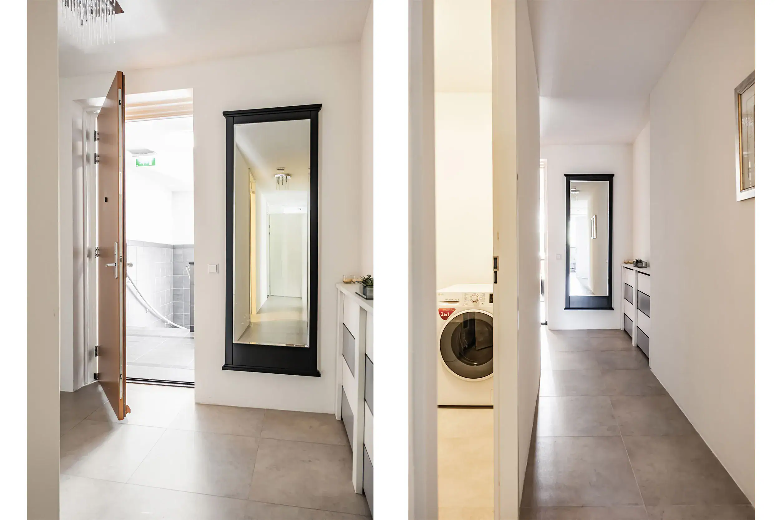 Stijlvolle entreehal met brievenbussen en intercomsysteem. Het appartement is toegankelijk via zowel het trappenhuis als de lift. Geen galerijen, wat zorgt voor extra privacy. Elk appartement beschikt over een videofoonsysteem, wat dit privacy aspect verder benadrukt.