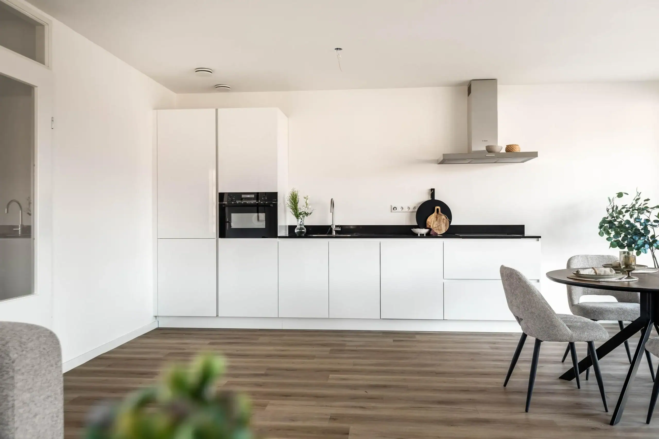 Het appartement bevindt zich op de tweede verdieping, waar u binnenkomt in de ruime hal. Via de hal heeft u toegang tot alle vertrekken, waaronder een separaat toilet, de meterkast, een praktische wasruimte met de opstelplaats voor de cv-ketel en de aansluitingen voor de wasmachine en droger. De twee slaapkamers en de moderne badkamer. De badkamer is in zijn geheel vernieuwd en voorzien van een ruime inloopdouche, toilet en dubbel wastafelmeubel. De gehele woning is voorzien van een PVC vloer en radiatoren. De woonkamer beschikt over een moderne keuken met diverse Bosch inbouwapparatuur: 4 pits-inductie kookplaat, afzuiging, vaatwasser, combi oven, koelkast en vriezer. Er is voldoende opbergruimte in de kasten en lades. Via de schuifpui in de woonkamer bereik je het ruime balkon, dat over de volledige breedte van het appartement loopt en gunstig is gelegen op het noordwesten.
