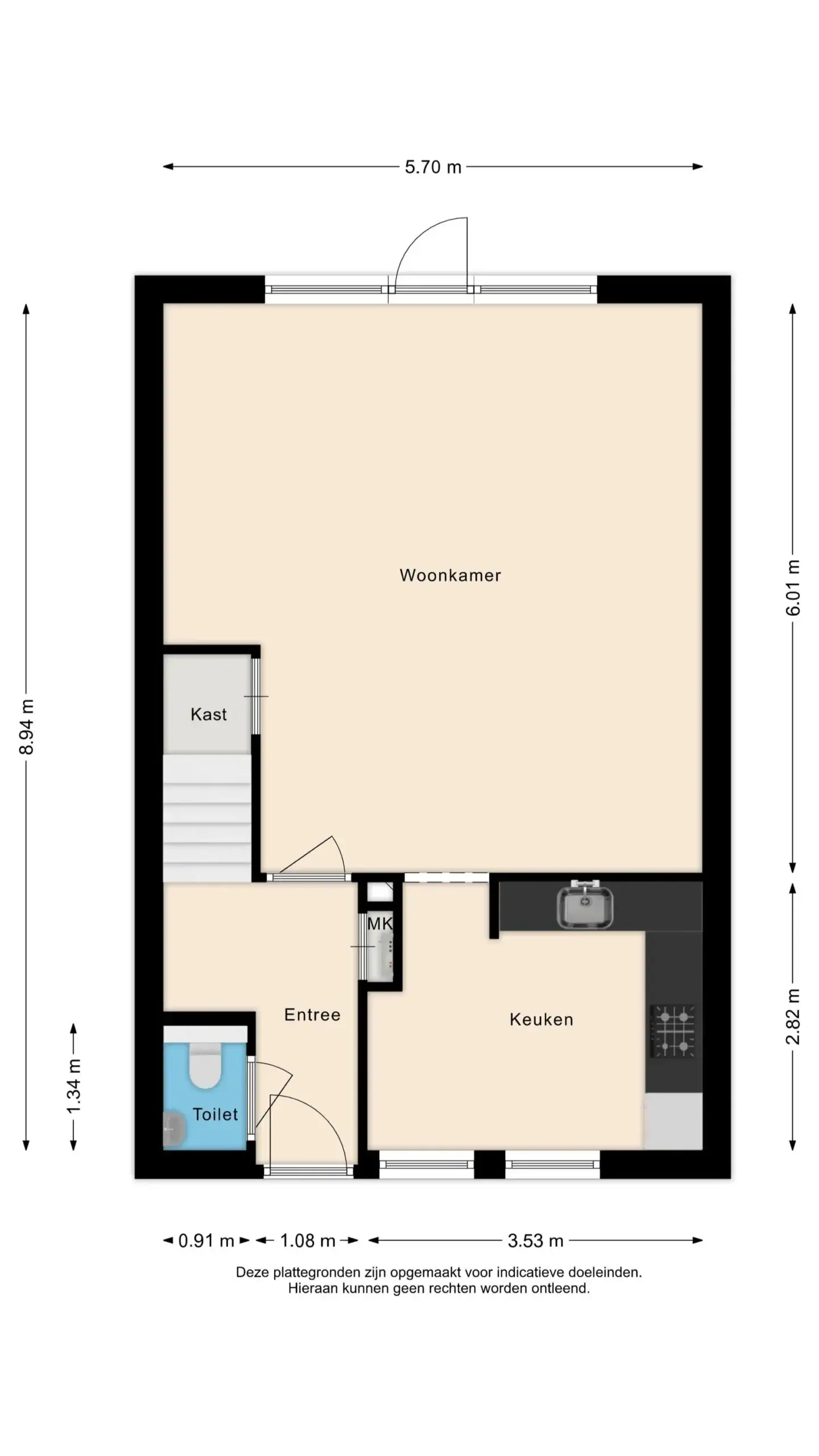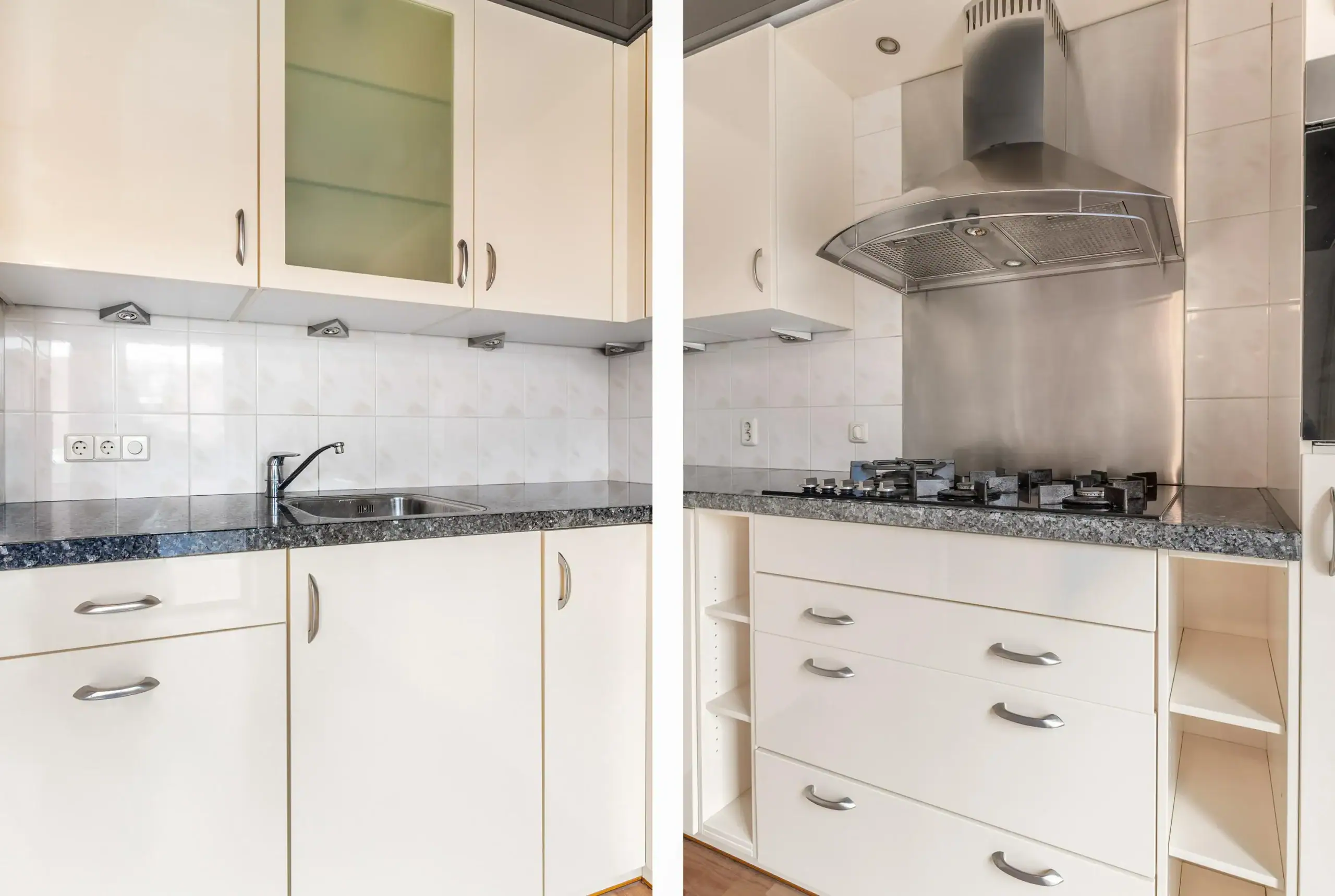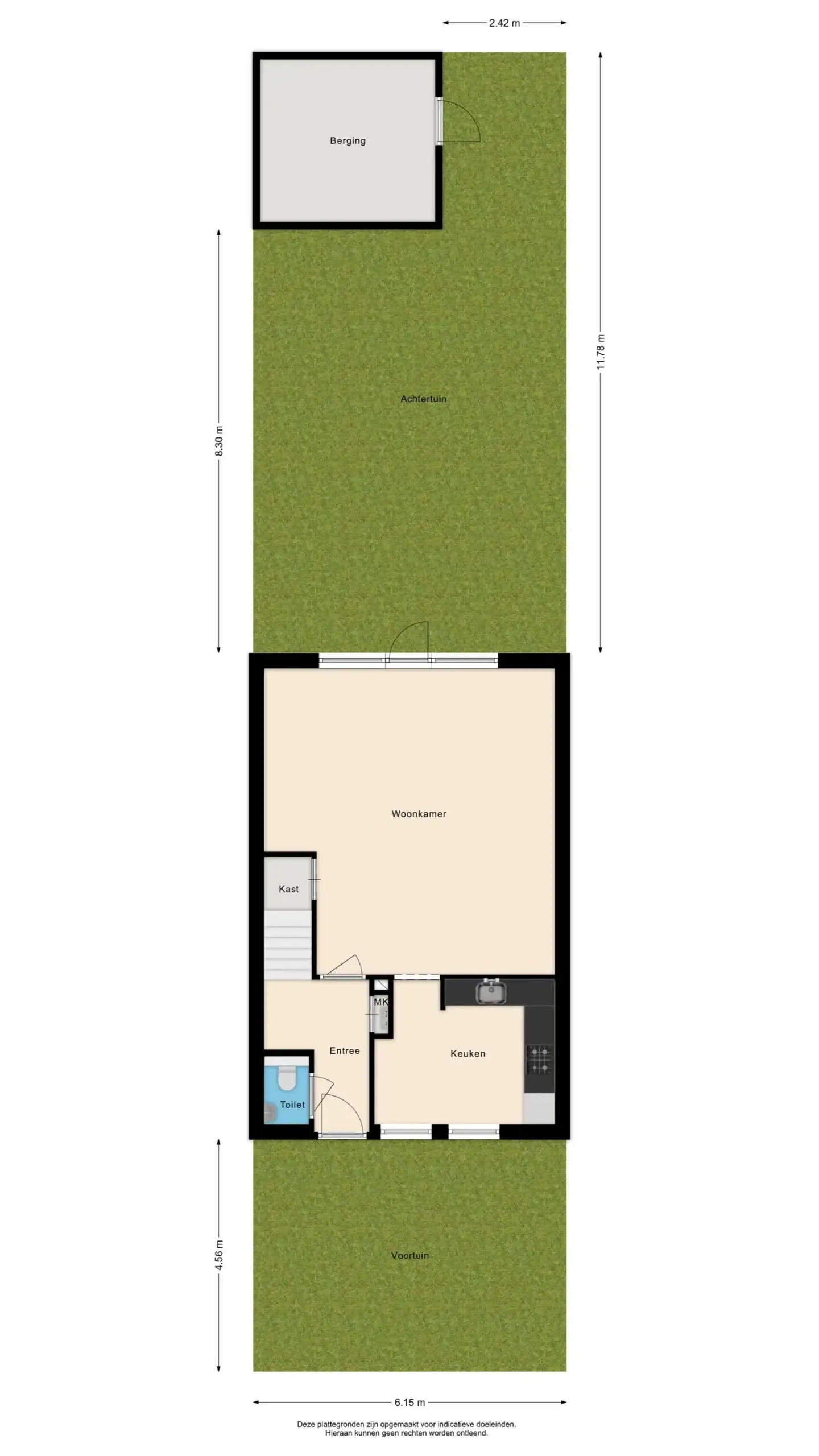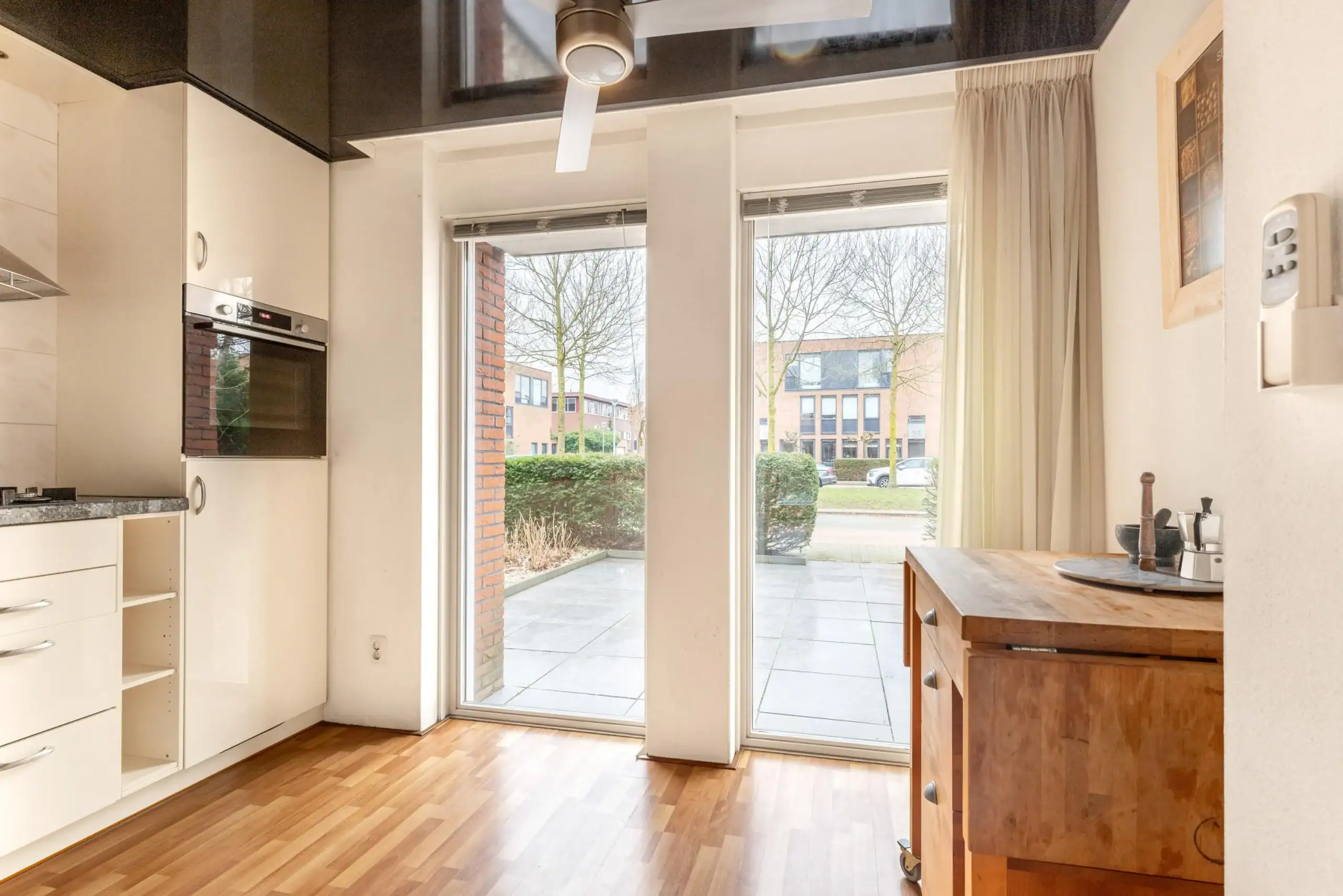 Ruime voortuin met toegang tot de woning. Entree in de hal met toilet, meterkast en trapopgang naar de eerste verdieping. De woonkamer is voorzien van een mooie laminaatvloer en heeft via een enkele deur toegang tot de achtertuin. Aan de voorzijde bevindt zich de halfopen keuken, uitgerust met een granieten aanrechtblad en diverse inbouwapparatuur zoals een 5-pits gasfornuis (2024), combi-oven (2025), vaatwasser en koelkast. Dankzij de grote raampartijen komt er veel natuurlijk daglicht binnen, wat zorgt voor een lichte en aangename leefruimte. De woonkamer beschikt over een gezellig zitgedeelte met uitzicht op de achtertuin en een praktische provisieruimte voor extra opslag. Daarnaast bestaat de mogelijkheid om de woonkamer uit te bouwen. De onderhoudsvrije achtertuin is voorzien van sfeervolle verlichting, een ruime berging en een handige achterom. De tuin ligt op het noordoosten en biedt een fijne combinatie van ochtendzon en verkoelende schaduw in de middag.
