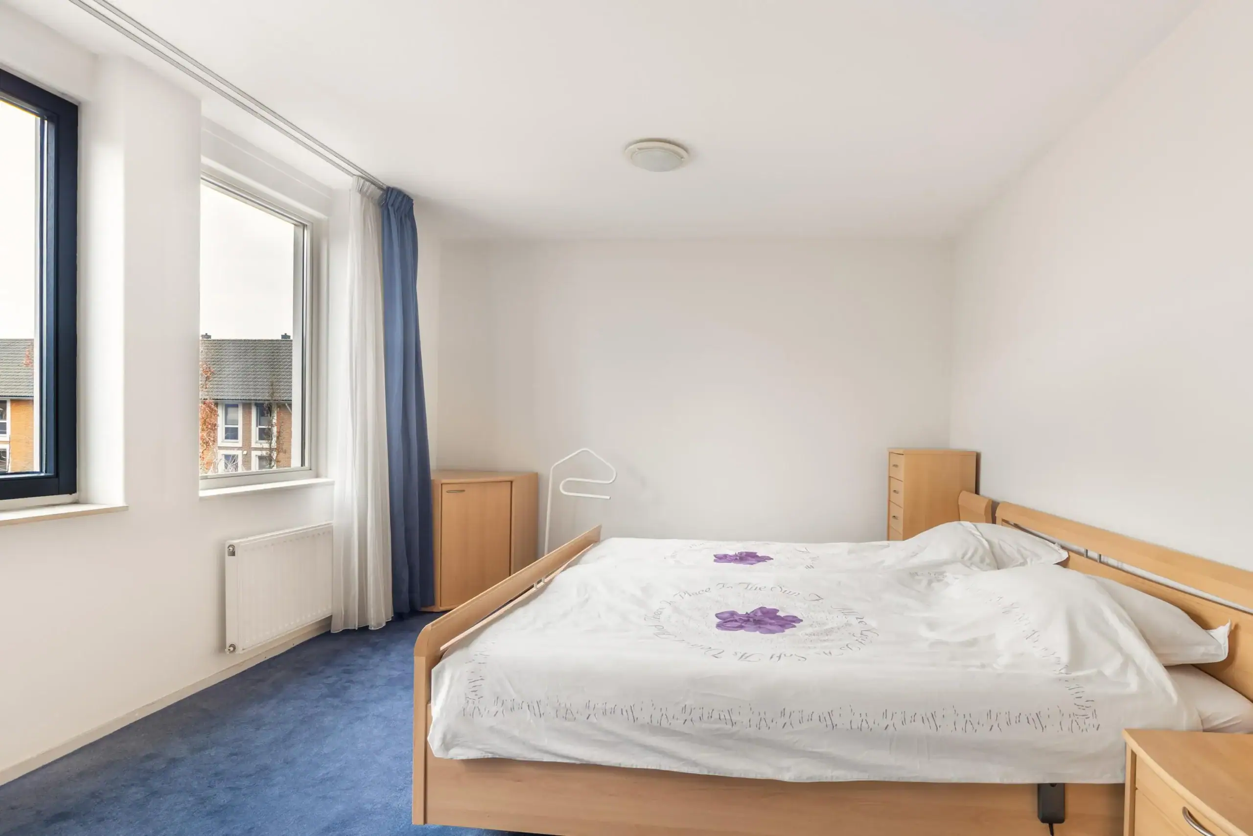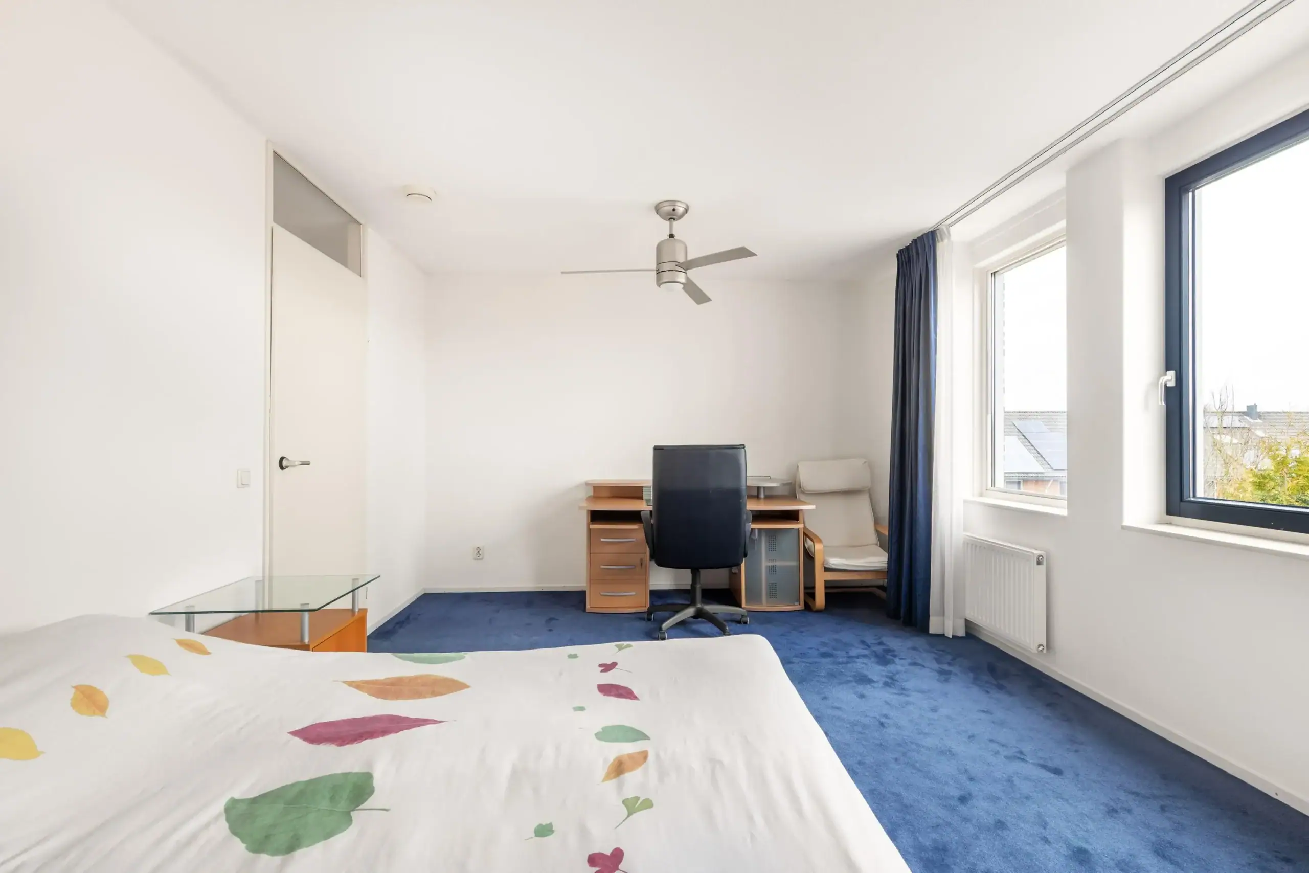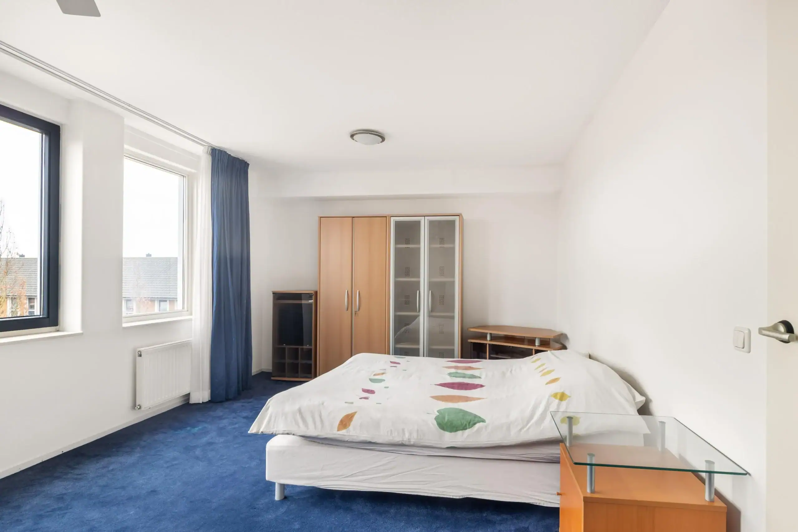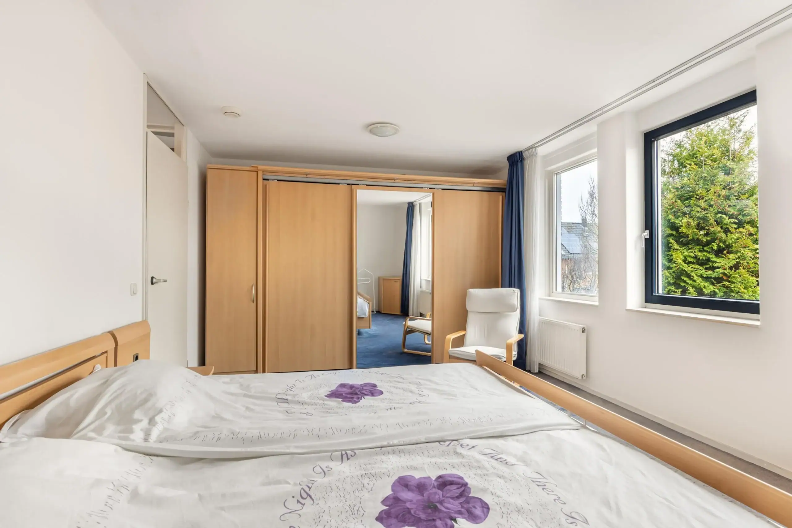 Overloop met toegang tot twee slaapkamers. De grootste slaapkamer bevindt zich aan de achterzijde van de woning en de tweede slaapkamer aan de voorzijde. Beide kamers beschikken over meerdere raampartijen en bieden voldoende ruimte voor een groot bed en een kledingkast. De badkamer ligt centraal tussen de slaapkamers en is een royale ruimte met een ligbad, douche en een dubbel wastafelmeubel. Daarnaast is de badkamer voorzien van comfortabele vloerverwarming en sfeerplafond met spotjes. Tevens is er een separaat toilet aanwezig.