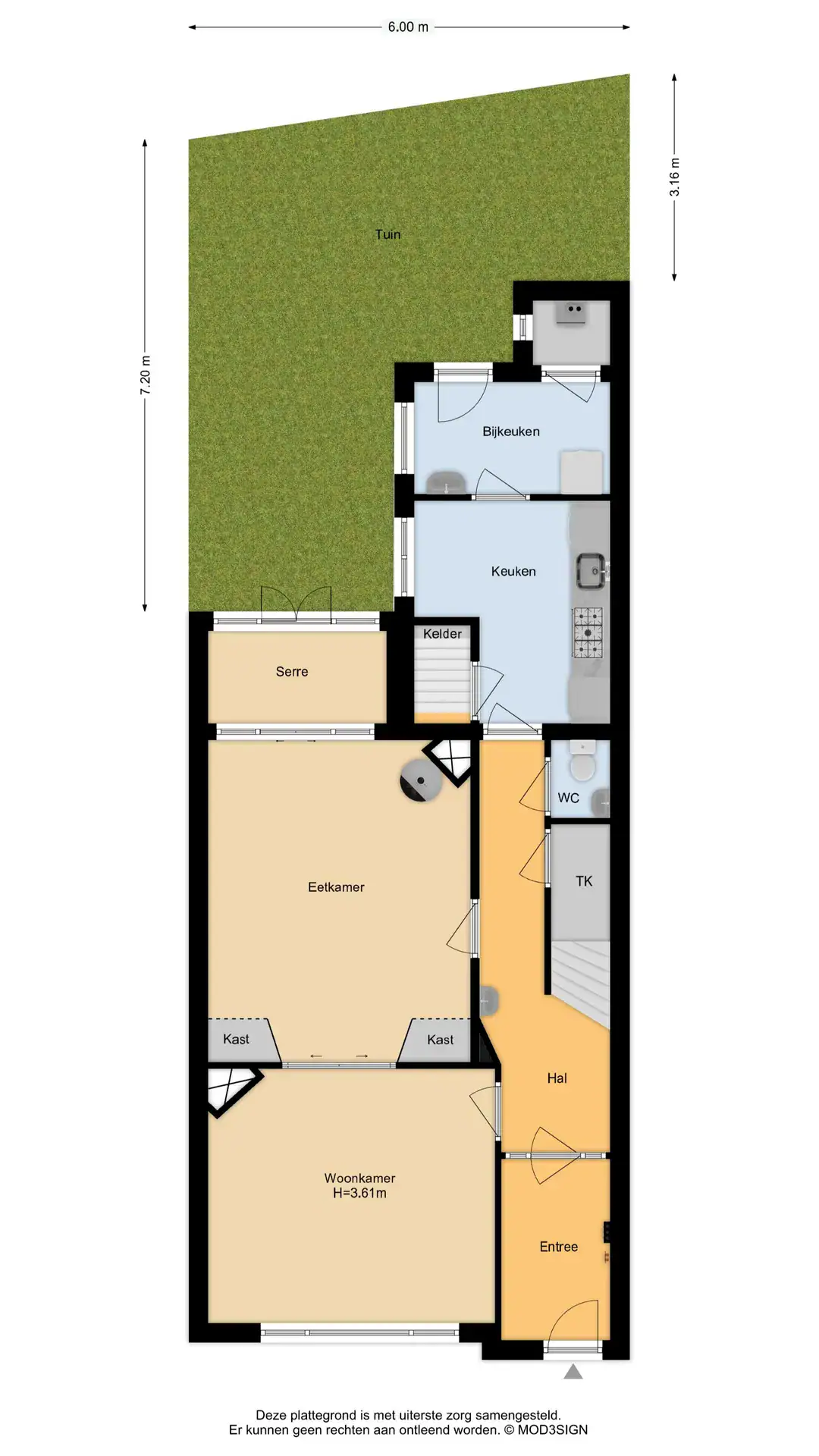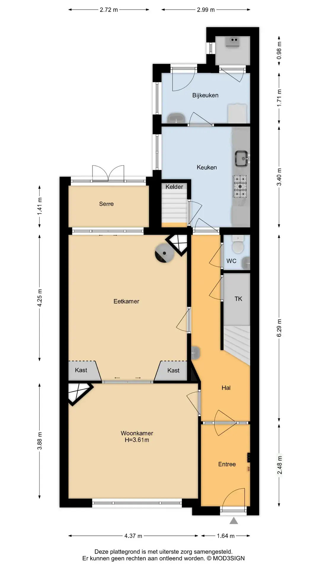 Entree. Vestibule met veel marmer en authentieke deur met sierglas. Gang met trapkast en modern toilet. Royale woonkamer en-suite met hoge ornamenten plafonds, inbouwkasten en mooie stenen schouw. Aan de achterzijde een serre met openslaande deuren naar de tuin met buitenkeuken. Moderne keuken voorzien van extra breed gasfornuis met oven, afzuigkap en vaatwasser. Verder is er nog een authentieke voorraadkast met glazen deuren. Deur met toegang naar ruime kelder. Bijkeuken met gootsteen, aansluiting voor wasmachine en droger en deur naar de tuin. Kast met cv-ketel.