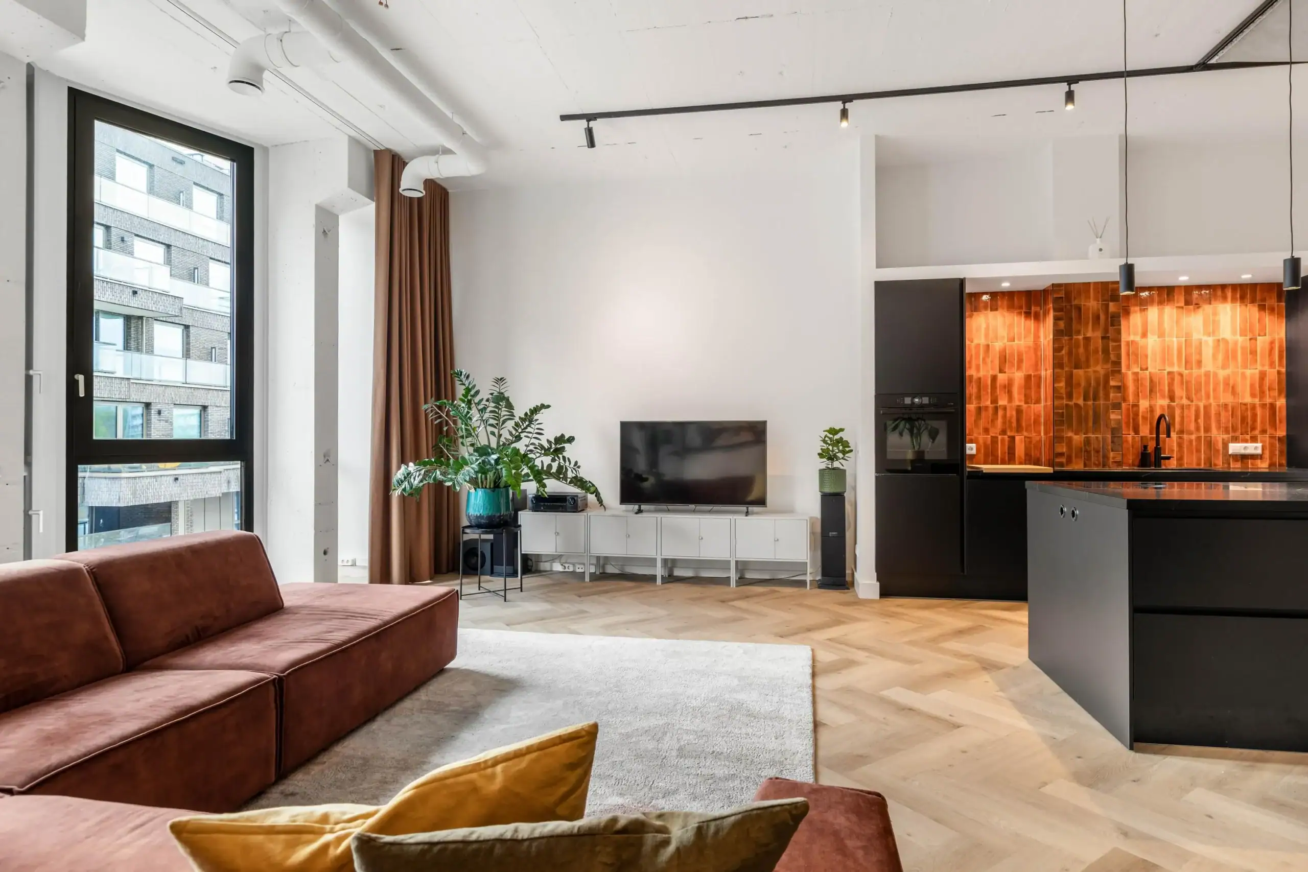 Wat een heerlijk ruim opgezet appartement! Je komt binnen via een royale hal met een toilet en berging. Vanuit de hal loop je naar de lichte woonkamer, waar de grote raampartijen – van vloer tot plafond – een zee van licht creëren. De moderne open keuken is volledig uitgerust met luxe inbouwapparatuur en beschikt over een gezellig kookeiland. Ook in de woonkamer is er ruimte om eenvoudig je eigen werkplek in te richten, wat ideaal is voor thuiswerkers. Verder zijn er een ruime slaapkamer, een doorlopende kastenwand en een luxe badkamer met bubbelbad, inloopdouche en dubbele wastafel. De grote raampartijen en hoge plafonds zorgen samen voor een gevoel van extra ruimte en licht, terwijl het gehele complex duurzaam is ontworpen. Het appartement is uitgerust met een luchtverwarmings-/koelingsysteem en een WTW-installatie. Met energielabel A++ draagt de woning bovendien bij aan een milieubewuste en energiezuinige leefstijl. Deze woning combineert luxe, comfort en een ideale locatie en biedt kwalitatief hoogwaardige leefruimte voor nu en in de toekomst!