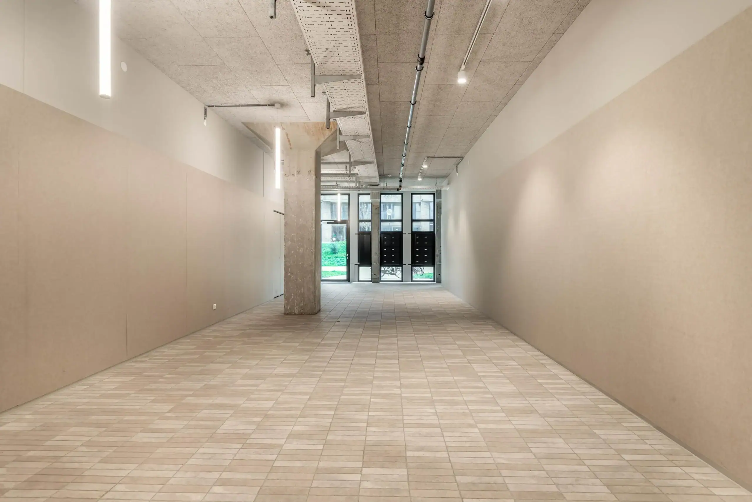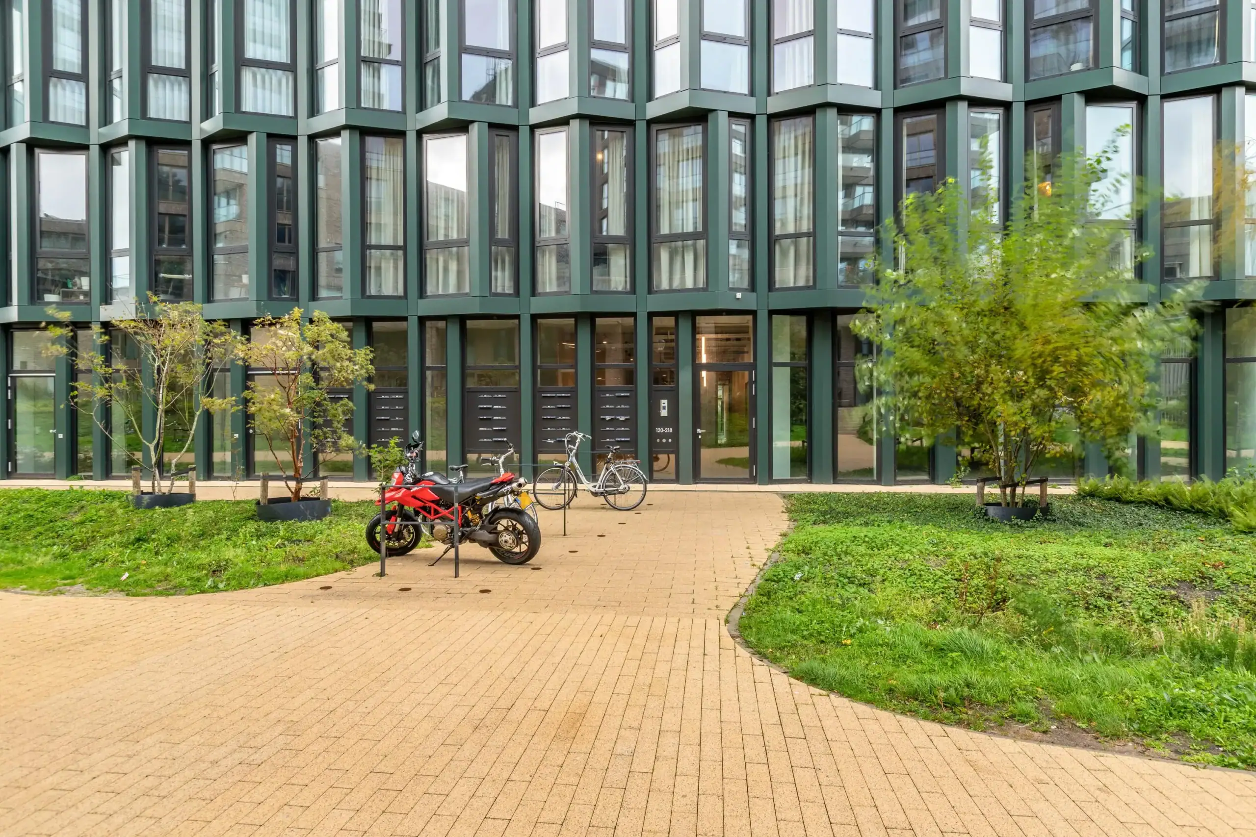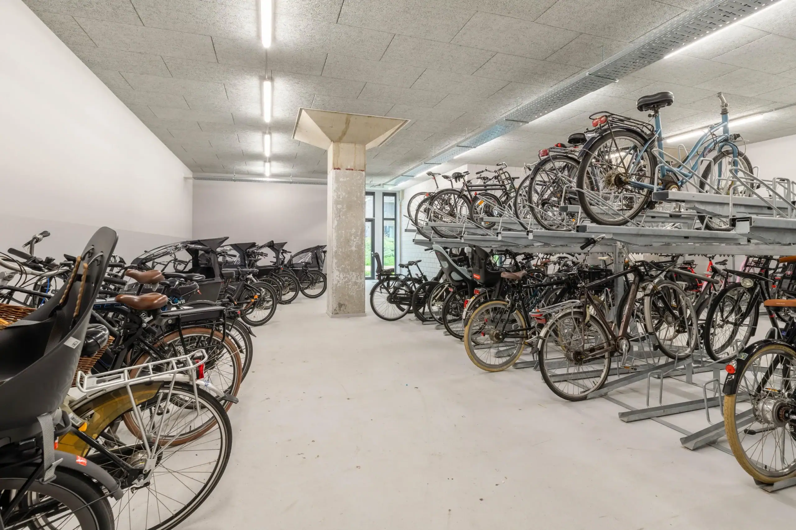 Entree, ruime hal, bellentableau, brievenbussen, trappenhuis, liftinstallaties en gemeenschappelijke fietsenberging.